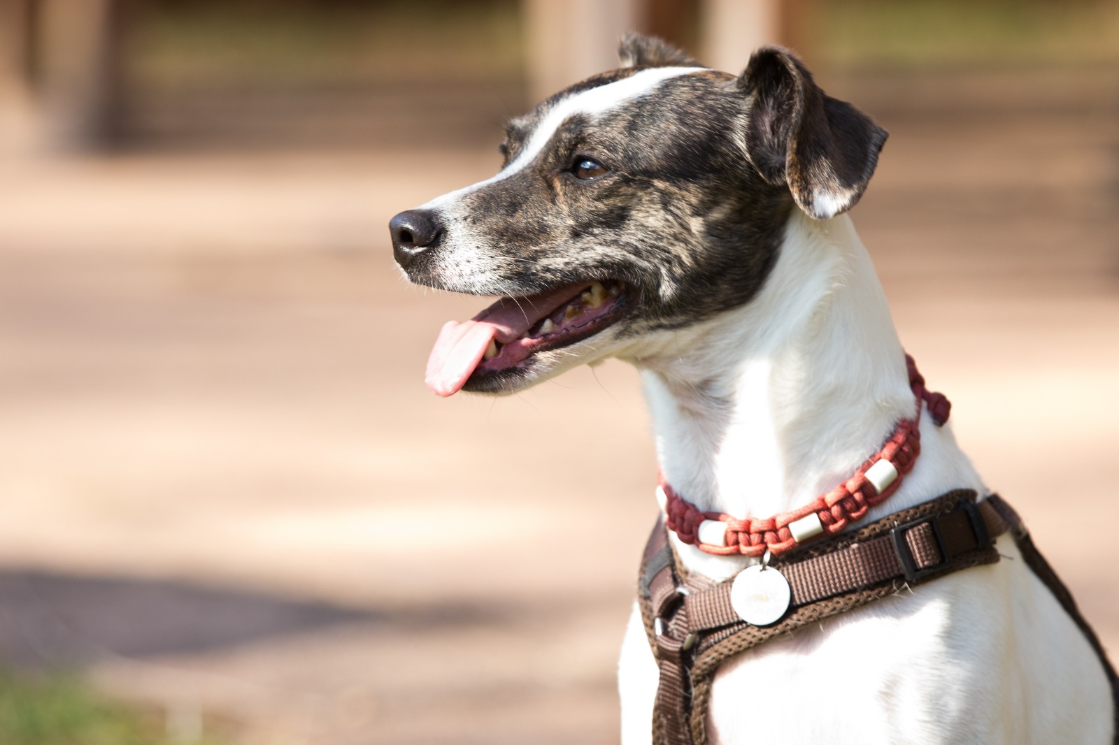 Sie liebt es, draußen unterwegs zu sein – Spaziergänge und Joggen gehören zu ihren Lieblingsbeschäftigungen. Alleine unterwegs ist sie dabei entspannt, in Begleitung anderer Hunde kann sie an der Leine jedoch unsicher reagieren und pöbelt gelegentlich. Mit einem souveränen Ersthund an ihrer Seite ist ein Zusammenleben aber gut möglich.