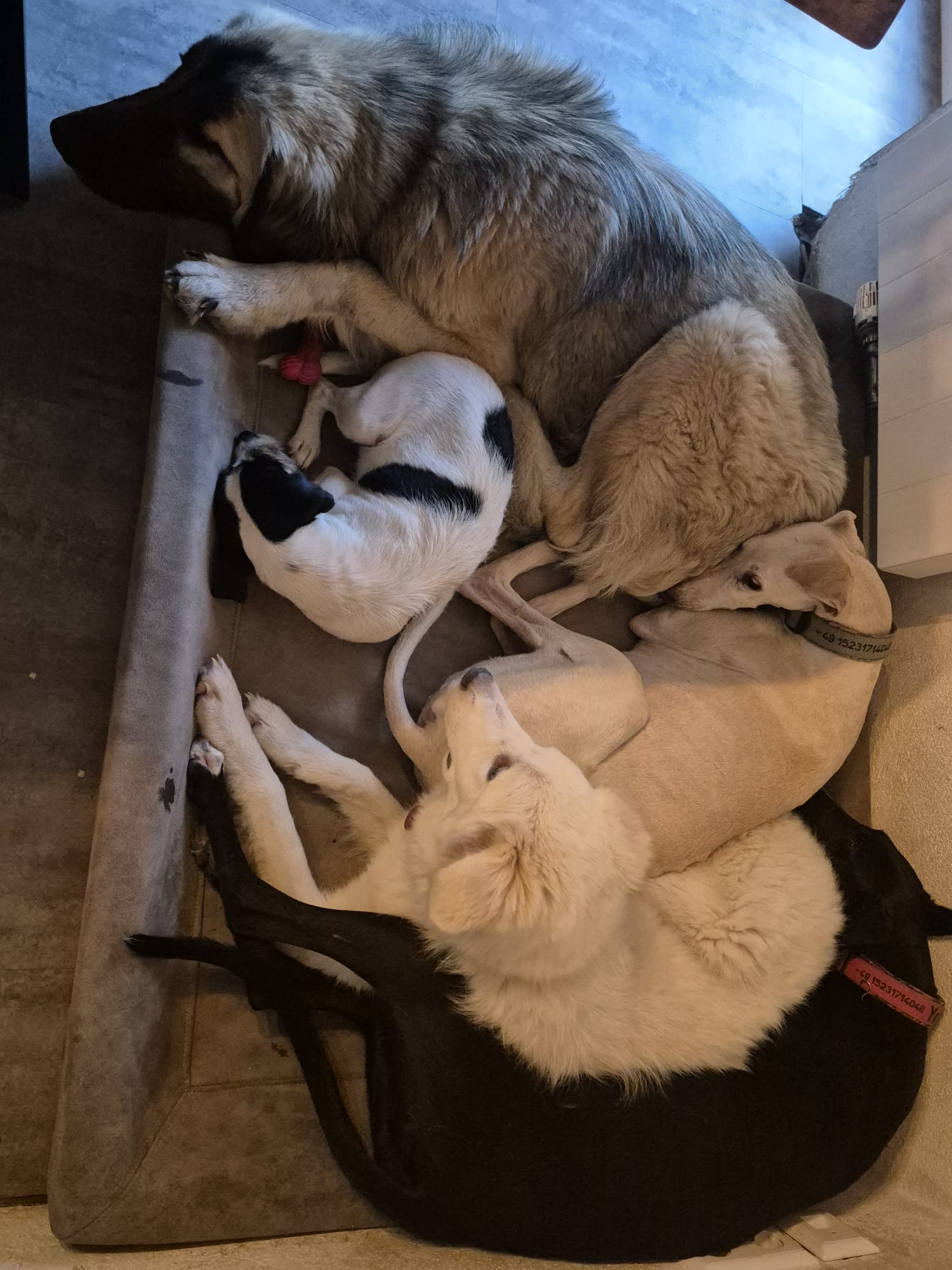 Felicia durfte das spanische Tierheim verlassen und die junge Hündin lebt nun auf einer Pflegestelle in Deutschland. Dort darf sie zur Ruhe kommen und ihr neues Lebensumfeld nach und nach erforschen und für sich entdecken. Die liebenswerte Felicia benötigt ihre Zeit, um vertrauen und sich öffnen zu können. Da die Hündin viel Freude am Fressen hat, lässt sich dieses Bedürfnis gut für den Vertrauensaufbau einsetzen. Felicia hat ein ruhiges Wesen. Sie kommt wunderbar mit den anderen Hunden auf der Pflegestelle zurecht. Auch pflegt Felicia einen respektvollen Umgang mit Katzen. Ältere Kinder, die akzeptieren können, dass sie nicht bedrängt werden möchte, mag Felicia sehr gerne. Spaziergänge findet die Hündin derzeit noch nicht so toll, lieber dreht sie im sicher eingezäunten Garten ihre Runden. Ihr zukünftiges Zuhause wird hier kontinuierlich mit Felicia weiter arbeiten müssen. Auch das Autofahren gehört noch nicht zu ihrer Lieblingsbeschäftigung. Derzeit führt das Mitfahren im Auto zu einem erhöhten Stresspegel bei der Hündin. Jedoch beruhigt sie sich nach einer Weile. Auch hier wird das weitere Üben notwendig sein. Glücklich ist Felicia, wenn sie zusammen mit den anderen Hunden im Körbchen liegen kann.