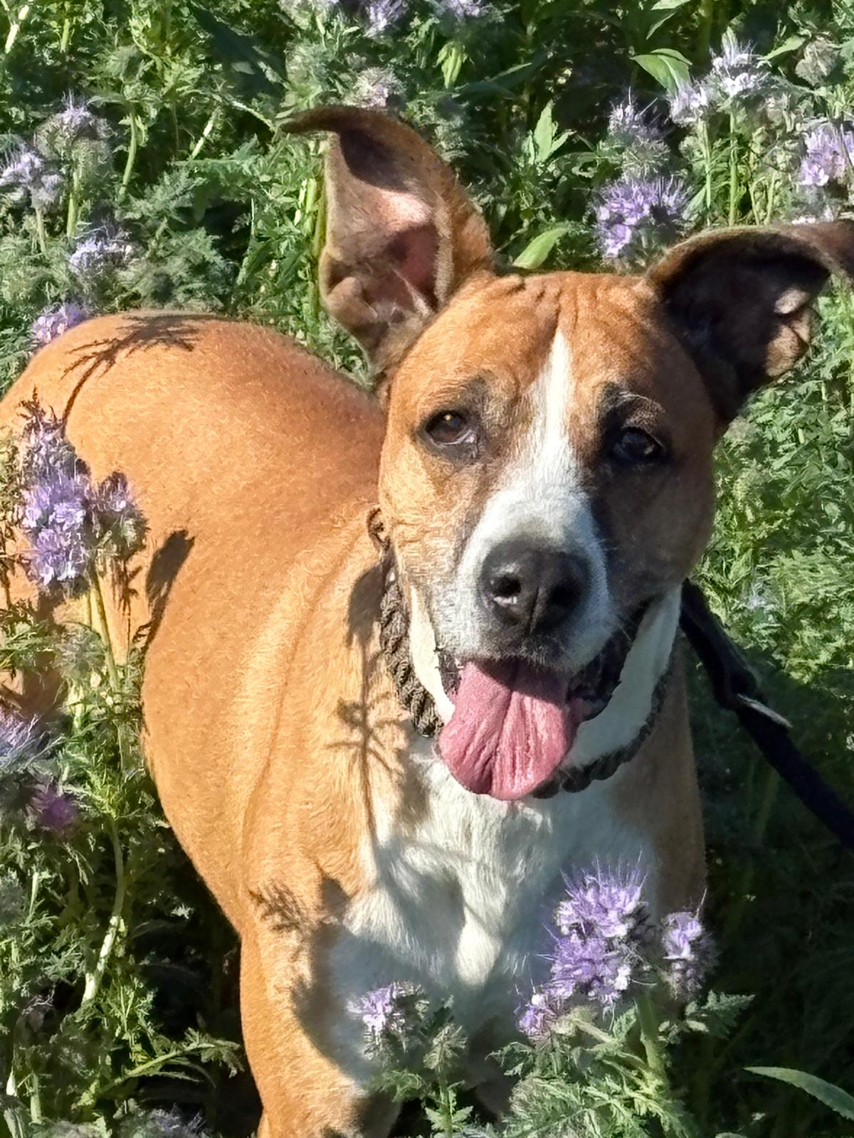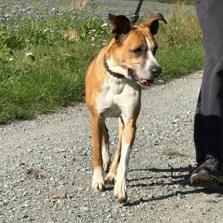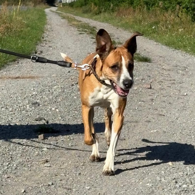 Boxer Mischling Reina (ursprünglich aus Spanien, jetzt in einer Pension in Deutschland) ist eine besondere Hündin, die Menschen mit Herz, Geduld und Hundeerfahrung sucht. Reina ist eine intelligente, aufmerksame und aktive Begleiterin, die sich in einer ruhigen, ländlichen Umgebung am wohlsten fühlt. In der Stadt oder in reizüberfluteten Gegenden kommt sie schnell an ihre Grenzen.
