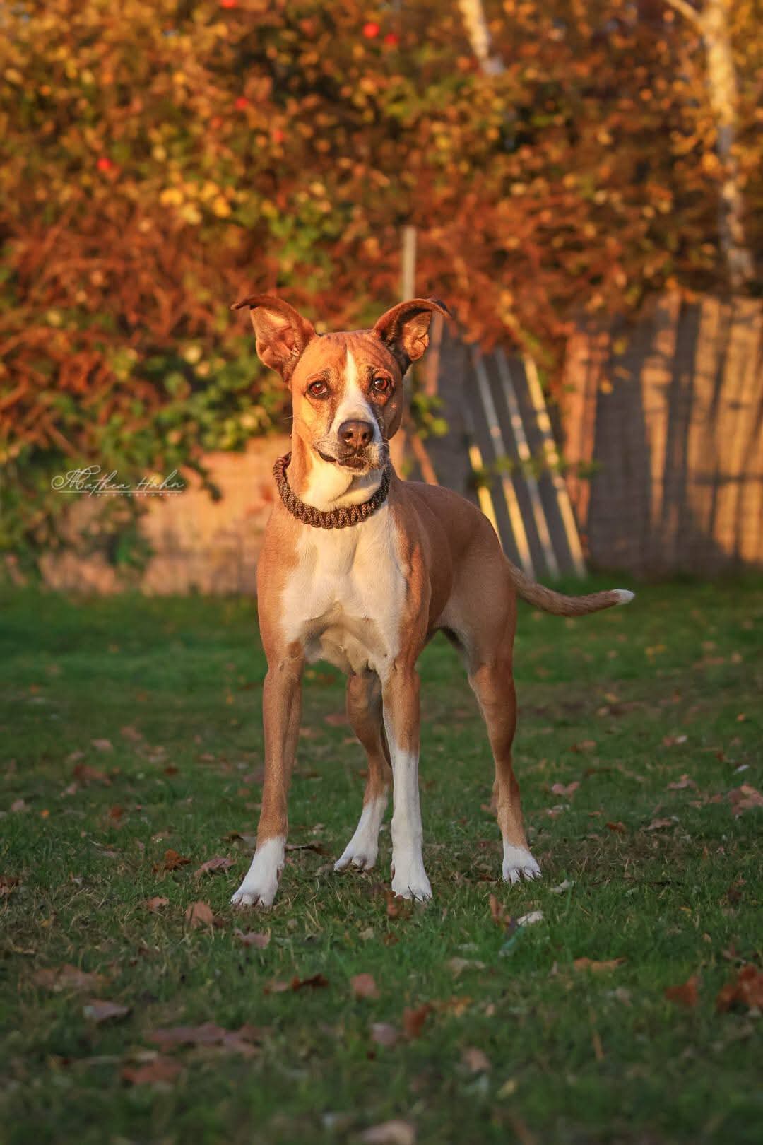 Boxer Mischling Reina (ursprünglich aus Spanien, jetzt in in Deutschland) ist eine besondere Hündin, die Menschen mit Herz, Geduld und Hundeerfahrung sucht. Reina ist eine intelligente, aufmerksame und aktive Begleiterin, die sich in einer ruhigen, ländlichen Umgebung am wohlsten fühlt. In der Stadt oder in reizüberfluteten Gegenden kommt sie schnell an ihre Grenzen.