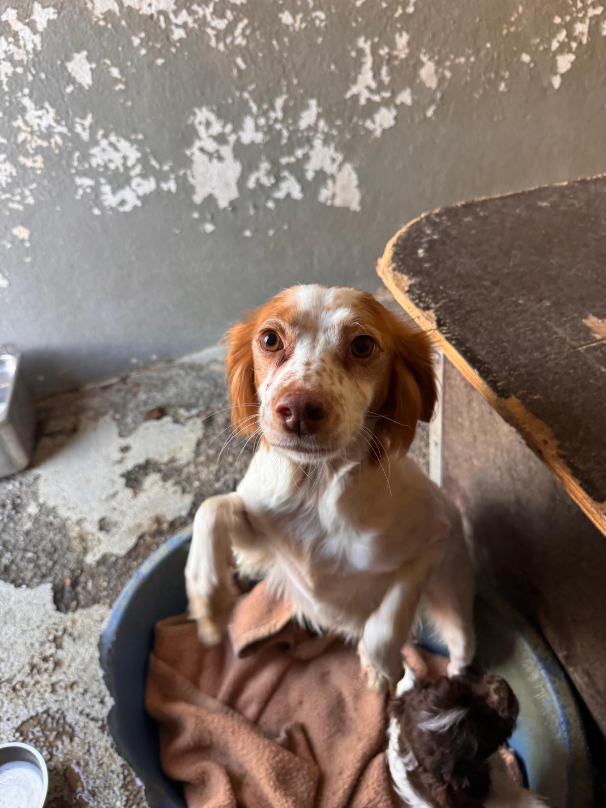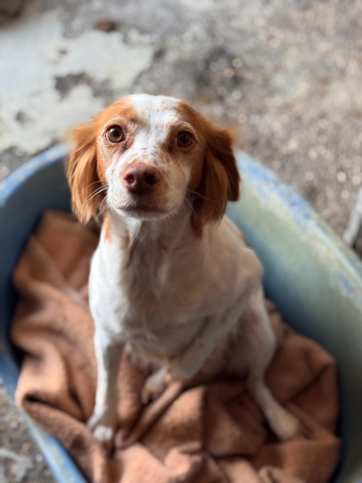 Candy ist eine hübsche und äußerst liebenswerte Bretonenhündin, die gemeinsam mit ihren Welpen ins Tierheim gebracht wurde.