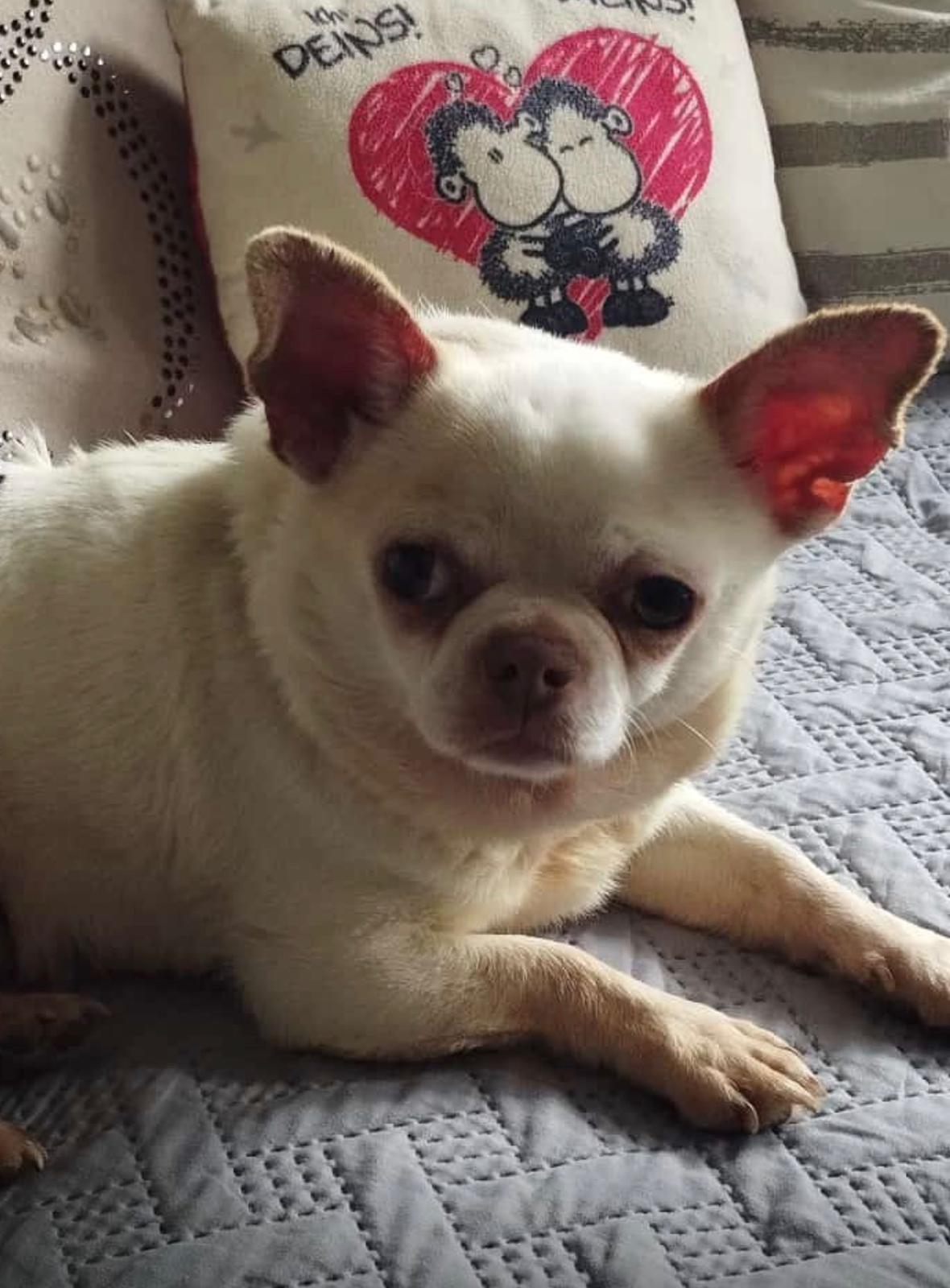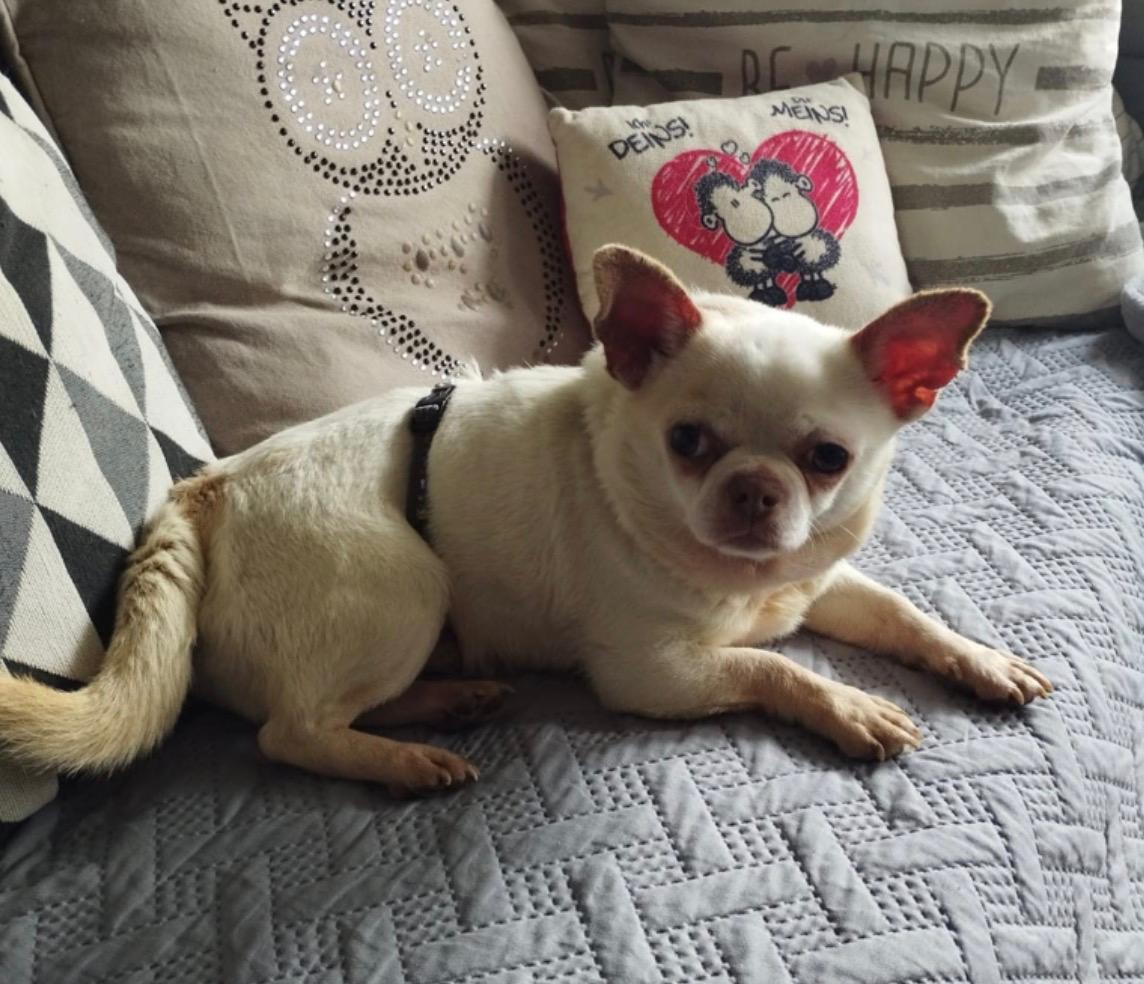 Chihuahua Copito durfte mittlerweile auf eine Pflegestelle in Deutschland umziehen – ein wichtiger Schritt in ein besseres Leben.