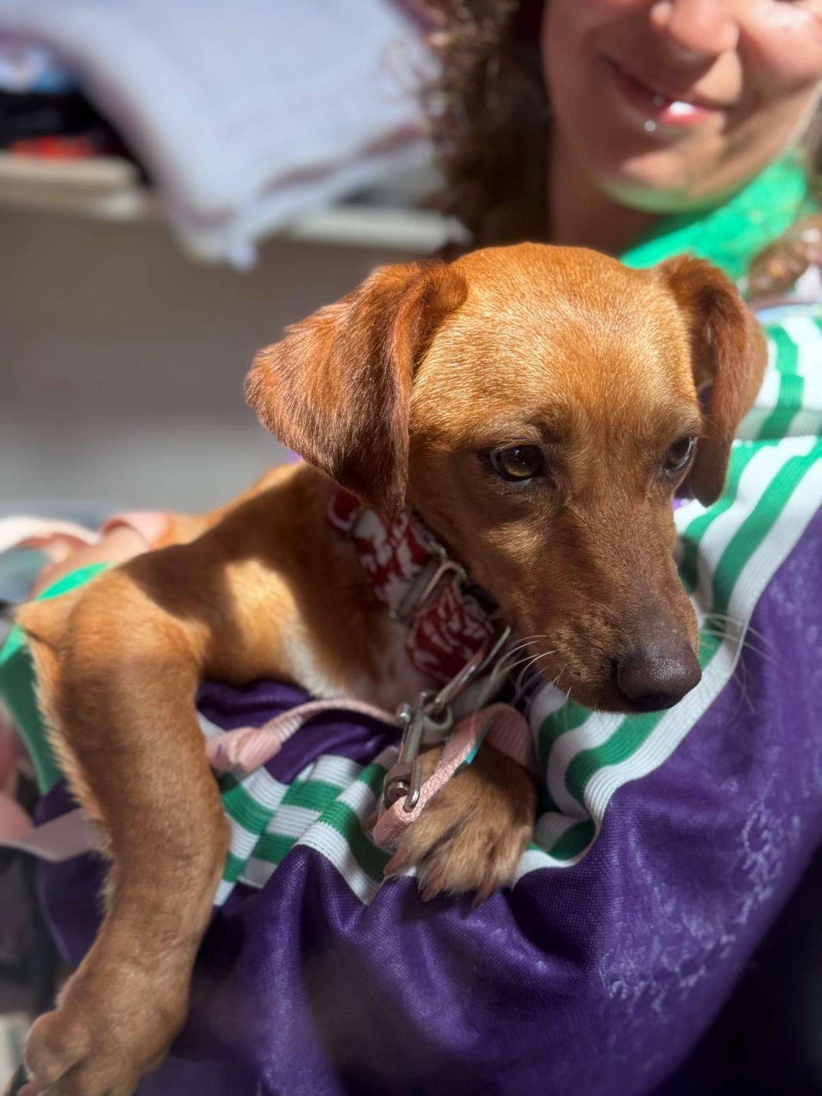 Jessie ist eine junge Mischlingshündin, geboren ca. im März 2025, und misst etwa 35 cm Schulterhöhe. Vermutlich steckt ein Dackel-Mix in ihr – mit ihrem charmanten Auftreten und den handlichen Maßen bringt sie auf jeden Fall beste Voraussetzungen für eine treue Alltagsbegleiterin mit. Als Junghund steht Jessie noch ganz am Anfang ihres Lebens und möchte die Welt entdecken. Sie ist neugierig, aufmerksam und bereit, alles zu lernen, was man ihr mit liebevoller Konsequenz beibringt. Mit Geduld, klarer Führung und viel Zuwendung wird sie sich zu einer wunderbaren Gefährtin entwickeln.