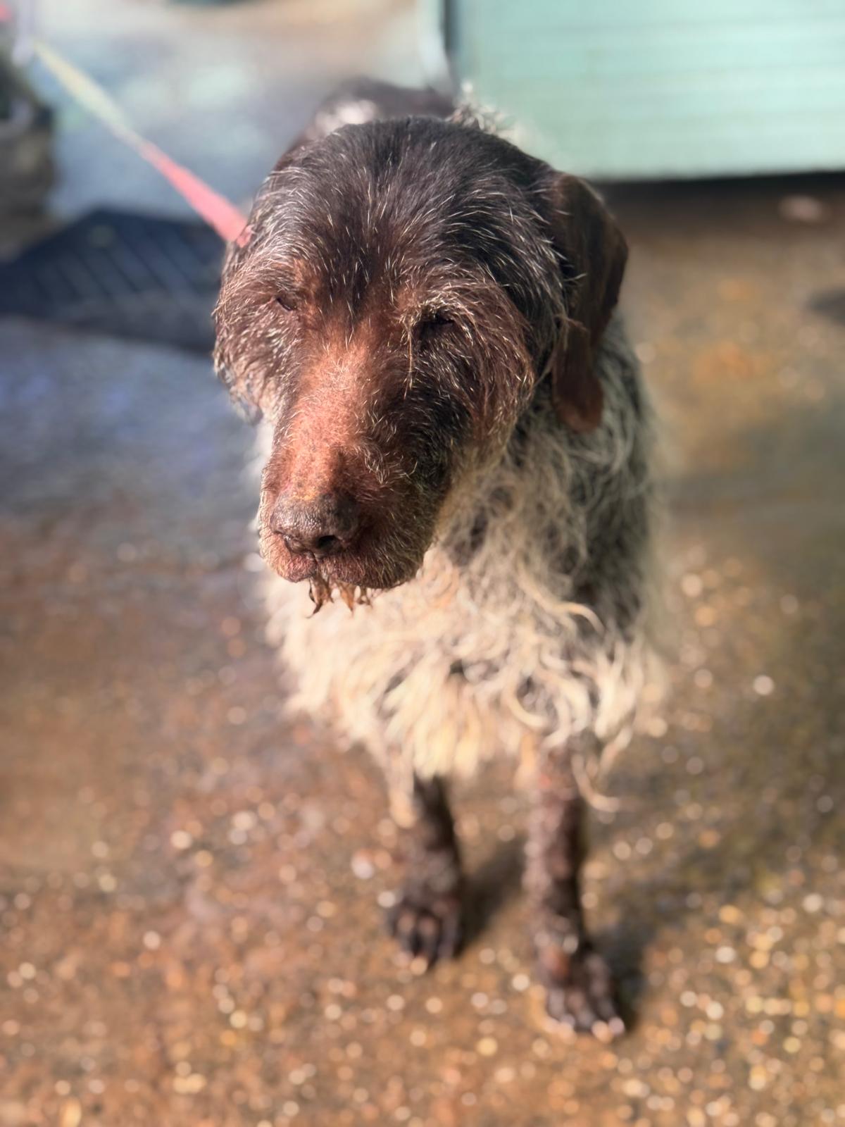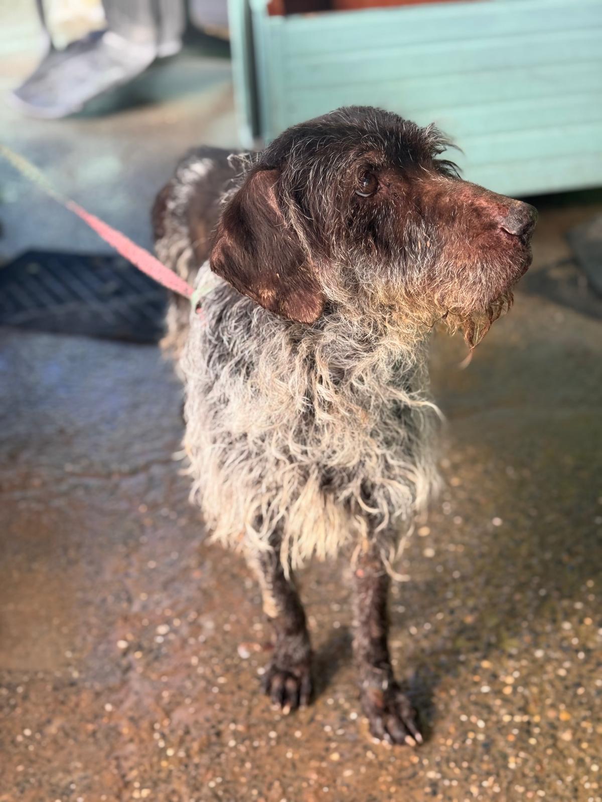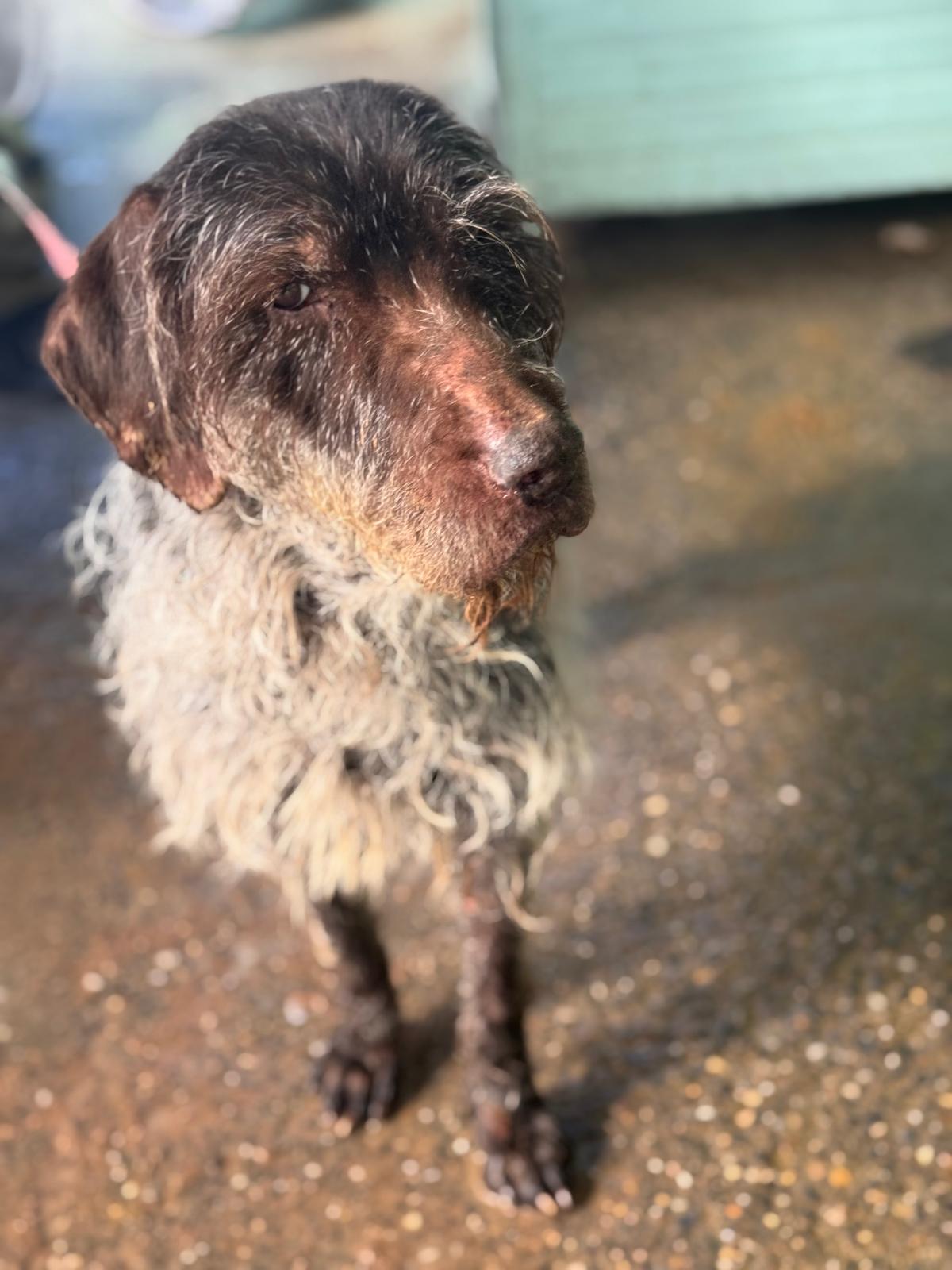 Wie kann man einem Hund so etwas antun? Ihr ganzes Leben hat Estrella bei ihrem Besitzer gelebt. Wahrscheinlich hat sie ihm treue Dienste bei der Jagd geleistet und sicher auch zahlreiche Welpen für ihn zur Welt bringen müssen. Jetzt ist sie alt, lästig und überflüssig für ihn. Zusammen mit zwei weiteren ähnlich alten Hunden hat er Estrella im Tierheim abgegeben und ihrem dortigen Schicksal überlassen.