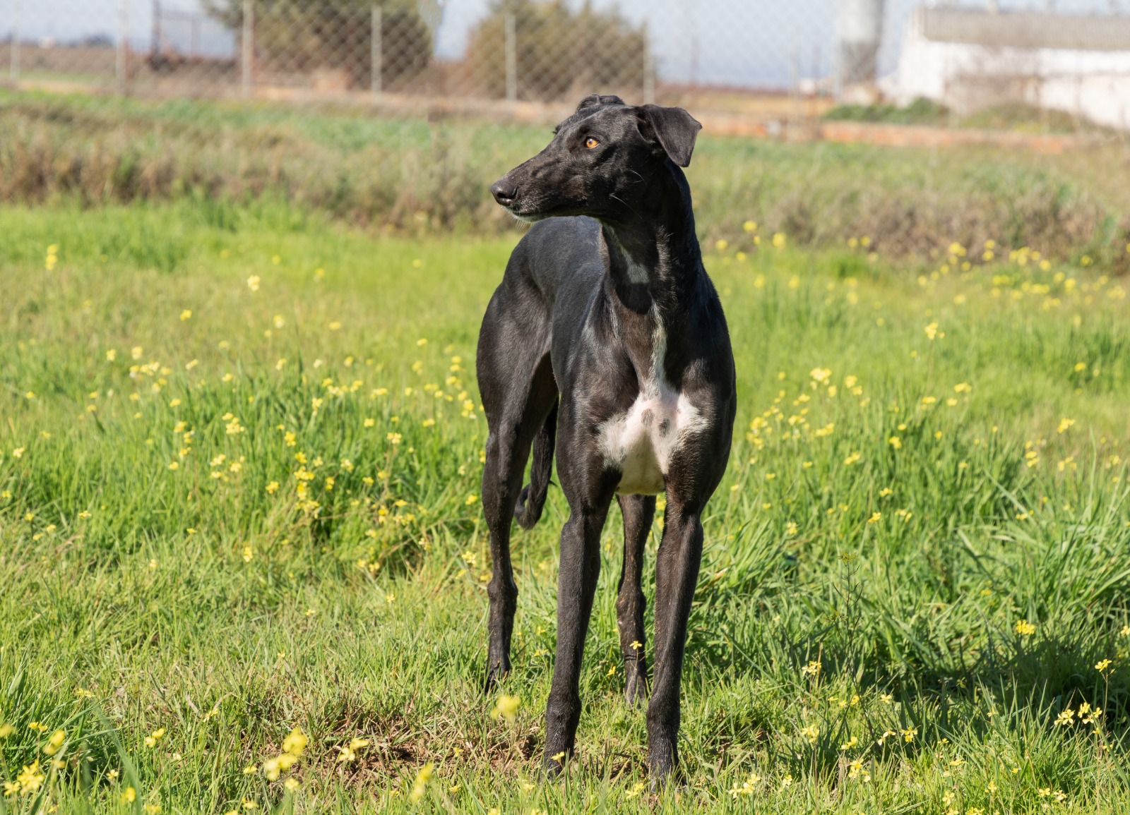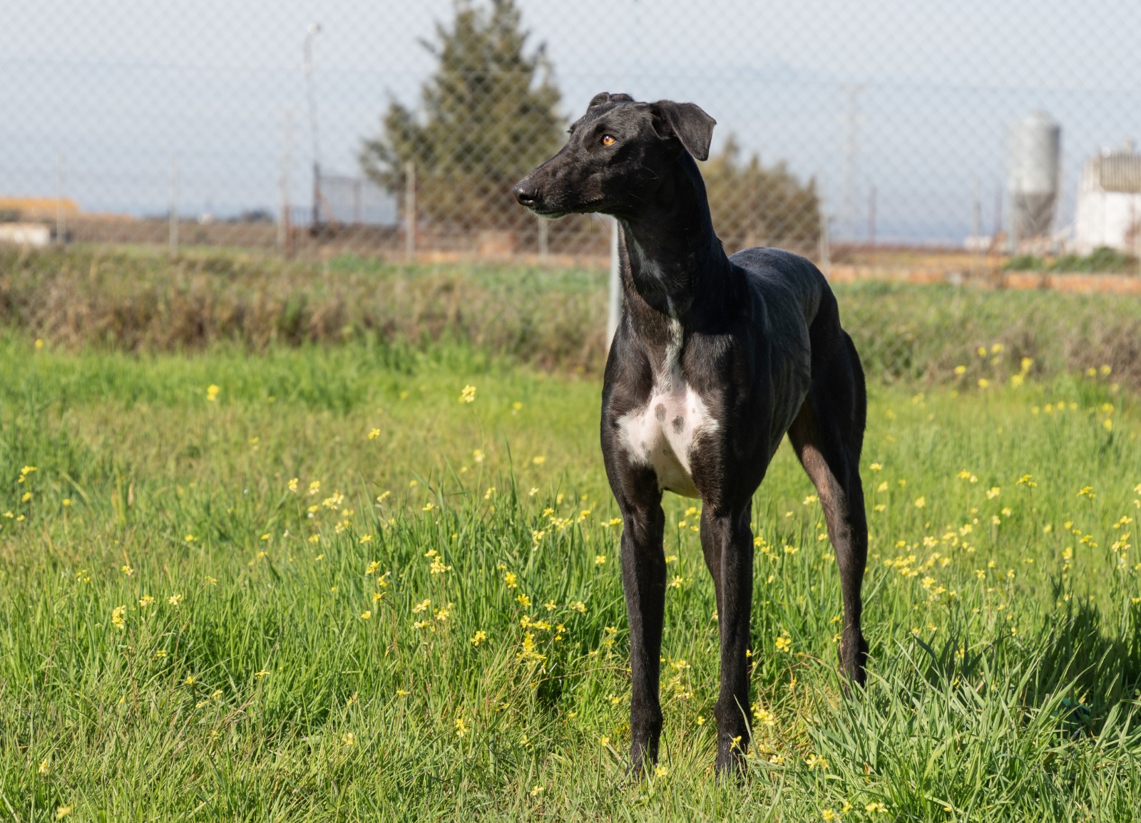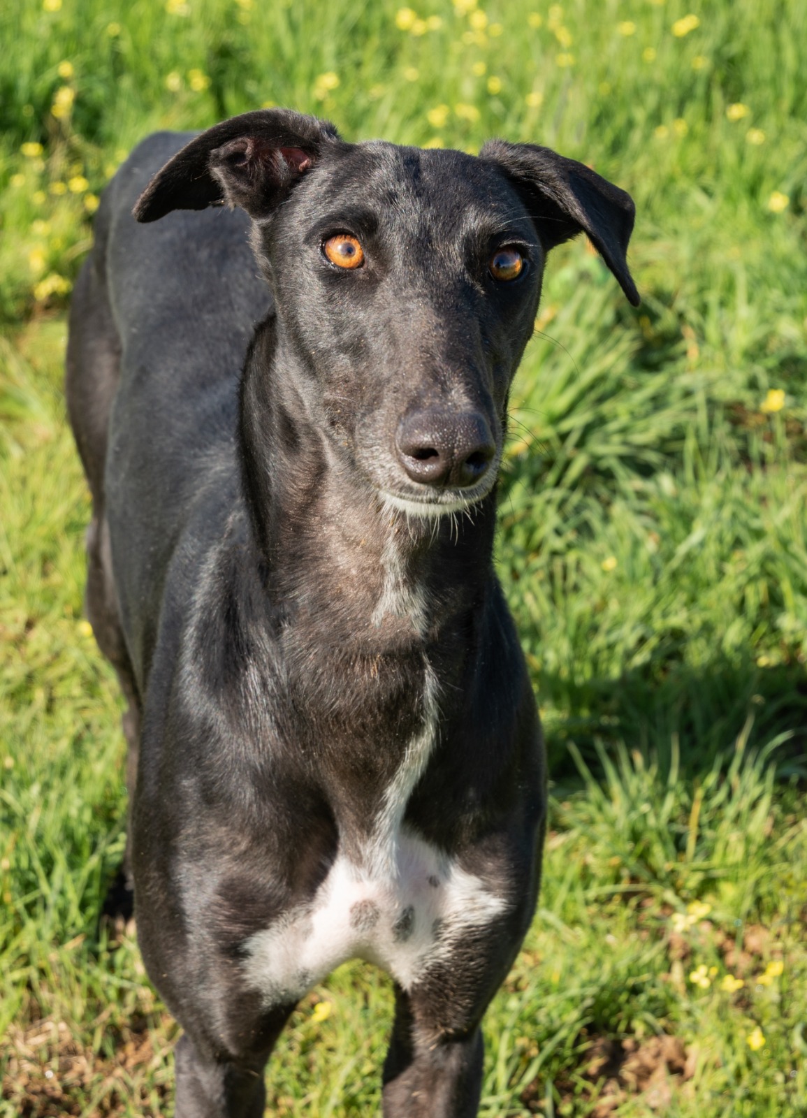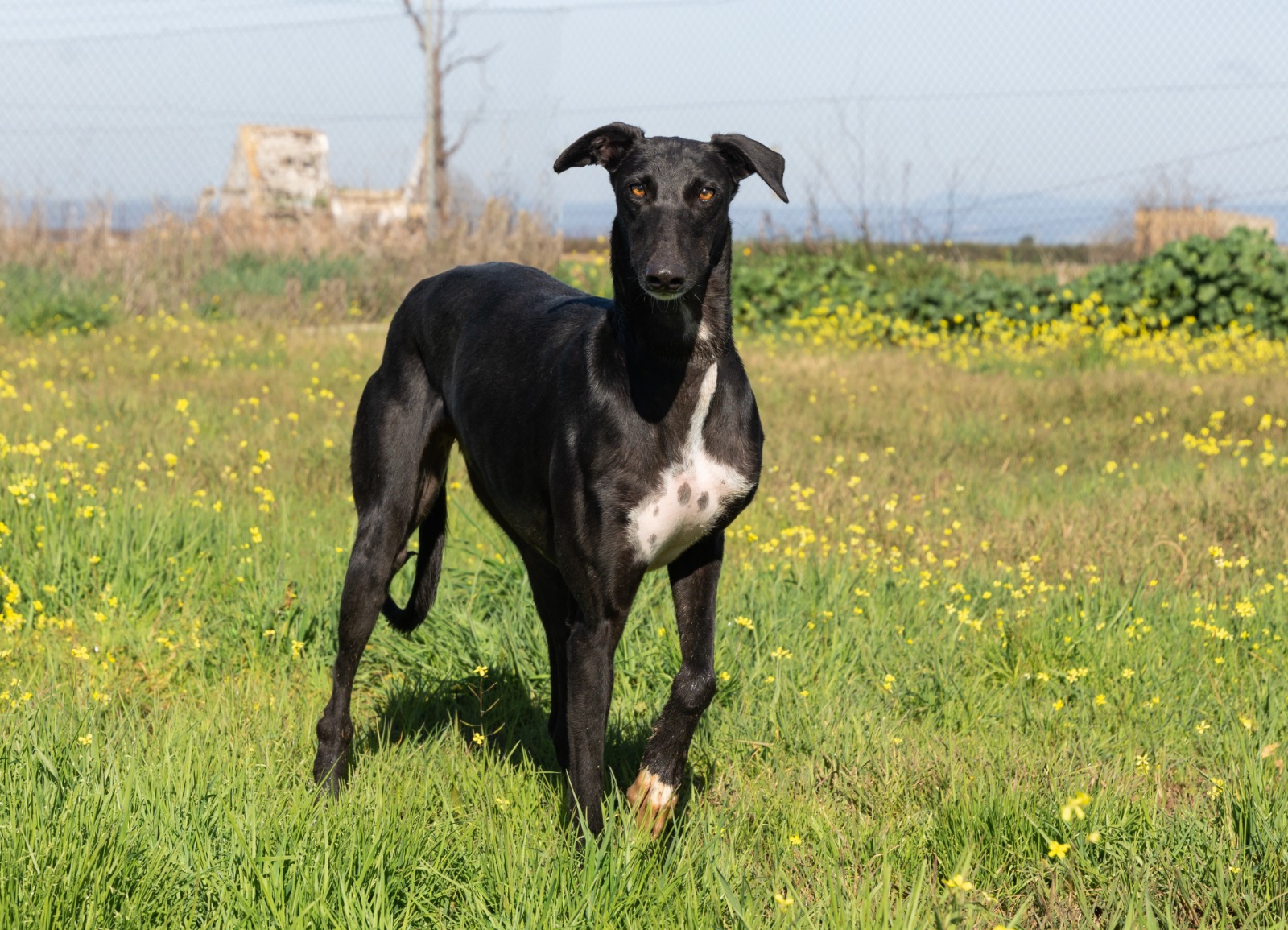 Golondrina ist eine lackschwarze Galga, die erst vor Kurzem im spanischen Tierheim angekommen ist – und schon jetzt alle Herzen im Sturm erobert. Mit ihrer ruhigen, sanften Art und ihrem liebenswerten Wesen verzaubert sie jeden, der ihr begegnet.