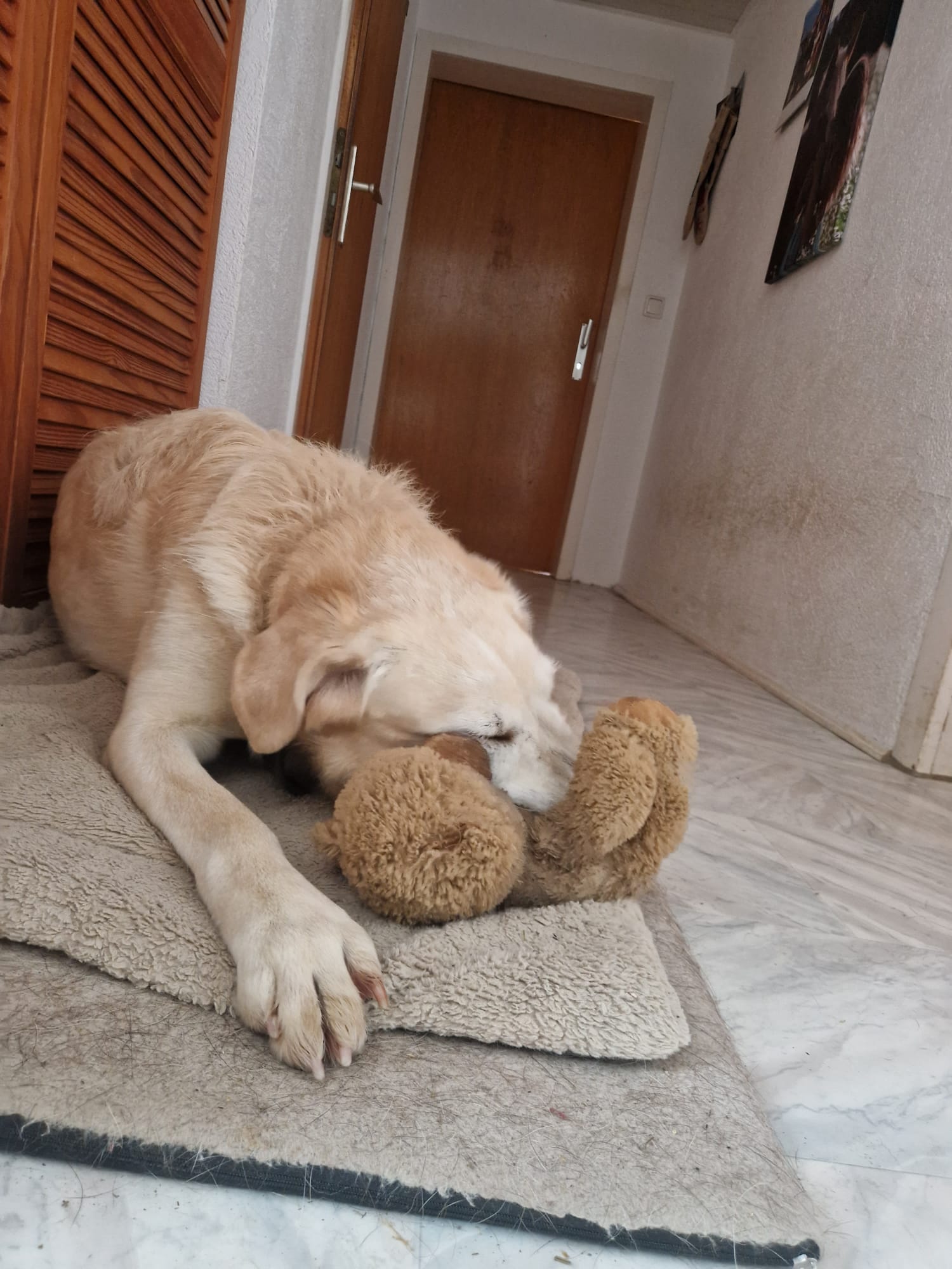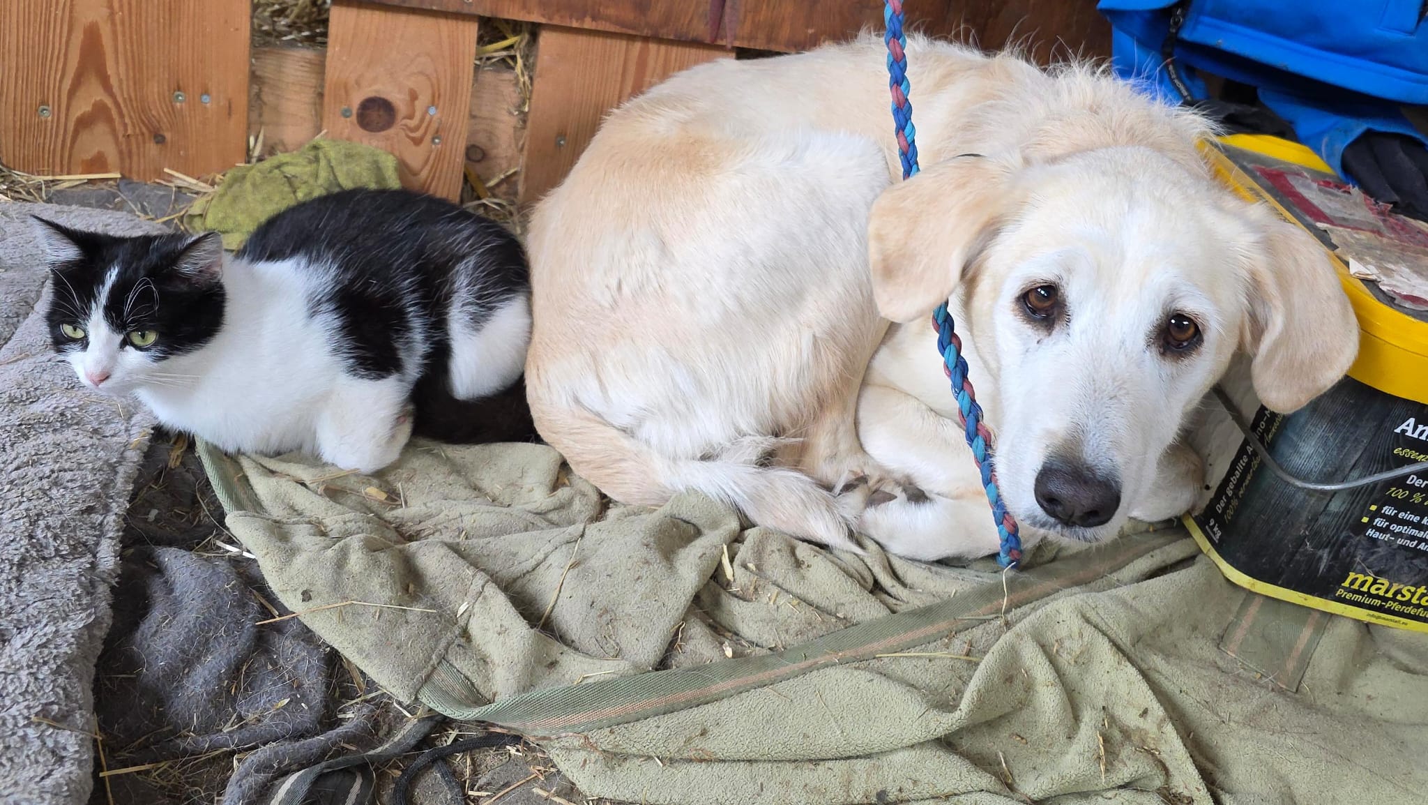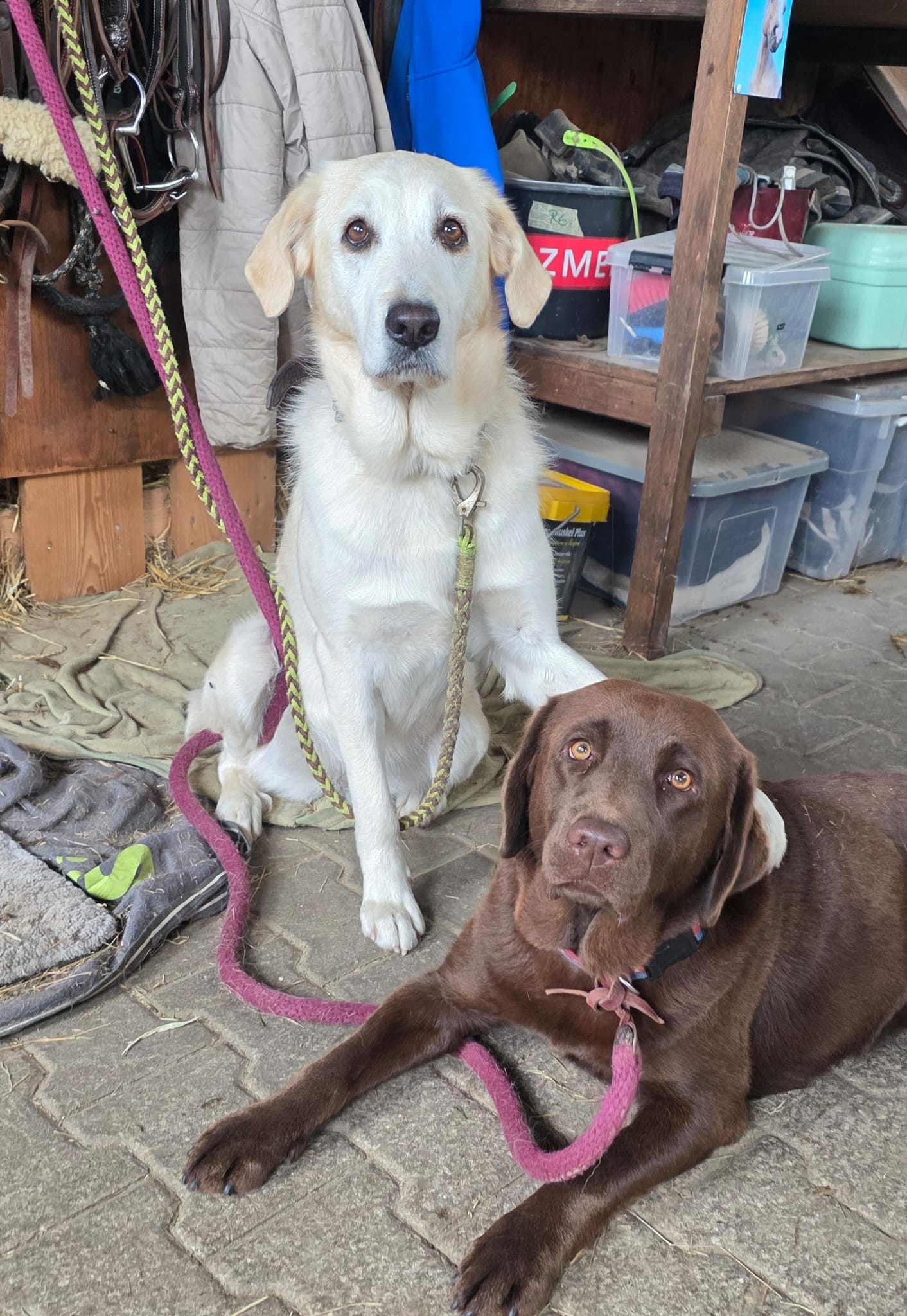 Dort angekommen zeigt sich Nala grundsätzlich als eine unkomplizierte und lebendige Hundeseele.Die tolle Hündin zeigt keinerlei Ängste und erkundet ihre neue Lebenswelt unerschrocken. Nala ist stubenrein und läuft prima an der Leine. Bei den Pferdeausritten begleitet Nala diese brav. Die liebe Hündin begegnet anderen Hunden mit einer übermütigen und leichten Dominanz. Sobald Nala die Hunde kennenlernen durfte, verhält sie sich ihnen gegenüber völlig unproblematisch. Eine kleine Schwachstelle im Verhalten zeigt sich, wenn Nala irgendwo auf ihre Menschen warten muss (z. B. im Auto). Dann bellt sie viel und ist dabei nicht zu überhören. Hier werden ihre zukünftigen Menschen das Zurück- und Alleine bleiben mit Nala weiter üben müssen. Die Hündin liebt Kinder, Katzen und ihr Hundespielzeug.