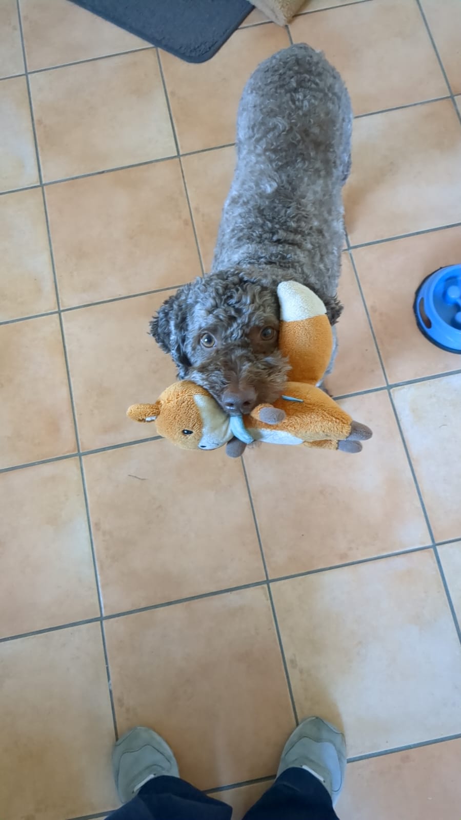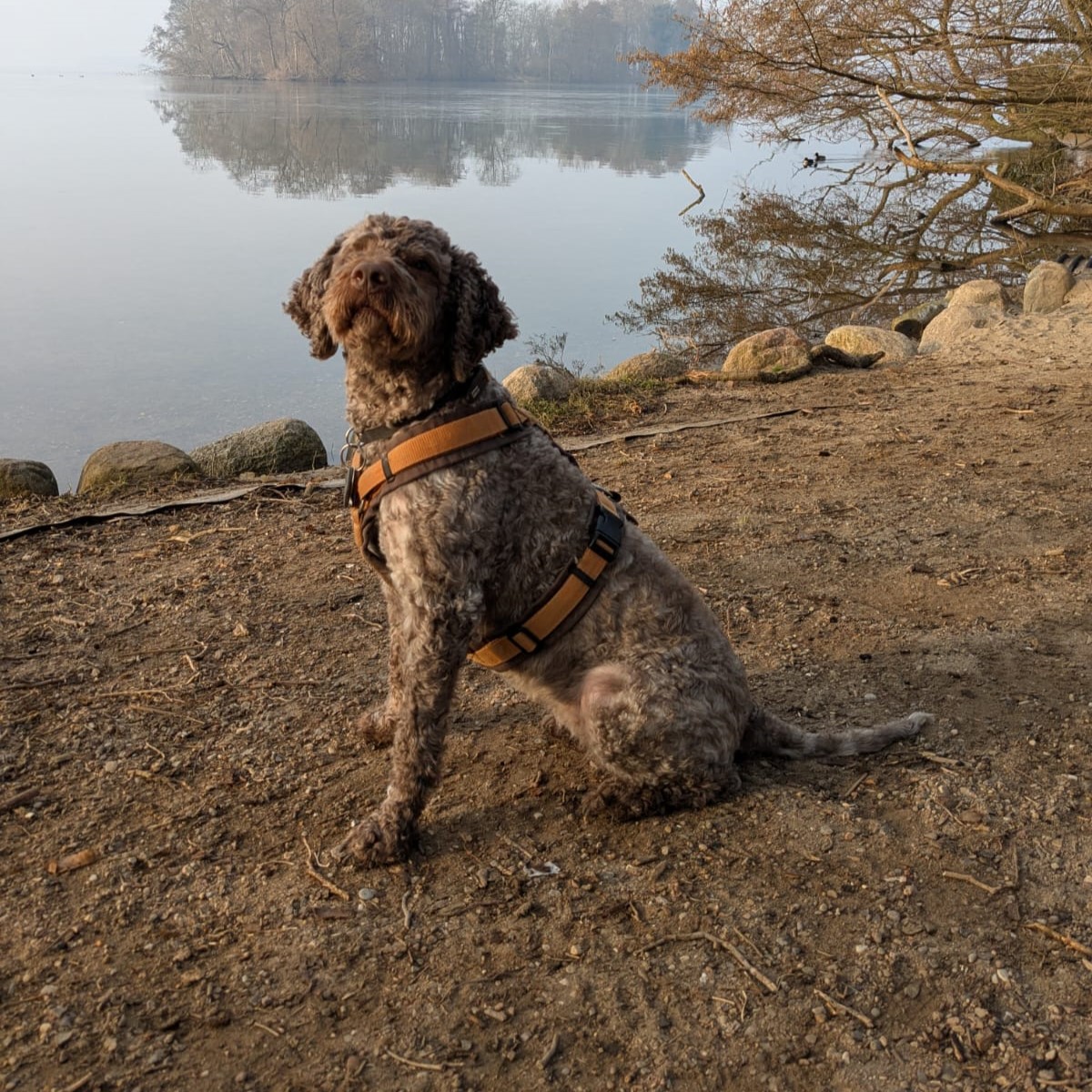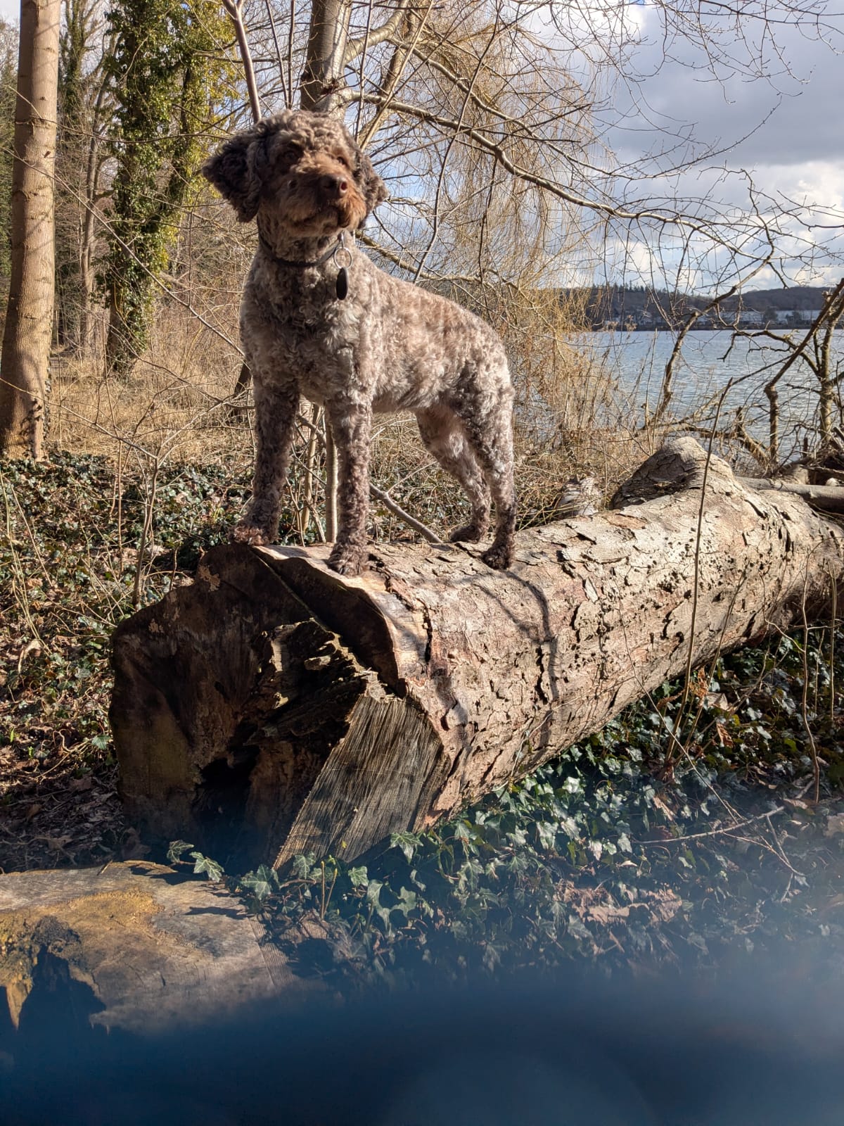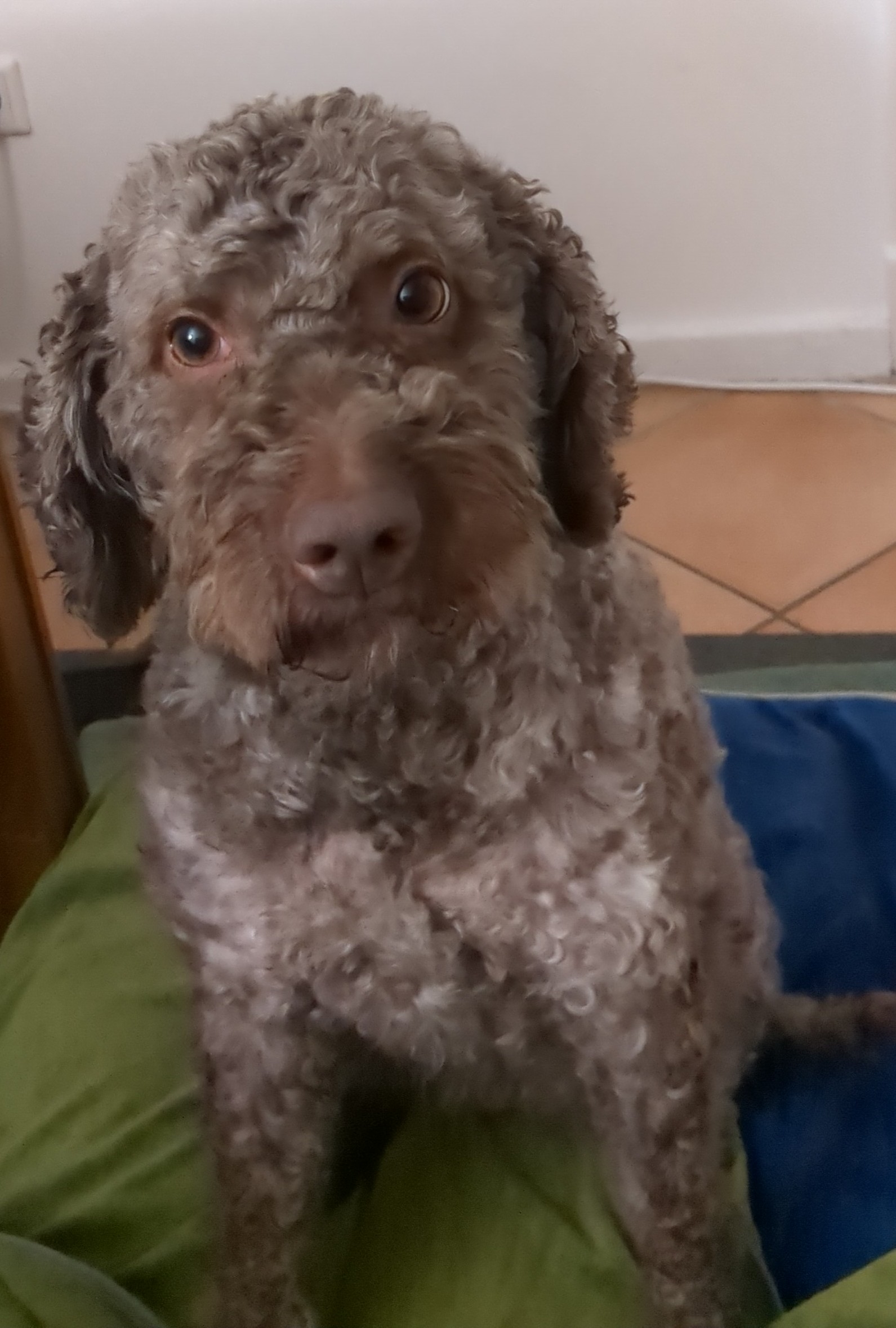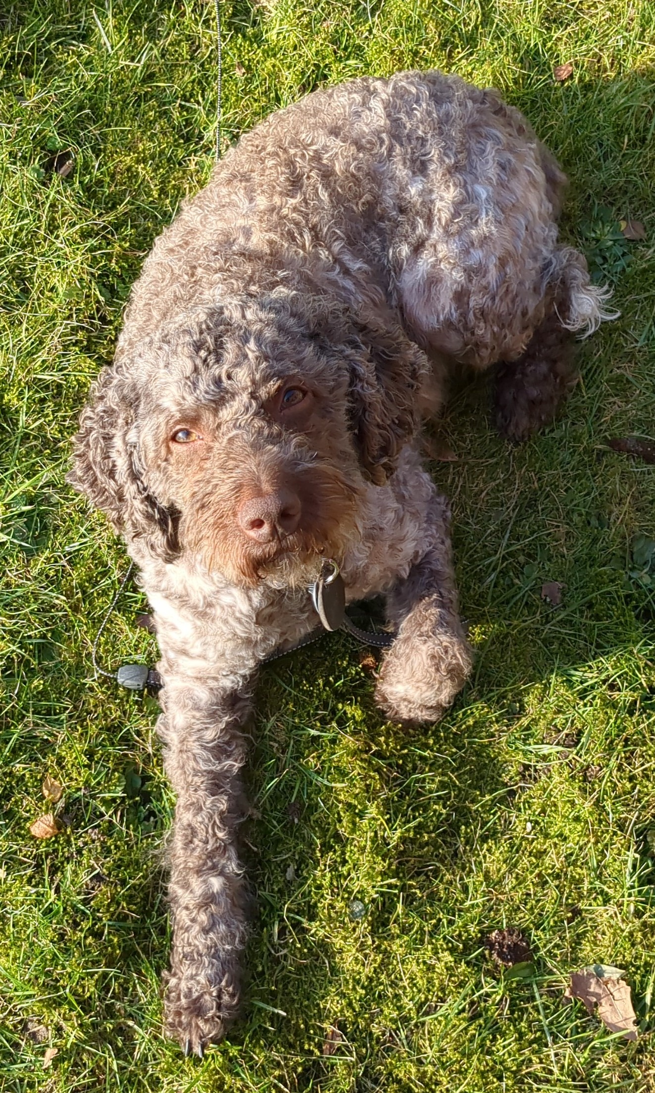 Aufgrund einschneidender familiärer Veränderungen suchen wir für die Hündin Flora ein neues Zuhause. Die hübsche Hündin hat ein freundliches Wesen und bindet sich eng an ihre Bezugsmenschen. Lagotto Romagnolo Flora liebt das gemeinsame Miteinander und benötigt sowohl geistige als auch körperliche Auslastung. Flora ist stubenrein und eine ruhige Mitbewohnerin. Die Hündin liebt lange Hunderunden und die Beschäftigung zusammen mit ihren Bezugsmenschen. Rassebedingt möchte Flora ihre Nase einsetzen dürfen, so gehört das ausgiebige Schnüffeln und Schnuppern bei den Spaziergängen dazu. Aufmerksam, klug und lernfreudig, das ist Flora. Neben Suchspielen bereiten der Hündin insbesondere das Apportieren und das Erlernen von Tricks aller Art eine große Freude. Flora ist vertraut mit dem Clickertraining und mag es so zu arbeiten. Voller Begeisterung ist sie bei all diesen Beschäftigungsformen dabei und in ihrem Element. In ihrem Element ist die Hündin auch, wenn sie am Wasser sein und Sand unter den Pfoten spüren darf. Autofahrten dagegen gehören nicht zu ihren Lieblingsbeschäftigungen. Flora versteht sich grundsätzlich mit anderen Hunden, wobei sie ihren Artgenossen zunächst mit Vorsicht begegnet und sich dabei stark an ihren Menschen orientiert. Sie könnte sowohl als Einzelhündin, als auch zu einem souveränen und ruhigen Ersthund vermittelt werden.Das zukünftige Zuhause sollte ländlich gelegen sein und viel Natur zu bieten haben. Das wäre ideal für Flora. Die Hündin wünscht sich ein ruhiges Umfeld und eine Familie, die viel Freude und Zeit haben wird, sich mit ihr zu beschäftigen und sie geistig auszulasten. In einem guten Miteinander werden auf Flora und ihre zukünftige Familie noch viele glückliche Jahre warten.