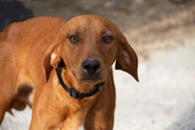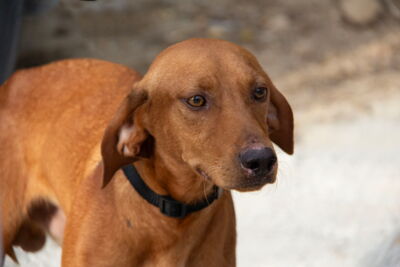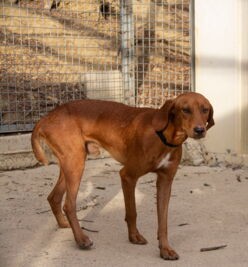 Vizslo wurde an einer Straße gefunden, wo er in Gefahr war, überfahren zu werden. Da er keinen Chip trug, konnte sein Besitzer bisher nicht ermittelt werden und Vizslo ist frei zur Vermittlung.