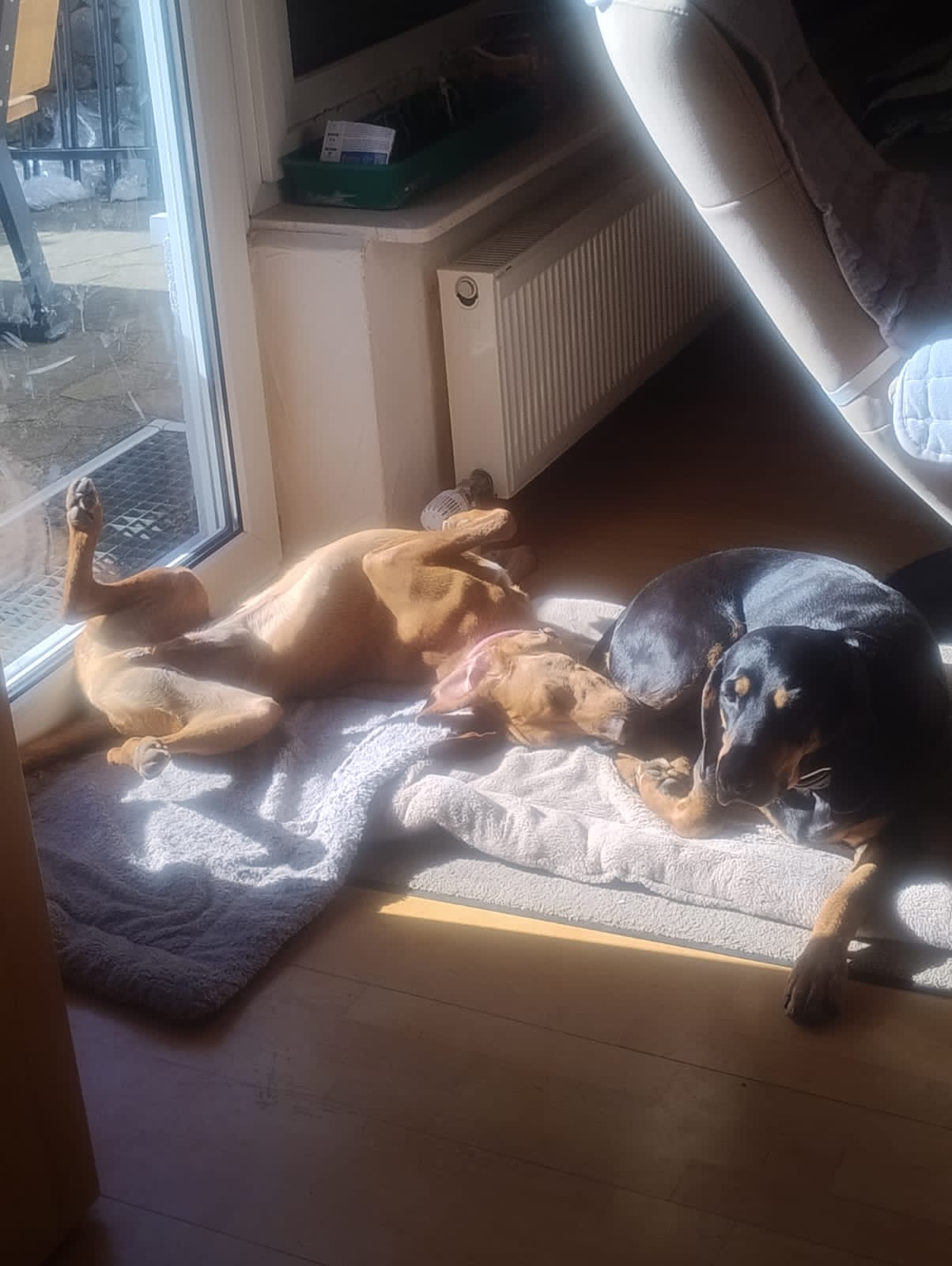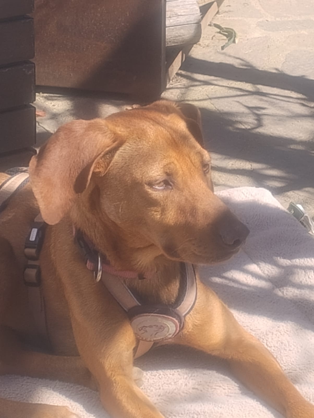 Mit anderen Hunden versteht sich Vizslo gut, auch Katzen gegenüber zeigt er sich verträglich. Spaziergänge verlaufen problemlos und generell ist er sehr gerne draußen unterwegs. Ein Garten und die Nähe zur Natur wären für ihn ideal. Kleine Wanderungen meistert er jetzt schon mit Freude und zeigt hier natürlich rassetypisch Jagdtrieb auf Vögel.