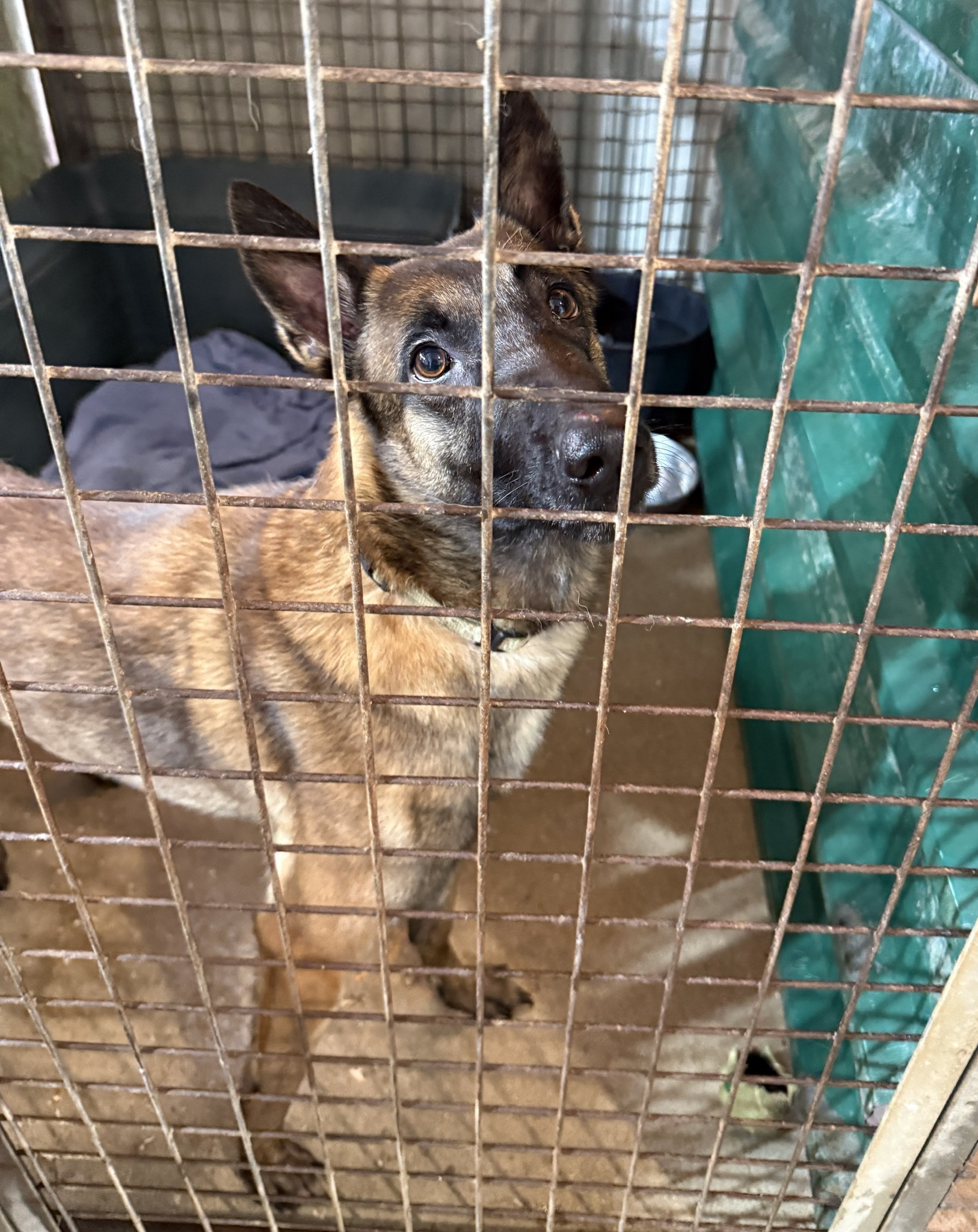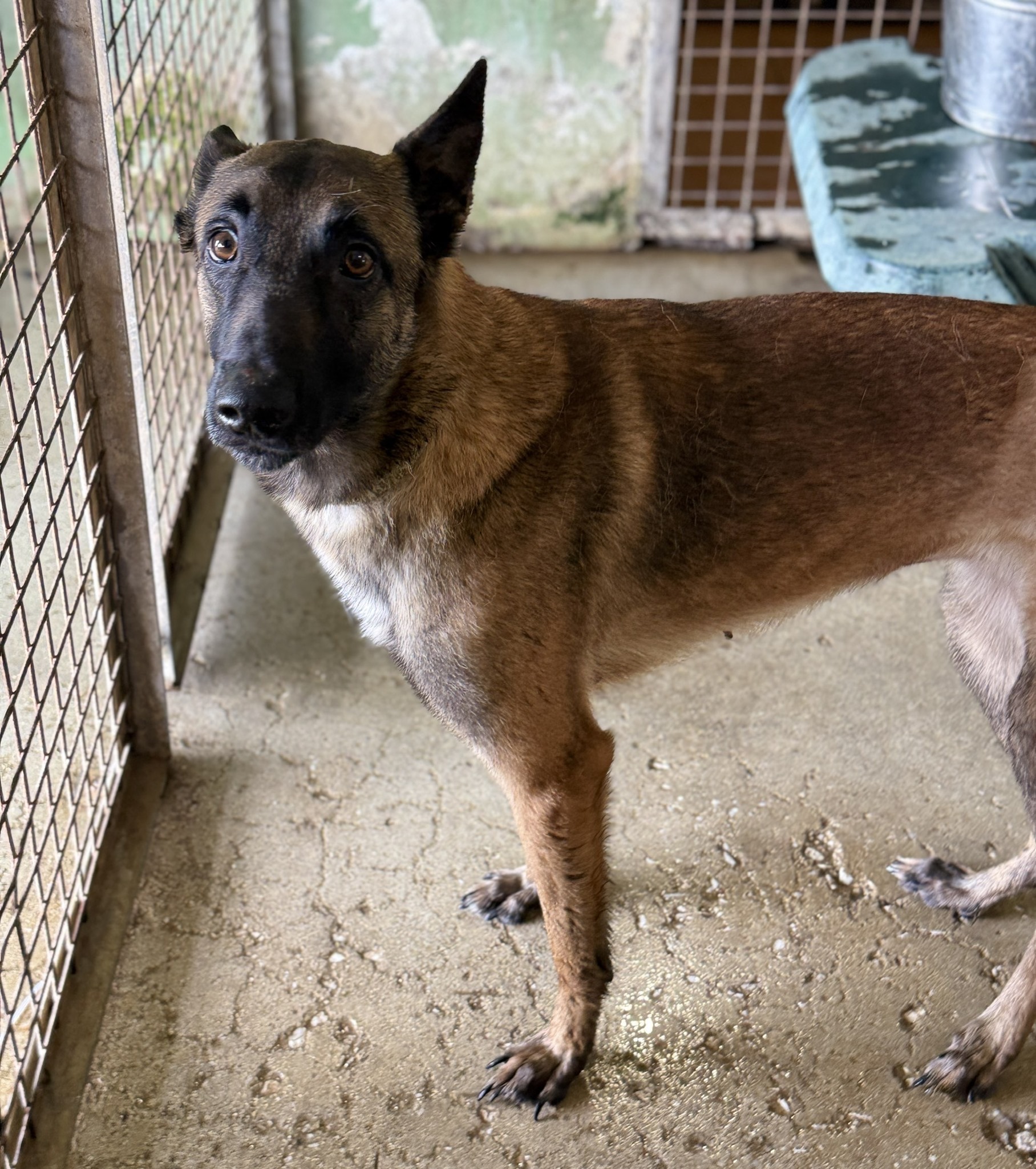 Aktuell lebt Botas wieder in einem kleinen Zwinger, was für eine junge, aktive Malinois-Hündin alles andere als ideal ist. Der Mangel an Bewegung, Struktur und sozialer Nähe bedeutet zusätzlichen Stress und bremst ihre weitere Erholung unnötig aus, weshalb wir hoffen, dass Botas nicht zu lange auf ein neues Zuhause warten muss.