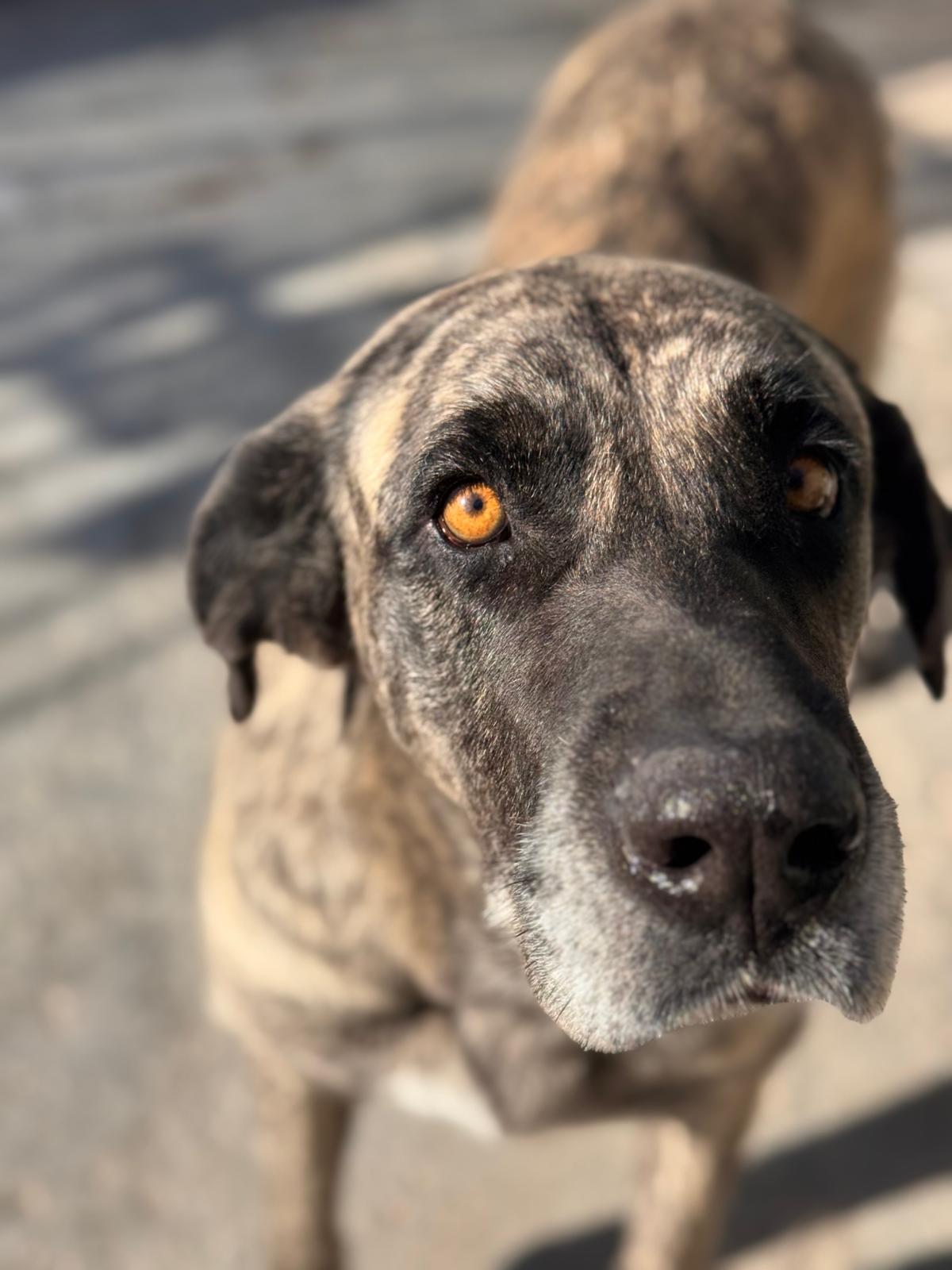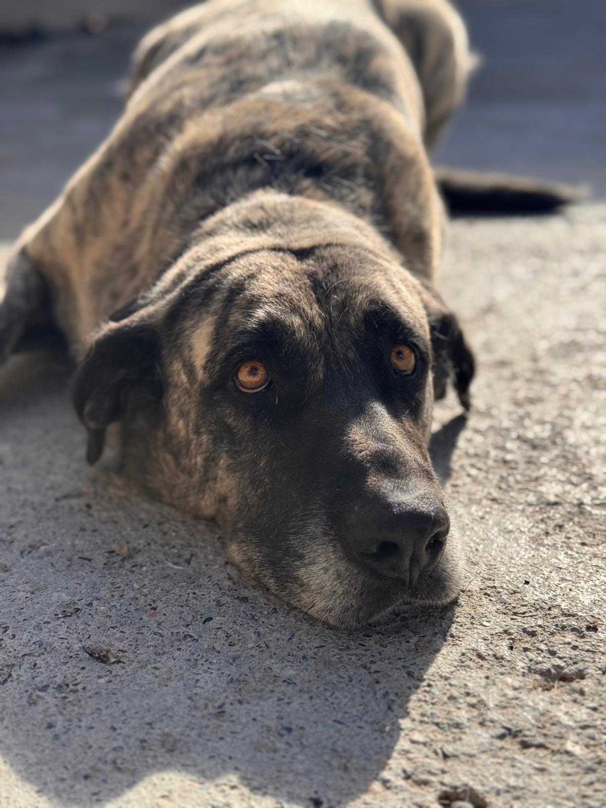 Amber ist eine etwa 8-jährige Mastina, die im spanischen Tierheim gelandet ist. Die Helfer vor Ort beschreiben sie als unglaublich süß, sanft und zurückhaltend. Gleichzeitig zeigt sie eine tiefe Unterwürfigkeit: Wenn Amber eine Situation nicht einschätzen kann, legt sie sich lieber flach auf den Boden und wartet ab. Ihre wunderschönen Augen erzählen uns leider nicht, was sie in ihrem bisherigen Leben erlebt hat – doch vieles deutet darauf hin, dass es nicht von Liebe und Sicherheit geprägt war.