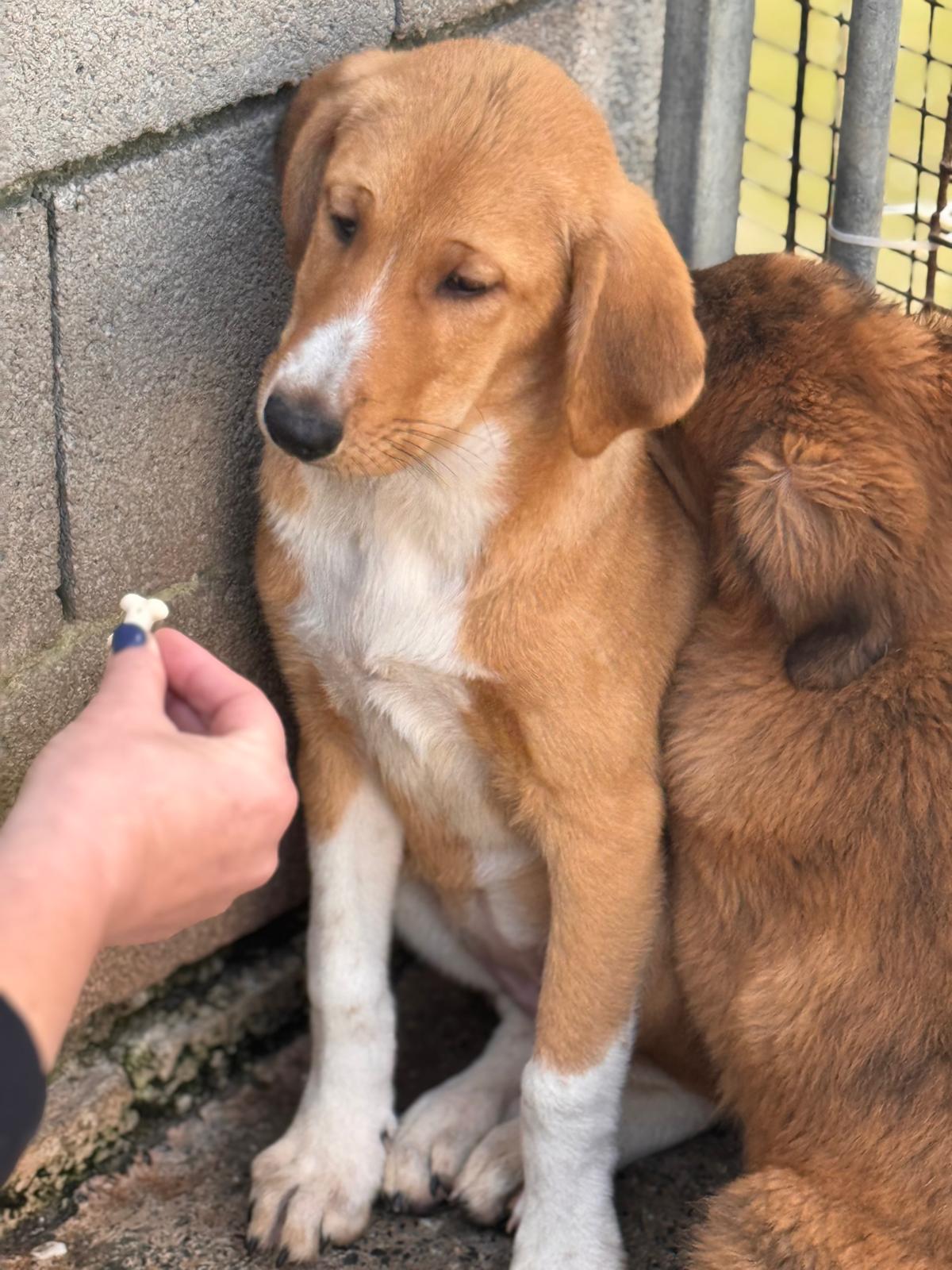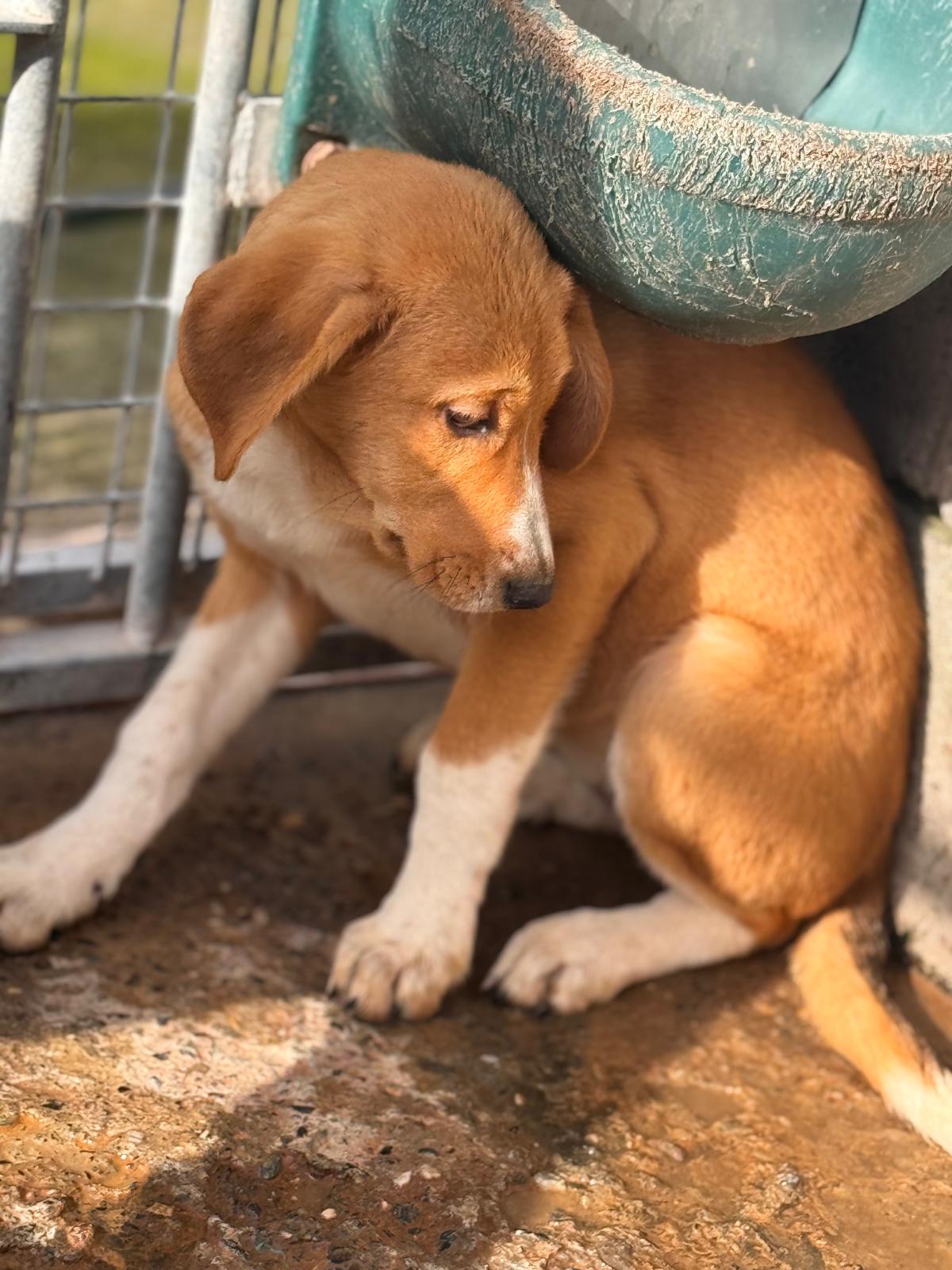 Happy ist etwa vier Monate alt und gehört zu einer kleinen Rasselbande aus insgesamt sechs Welpen – drei Rüden und drei Hündinnen –, die aktuell gemeinsam im Zwinger auf ihre Chance warten. Ihre ersten Lebensmonate verbringt sie nicht in Geborgenheit, sondern im Tierheim. Das ist für ein Welpe nicht der richtige Ort. Ihr Name klingt fröhlich – und genau das beschreibt die Hoffnung, die in ihr steckt. Noch zeigt sich Happy sehr vorsichtig, schüchtern und zurückhaltend. Sie zieht sich lieber ein Stück zurück, beobachtet leise und sucht Schutz. Das Leben mit Menschen, Nähe, Berührungen und Alltag kennt sie bisher kaum. Sie ist nicht sozialisiert und weiß noch nicht, dass ein Hundeleben auch leicht und schön sein darf.