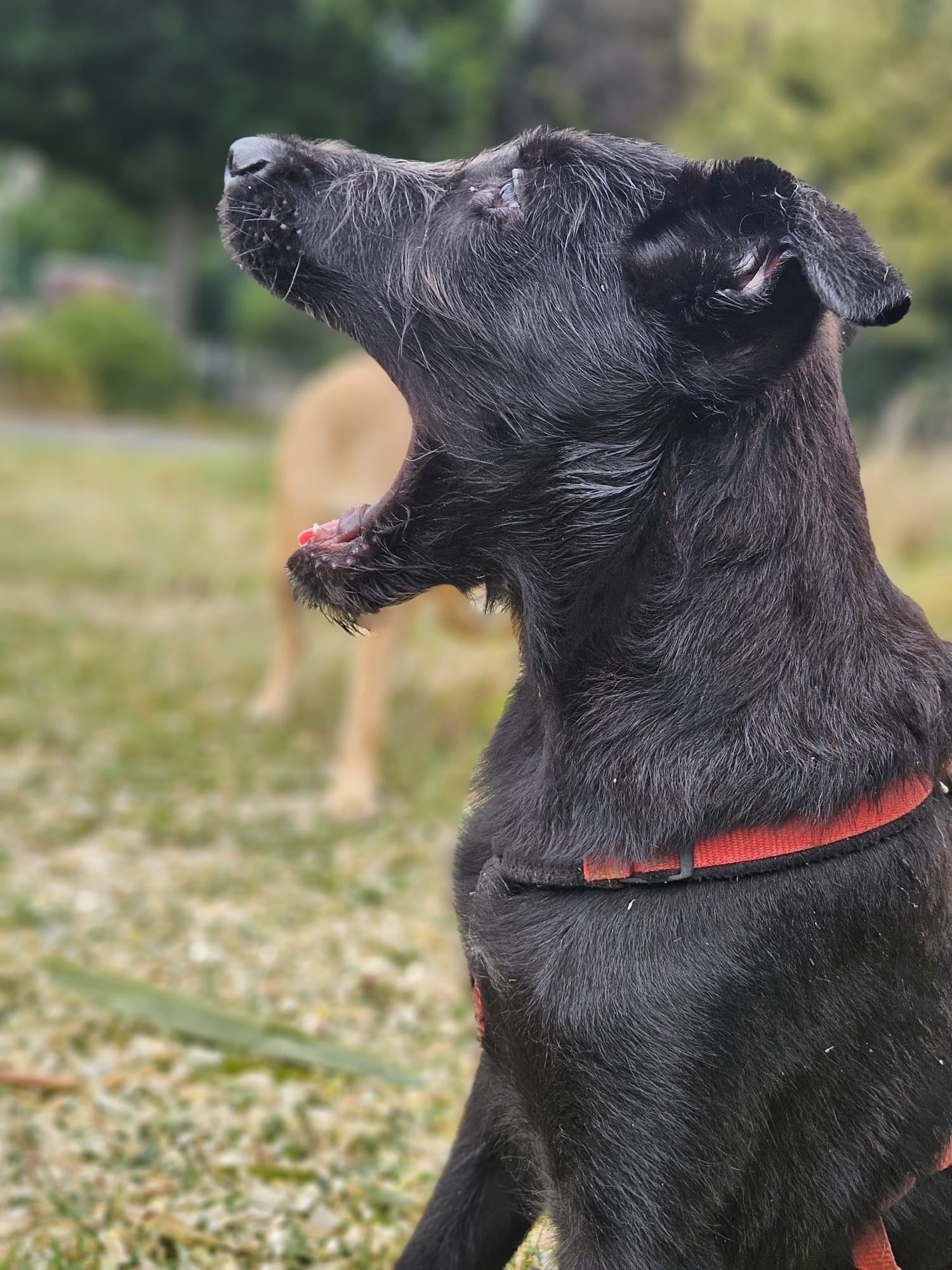 Genauso macht Dante Fortschritte beim Alleinebleiben. Zwar im Moment immer in Gesellschaft seiner Hundefreunde, aber 1-2 Stunden sind mittlerweile schon kein Problem mehr.