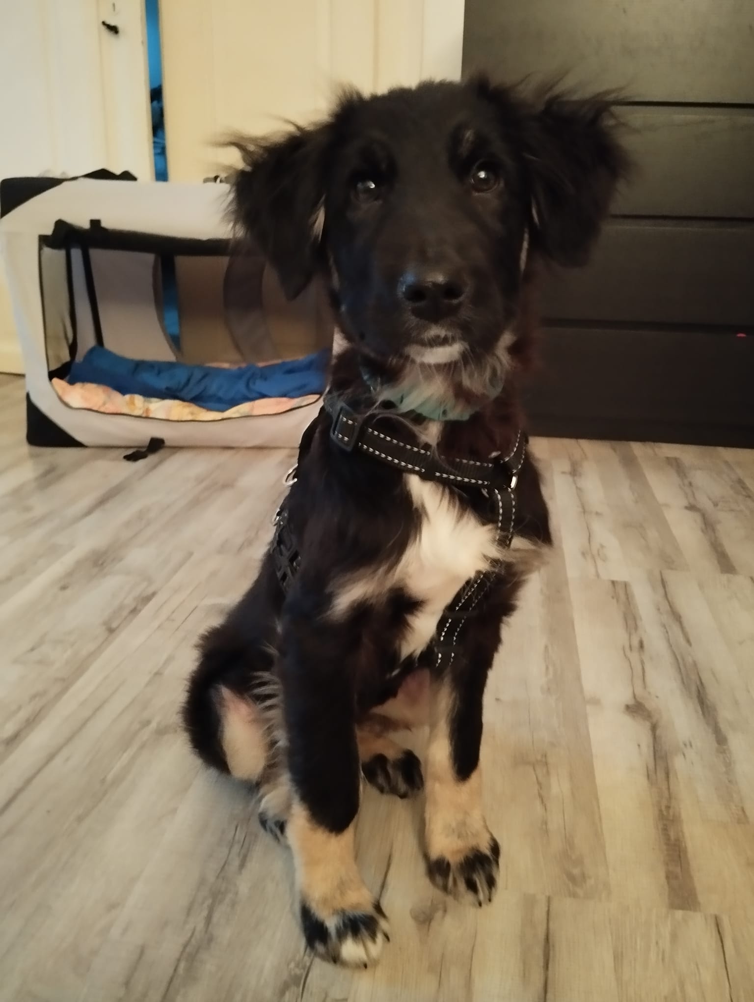 An der Leine läuft er nach kurzer Eingewöhnung schon super mit und er ist sogar schon stubenrein. Menschen findet Fussel einfach toll, egal ob groß oder klein, und auch mit anderen Hunden versteht er sich bestens. Eine Autofahrt verschläft er ganz ruhig.