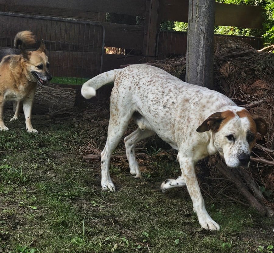 Durch die alte Verletzung des einen Beines humpelt Gaja etwas, aber das stört sie überhaupt nicht. Gaja ist sehr gesellig, brav und liebt Menschen, genau wie Łatek. Die beiden stehen sich sehr nahe und würden gerne zusammen vermittelt werden, das ist aber kein absolutes Muss.