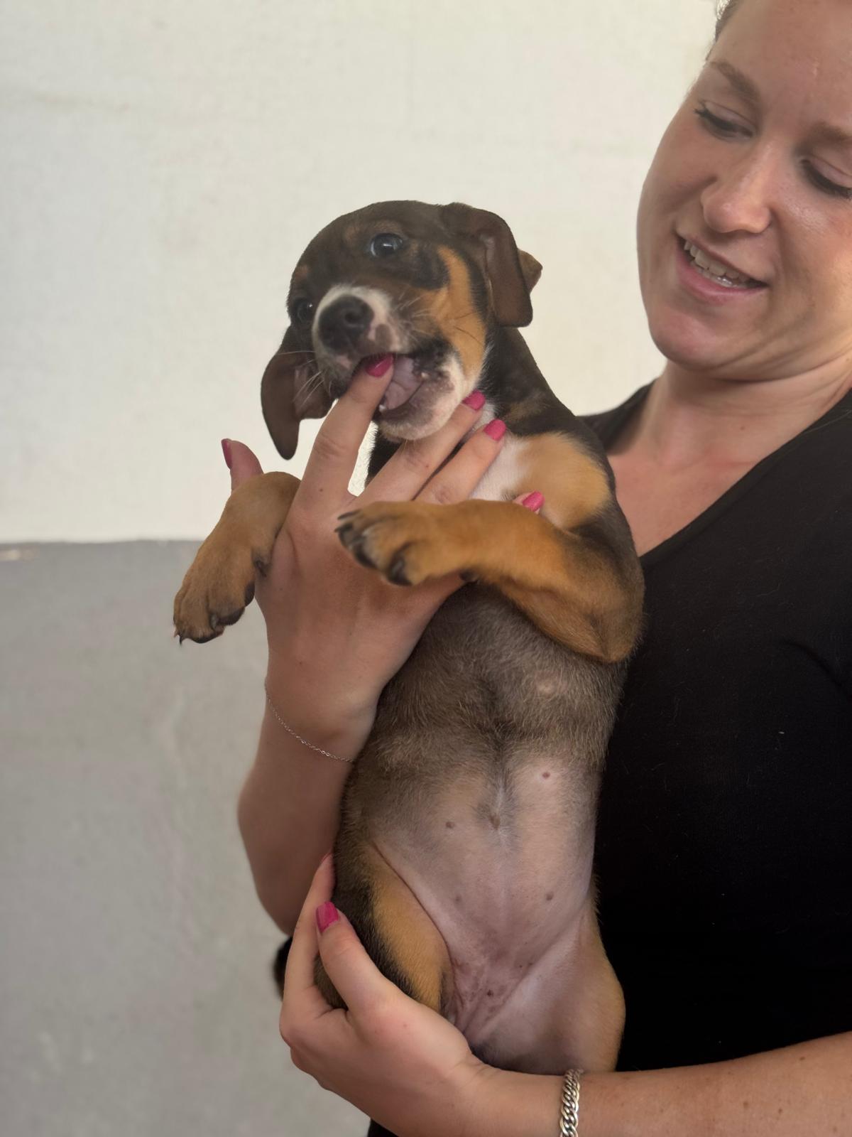 Die kleine Joy wartet gemeinsam mit ihren Schwestern Tess und Daniela im Tierheim – ein Ort, der für so junge Hunde einfach nicht der richtige Platz ist. Warum die drei dort gelandet sind, weiß man wie so oft im Tierschutz leider nicht. Doch eines ist sicher: Sie sollten ihre ersten wichtigen Lebensmonate nicht hinter Tierheimgittern verbringen.