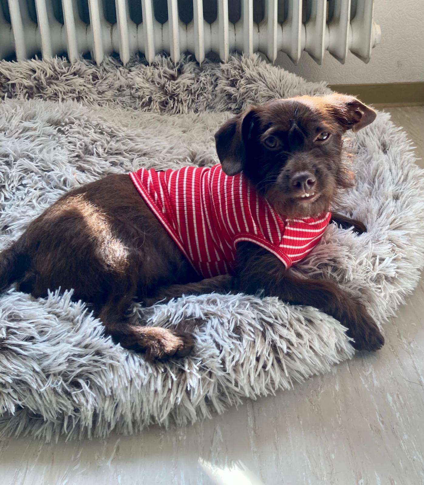 Ihre Hautproblematik ist aktuell gut unter Kontrolle und wird medikamentös sowie mit hypoallergenem Futter unterstützt. Sie braucht weiterhin etwas Aufmerksamkeit in diesem Bereich, kommt aber sehr gut zurecht. Eine ursprünglich erwogene OP an den Vorderbeinen wurde nach tierärztlicher Rücksprache nicht empfohlen — sie läuft so gut durchs Leben und genießt ihre Spaziergänge. Kaktus sucht ein ruhiges, liebevolles Zuhause bei Menschen, die ihr Zeit schenken, Sicherheit geben und ihr kleines Kämpferherz sehen.