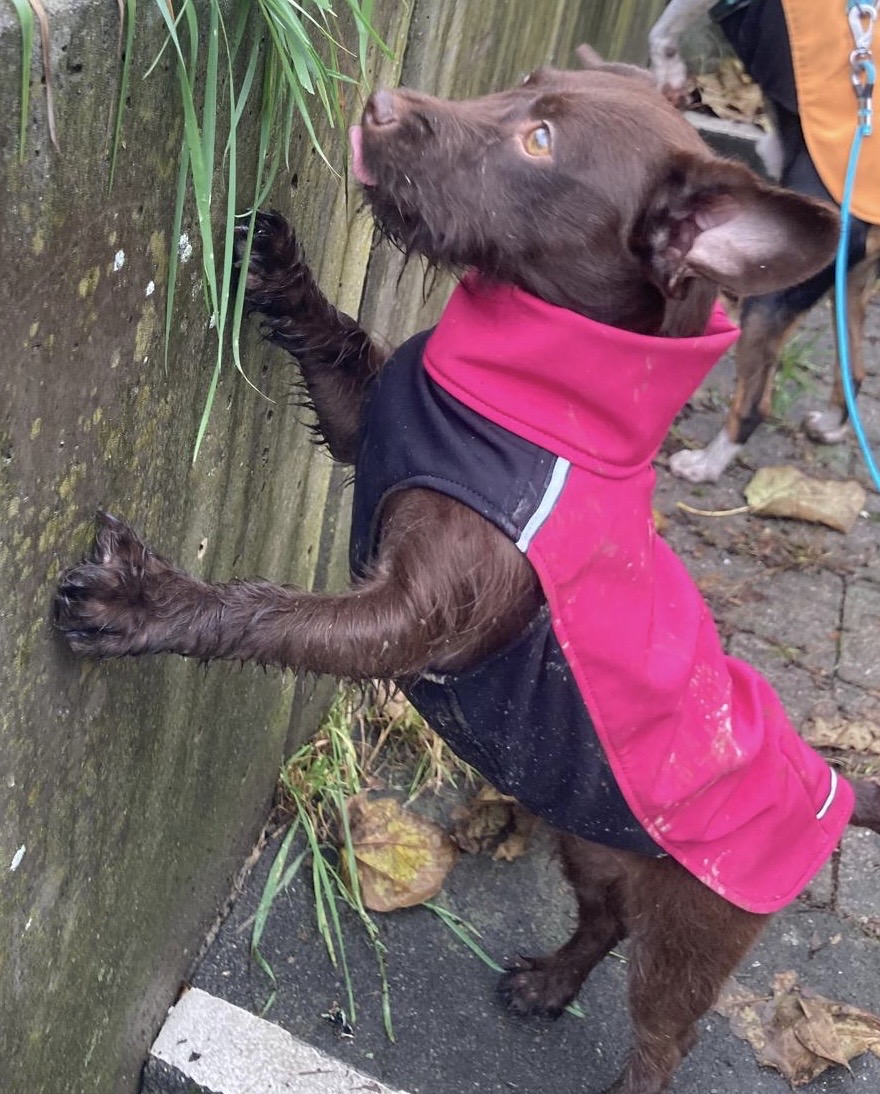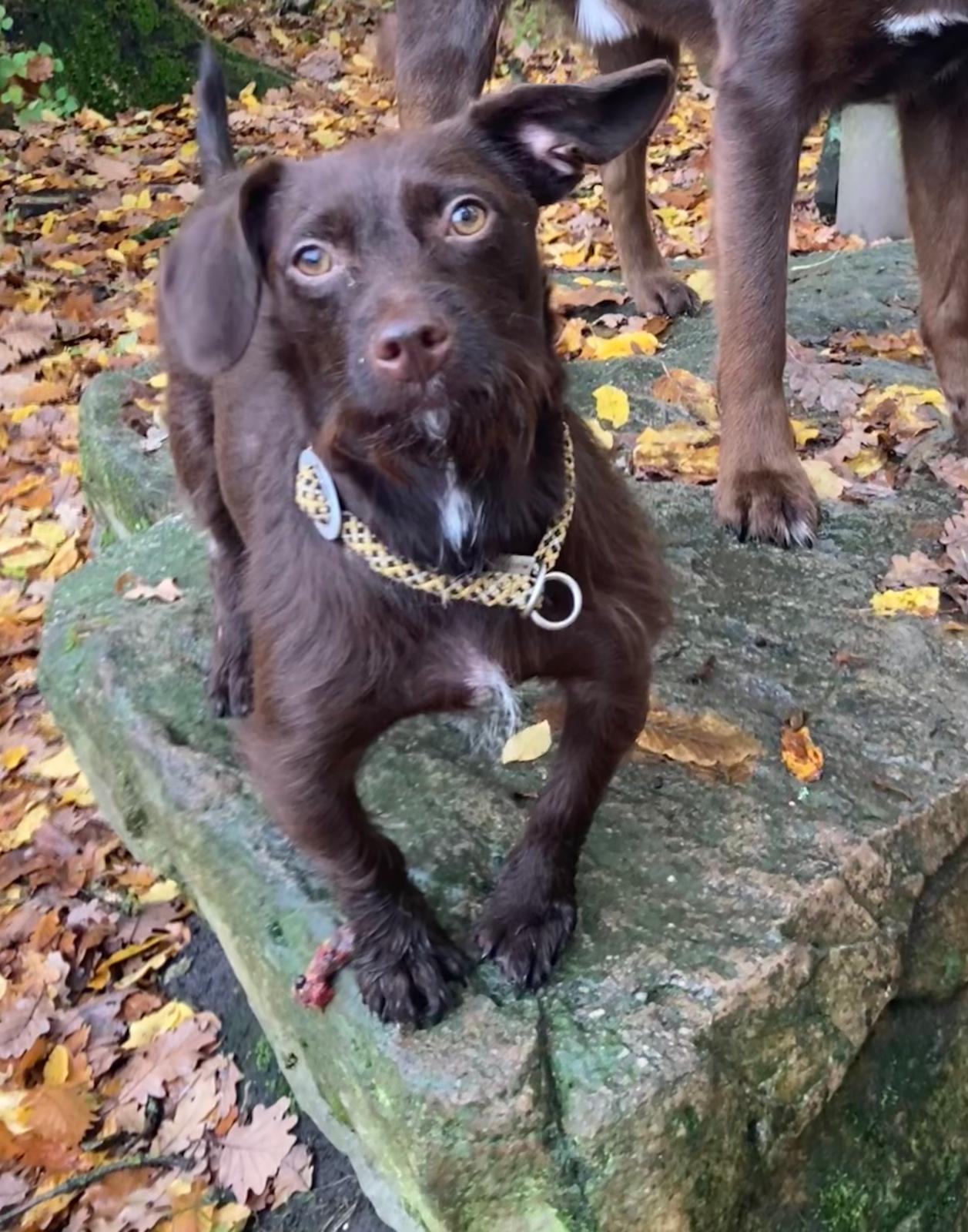 Mit Hunden ist sie sozial, freundlich und selbstbewusst — deshalb wünschen wir uns ein Zuhause mit einem souveränen Ersthund, an dem sie sich orientieren kann. Hundeerfahrene Katzen sind möglich, kleine Kinder sollten nicht im Haushalt sein.
