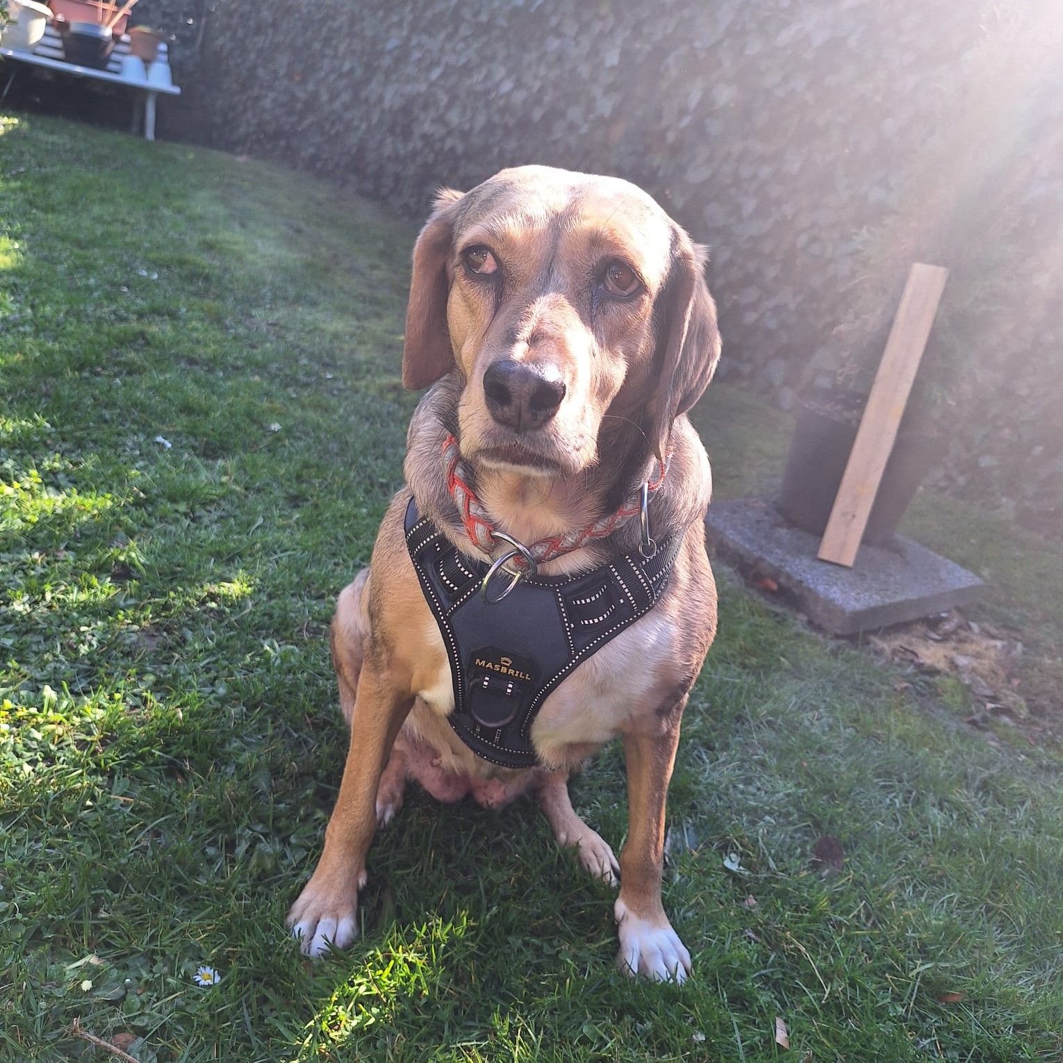 Bei Spaziergängen zeigt sie Jagdtrieb, deshalb kann es sein, dass man sie nie ableinen kann, aber das macht nichts, sie hat auch an der Leine Spaß