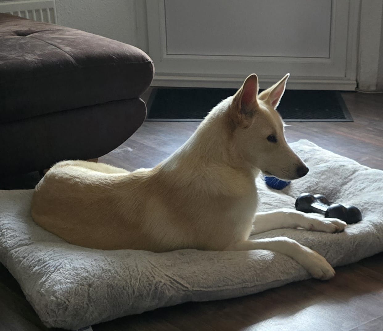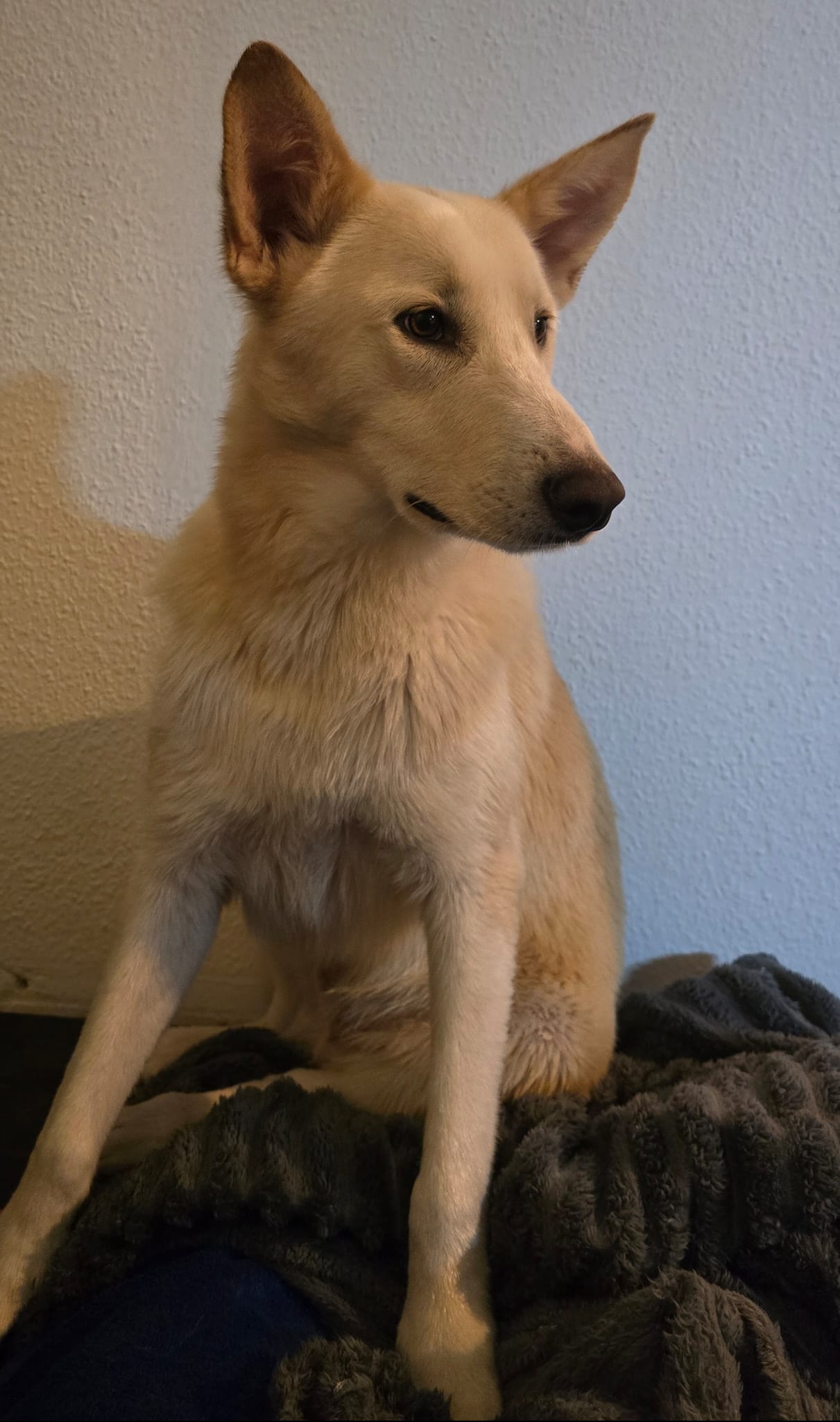 Die Pfleger*innen im Tierheim vermuteten bereits, dass Mango ein Podenco-Schweizer-Schäferhund-Mix sein könnte. Diese Rassen und deren Mischlinge bringen oft Sensibilität, Intelligenz, Bewegungsfreude und eine gute Portion Neugier mit.