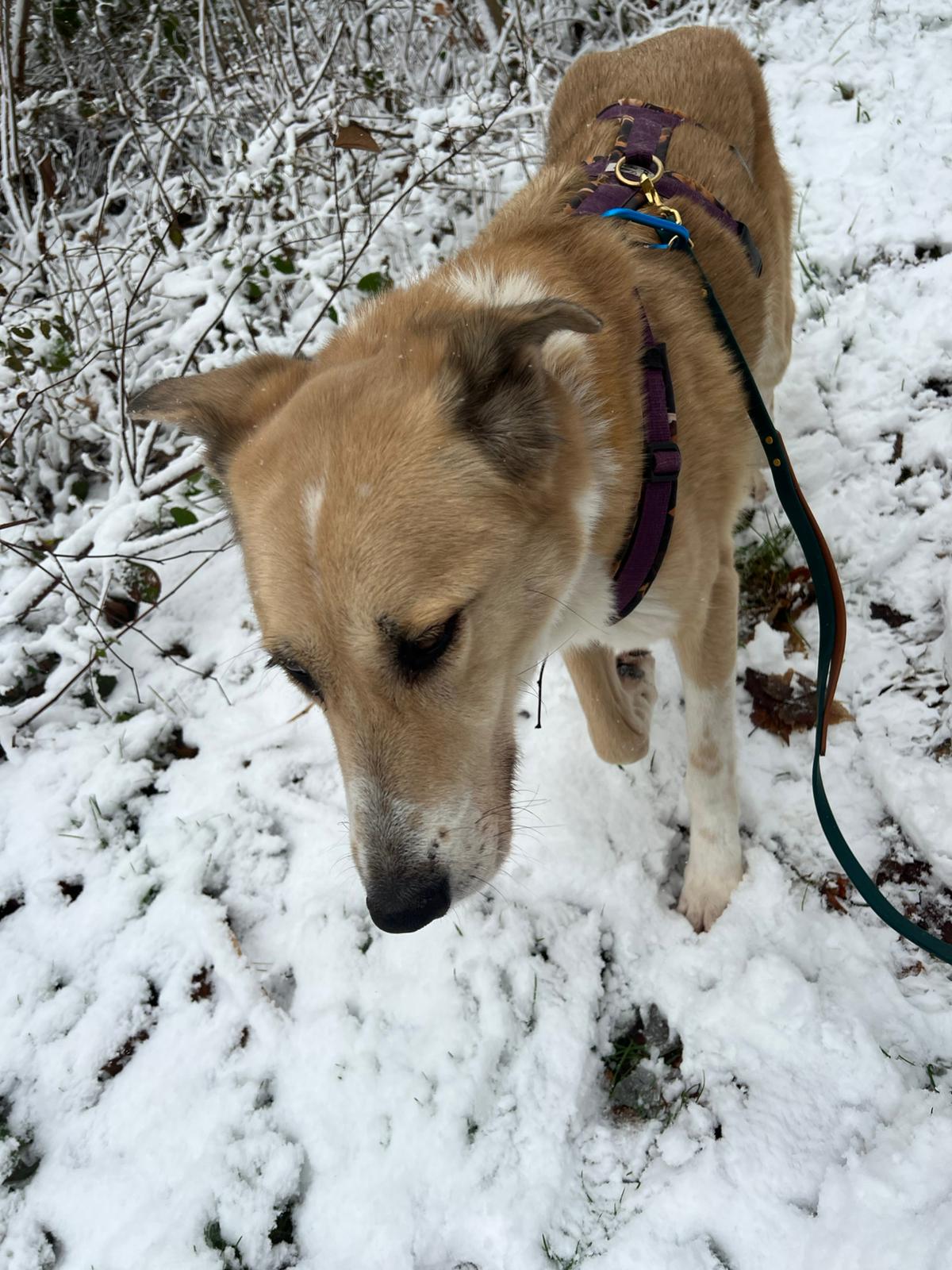 Maya hat sich schnell an ihre neue Umgebung gewöhnt und genießt entspannte Spaziergänge in der Natur. Sie ist eine Hündin mit Charakter – kein Couchpotato und kein "einfach nur dankbarer" Herdenschutzhund-Mix, sondern eine kluge, eigenständige Hundedame, die genau weiß, was sie will.