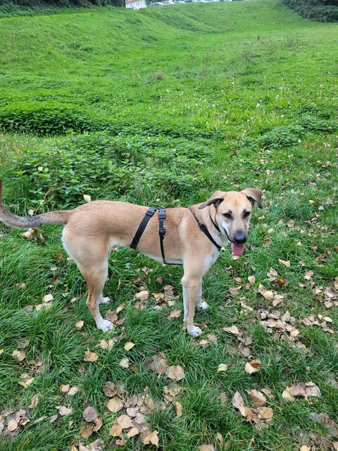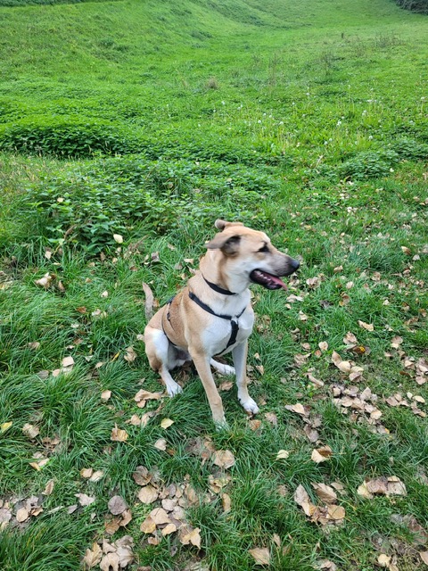 Draußen ist er ein junger, aktiver Hund, der Bewegung und Beschäftigung liebt. Radfahrer, Jogger oder Fußgänger beeindrucken ihn kaum – bei Hundebegegnungen an der Leine allerdings zeigt er sich aktuell noch sehr aufgeregt. Da zieht er kräftig, springt nach vorne und lässt sich nur schwer beruhigen. Zwar ist Nonó in der Hundeschule und arbeitet eifrig daran, gelassener zu werden. Trotzdem sollten sich Interessent*innen dessen bewusst und in der Lage sein, ihm auch körperlich etwas entgegenhalten zu können.