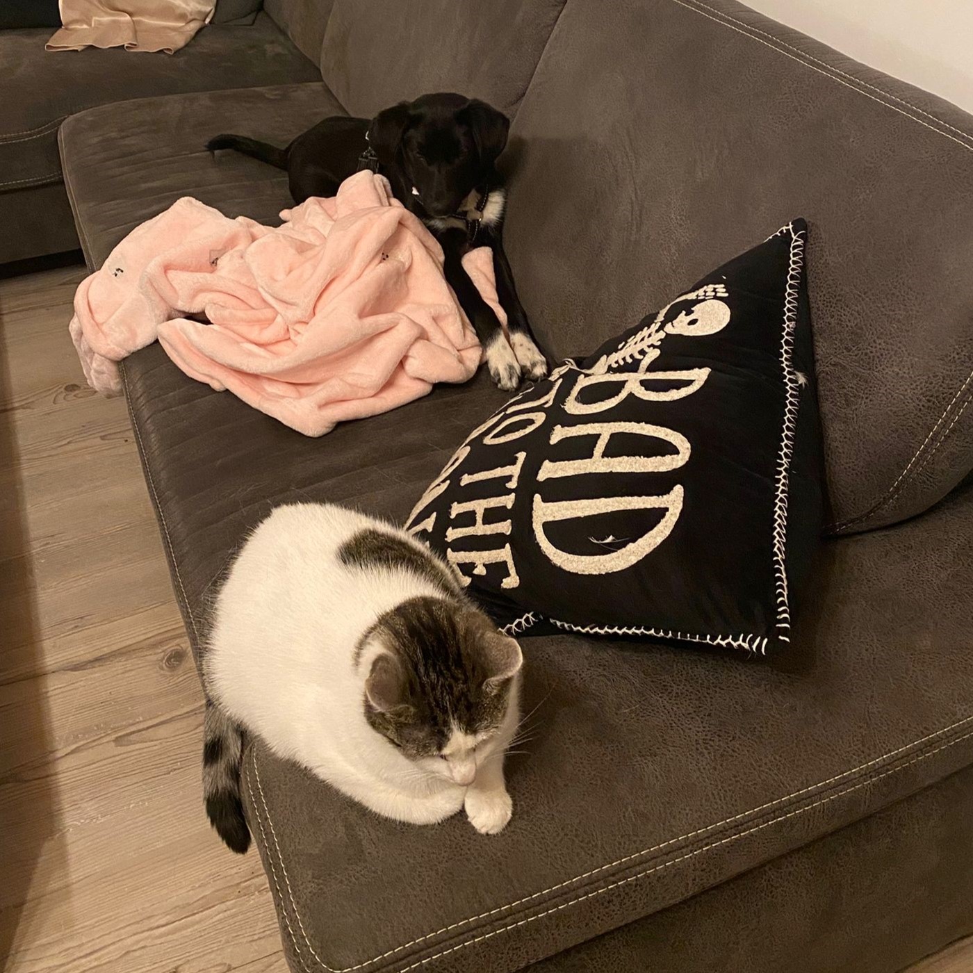 Mit dem Rüden der Pflegestelle versteht sie sich inzwischen richtig gut – die beiden spielen und toben zusammen, als würden sie sich schon ewig kennen. Auch mit Katzen gibt es keinerlei Probleme: Smilla begegnet ihnen vorsichtig und respektvoll, alles läuft friedlich und entspannt. Smilla ist zudem sehr lernfreudig und neugierig. Sie begreift neue Dinge blitzschnell und liebt es, wenn sie gemeinsam mit ihren Menschen etwas lernen darf – besonders, wenn es dafür Leckerlis gibt . Das Training macht mit ihr richtig Freude!