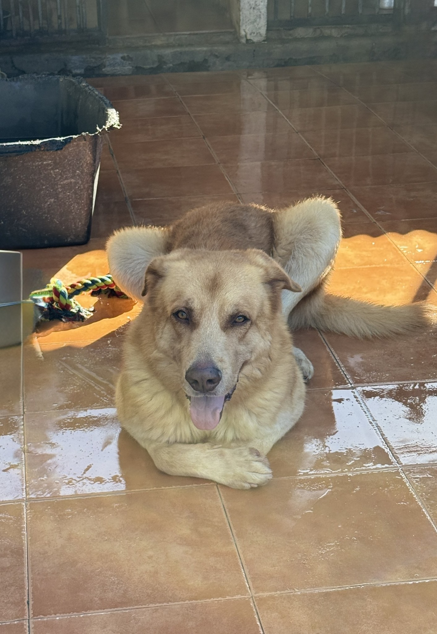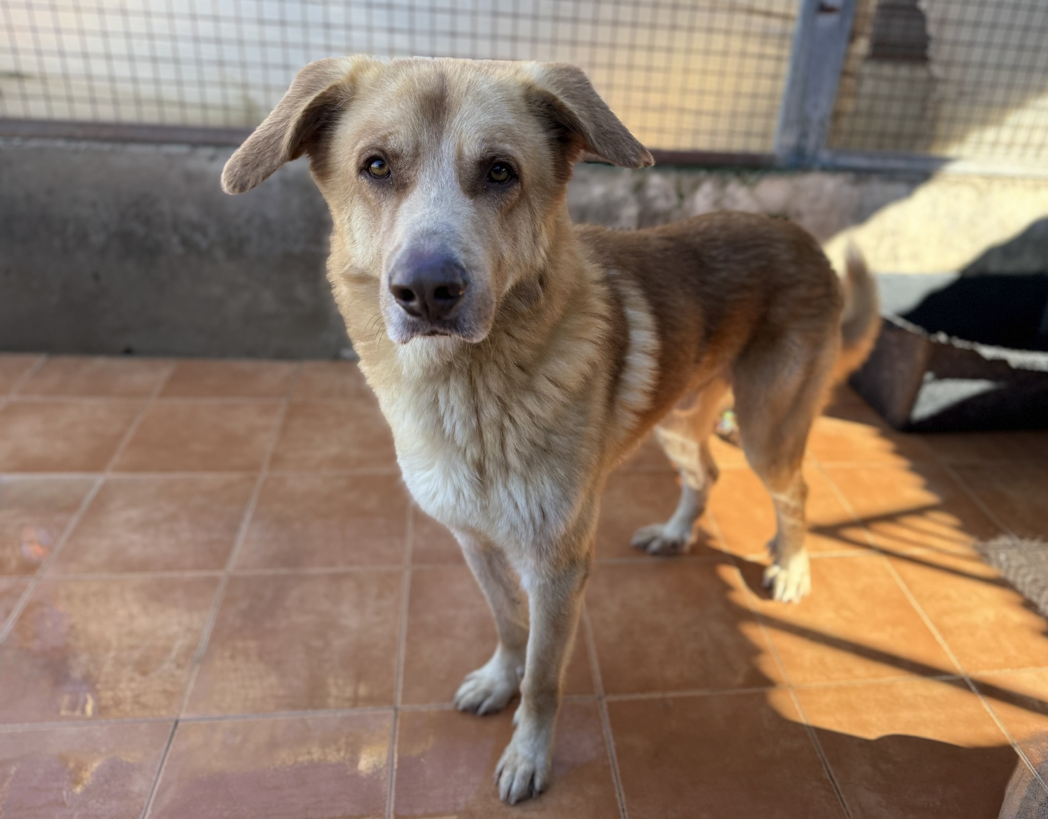 Urano ist ein großer Mischlingsrüde, der seit Mai 2025 im spanischen Tierheim lebt. In dieser Zeit hat er bereits viele Fortschritte gemacht: Mit anderen Hunden versteht er sich sehr gut und hat schnell Freundschaften geschlossen. Er beginnt, sich im Tierheimalltag zurechtzufinden und zeigt dabei seine freundliche, sanfte Art. Beim Spazierengehen reagiert Urano manchmal nervös auf neue Geräusche oder schnelle Bewegungen – ungewohnte Eindrücke können ihn noch erschrecken. Autos hingegen machen ihm keinerlei Angst, und sowohl Menschen als auch anderen Hunden begegnet er stets mit höflichem Interesse. Trifft er unterwegs auf Katzen, ist er neugierig, aber nicht reaktiv.