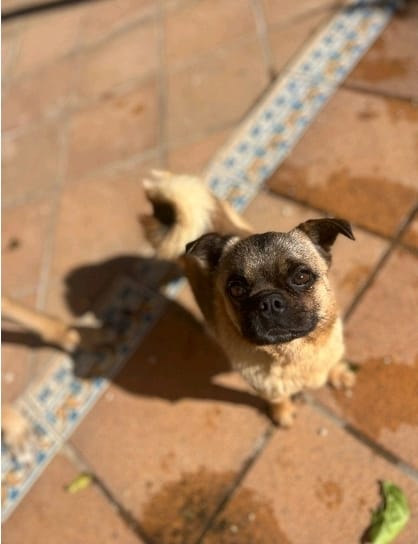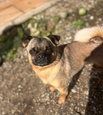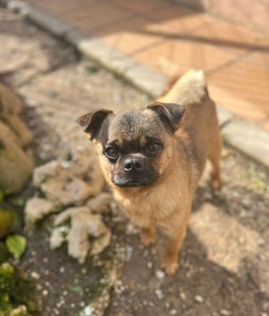 Der kleine Mops Mischling Stitch wartet im spanischen Tierheim auf seine große Chance – auf Menschen, die ihm zeigen, wie schön ein behütetes Hundeleben sein kann. Stitch ist ein ausgesprochen freundlicher und fröhlicher kleiner Kerl. Mit seinem offenen Wesen und seinem charmanten Blick zaubert er jedem sofort ein Lächeln ins Gesicht. Er liebt Streicheleinheiten über alles und genießt jede Form von Aufmerksamkeit. Kuscheln gehört definitiv zu seinen Lieblingsbeschäftigungen! Auch Spielen macht ihm riesigen Spaß – egal ob mit seinen Menschen oder mit anderen Hunden. Stitch ist sozial und verträglich und kann problemlos mit Artgenossen zusammenleben.