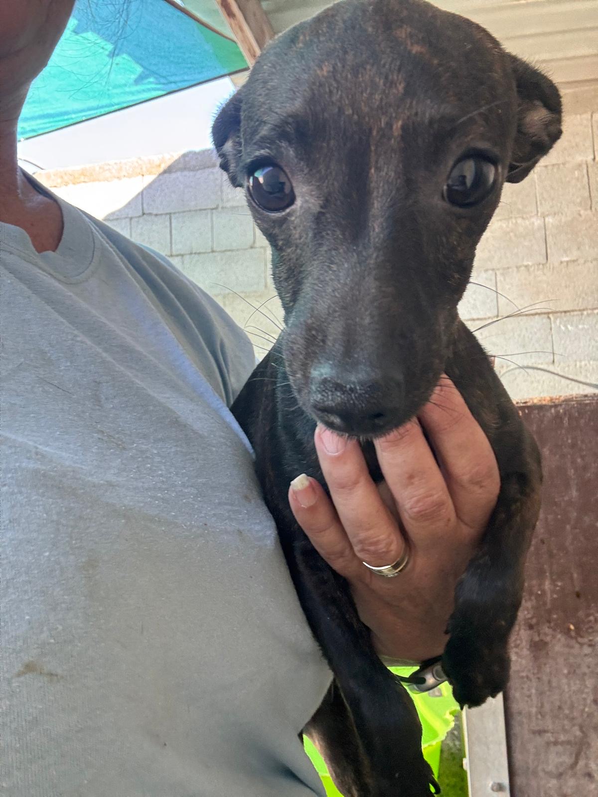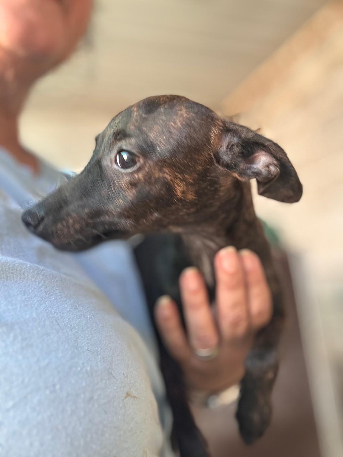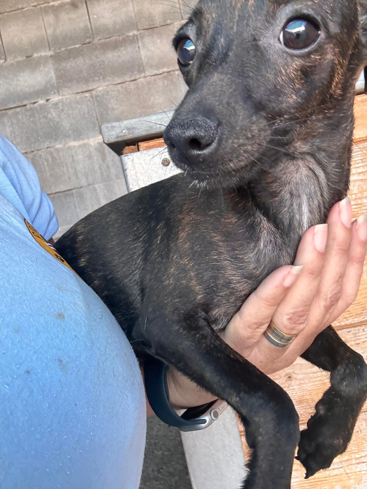 Pinscher Mischling Pudding wurde mit ihren beiden Brüdern im Tierheim abgegeben, vermutlich waren sie ein ungeplanter Wurf.