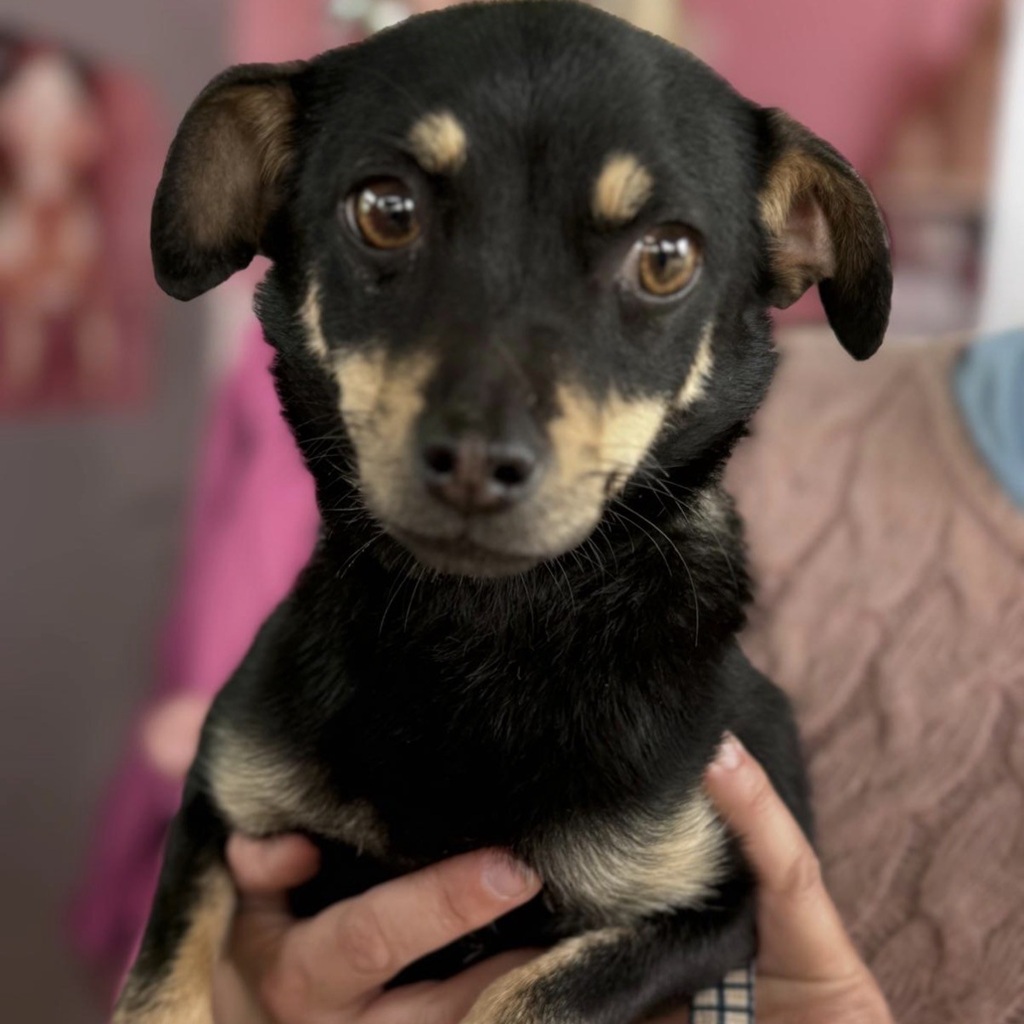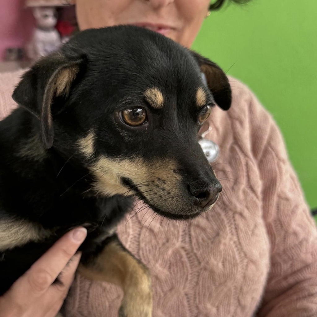 Sabrina ist eine junge Pinscher-Mix-Hündin, geboren etwa im August 2025, mit einer Schulterhöhe von ca. 30 cm. Mit ihrer handlichen Größe und ihrem feinen Wesen bringt sie alles mit, um eine wunderbare Begleiterin im Alltag zu werden.