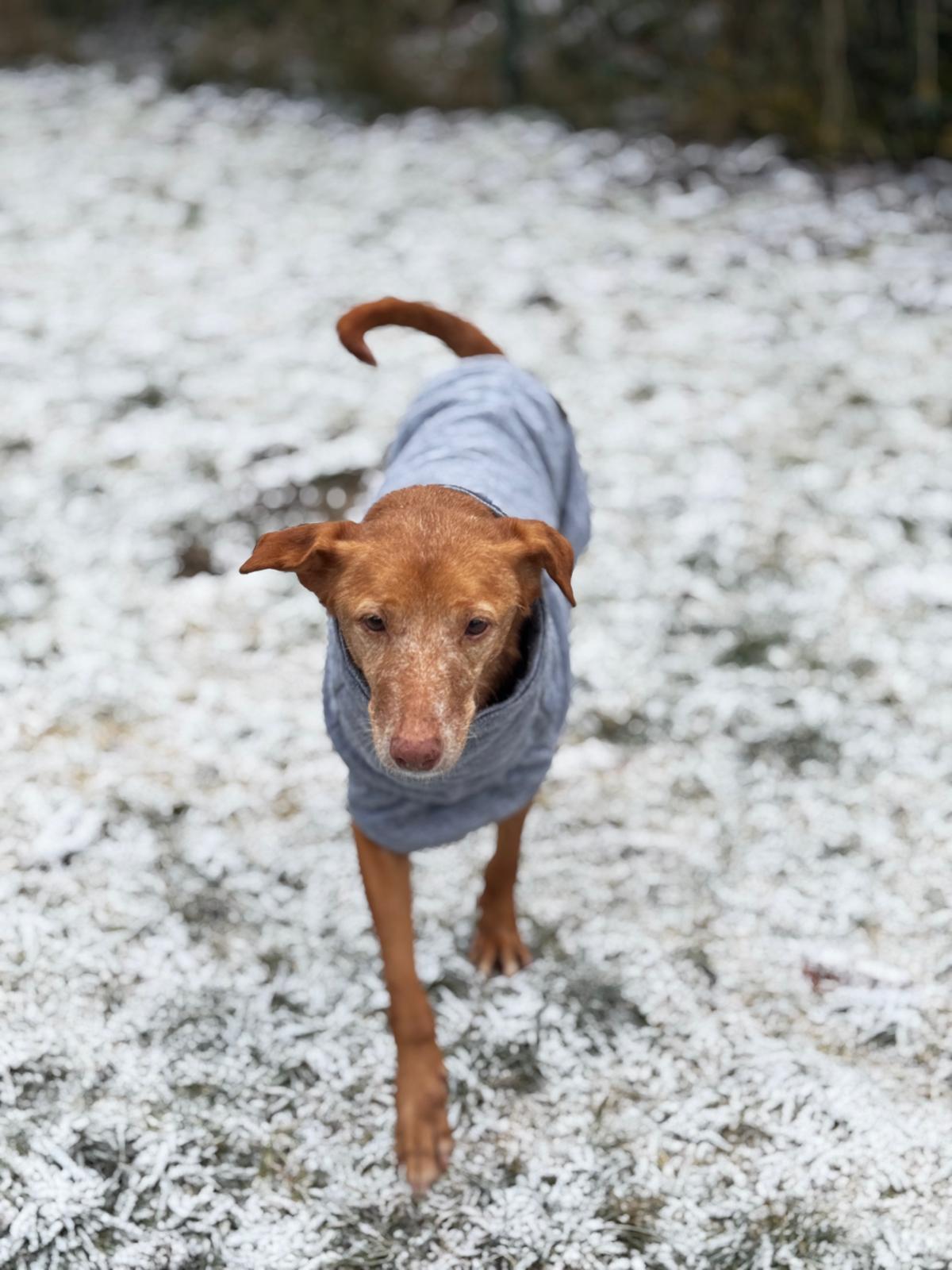 Canela ist eine lebensfrohe und sehr anhängliche Hündin. Sie lebt erst seit wenigen Tagen auf ihrer Pflegestelle und lebt seit ihrer Zahnsanierung richtig auf. Noch fehlt der lebensfrohen Hundeseniorin die nötige Muskulatur, um größere Spaziergänge zu machen, aber sie zeigt sich in ihrer Pflegestelle noch sehr agil und lauffreudig für ihr Alter. Im Haus kommt Canela schnell zur Ruhe und scheint auch mit dem allein bleiben keine großen Probleme zu haben, obgleich sie auch froh ist ihre Menschen in ihrer Nähe zu wissen. Canela kuschelt und schmust sehr gerne, sie genießt diese Momente mit ihrer Pflegefamilie innig. Canela ist mit jedem anderen Hund verträglich und einfach eine richtige Seelenhündin. Lediglich das Autofahren bereitet ihr noch große Sorgen bis hin zu Panik, sofern sie in einer Hundebox mitfahren soll. Wenn man Canela die Pfötchen hält und Körperkontakt hält, kann sie kürzere Strecken im Auto schon gut ertragen. Wir suchen für Canela nun den Hauptgewinn, gerne mit Garten, in dem sie auch mal ein paar Runden nach Lust und Laune galoppieren kann mit viel Zeit zum kuscheln und großartigen Spaziergängen
