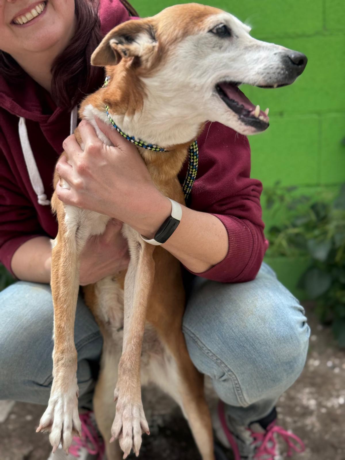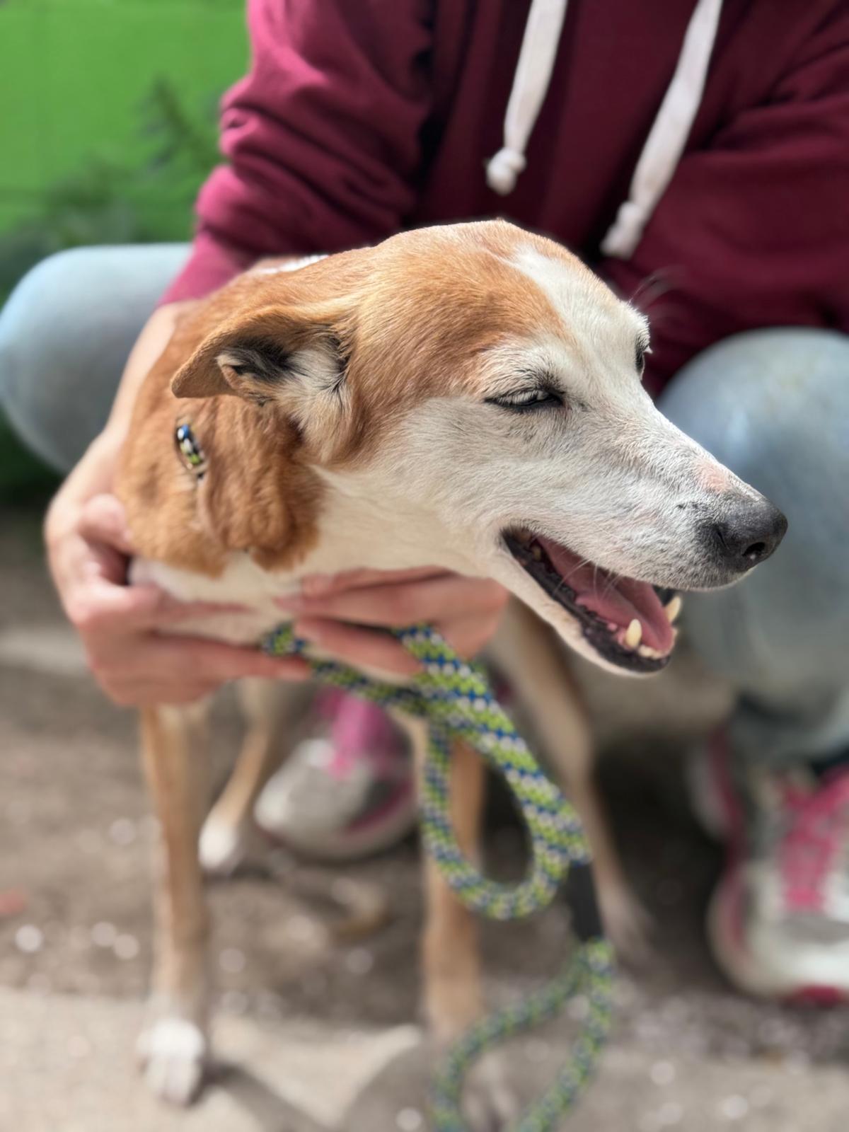 Chispi ist eine zauberhafte ältere Podenca, die sicher bisher kein so schönes Leben hatte. Wir hoffen, dass sie noch einmal die Chance auf ein liebevolles Zuhause bekommt und noch einmal in einem warmen, kuscheligen Bettchen schlafen darf.