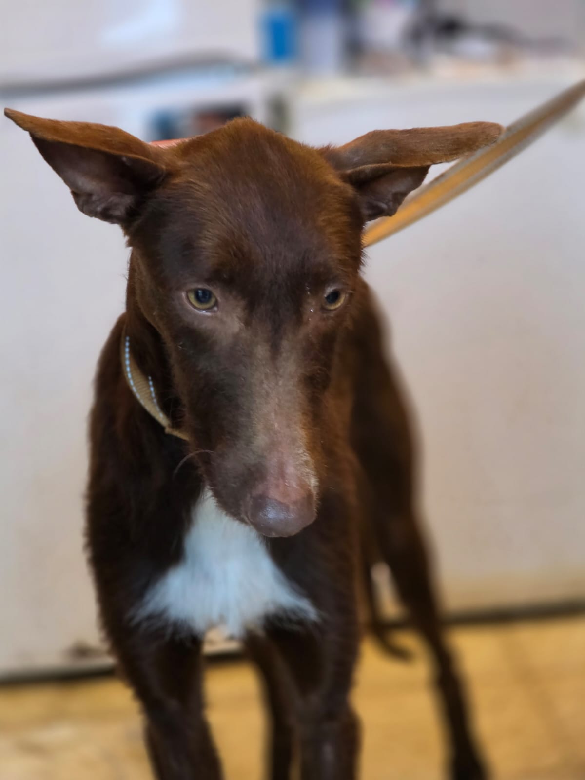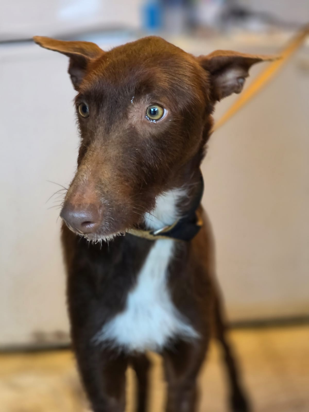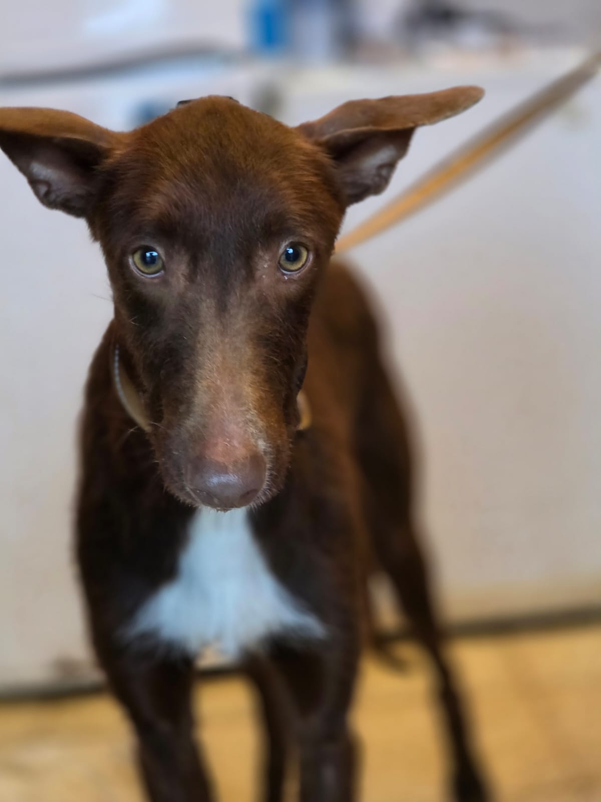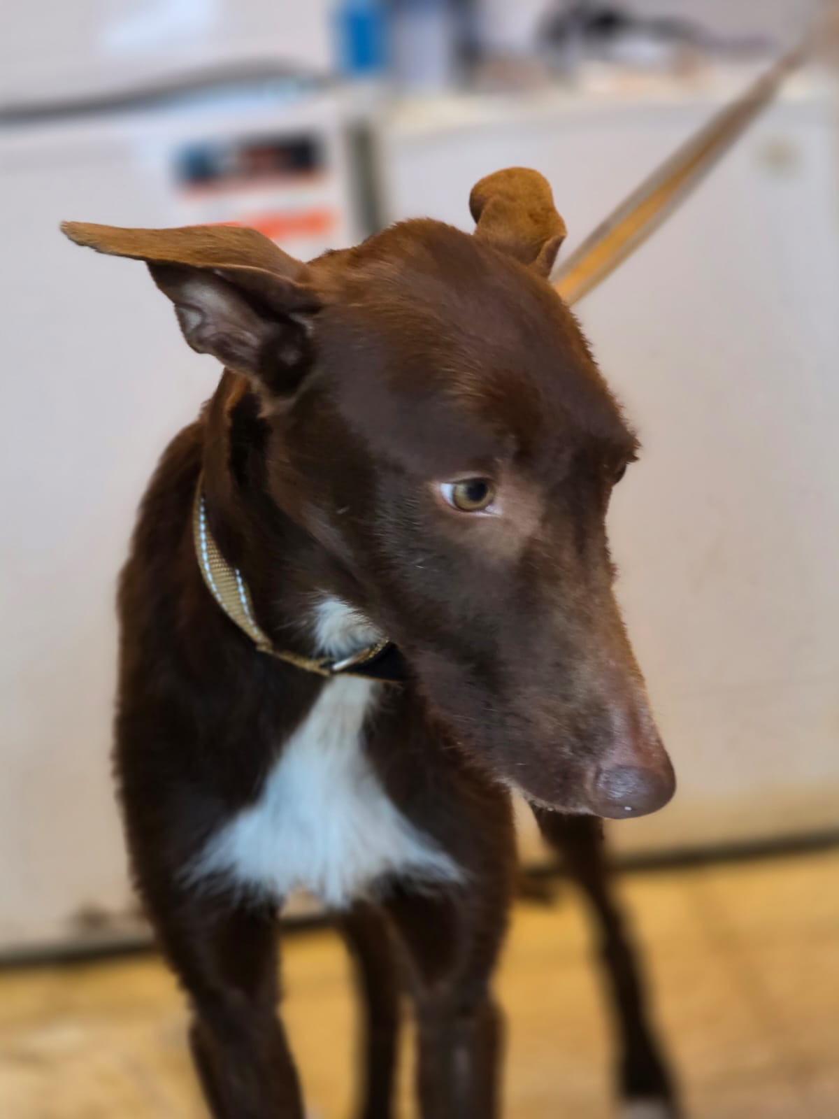Chocolate ist ein wunderschöner, großer Podenco. Mit seinem rauen, dunkelbraunen Fell ist er ein echter Hingucker.