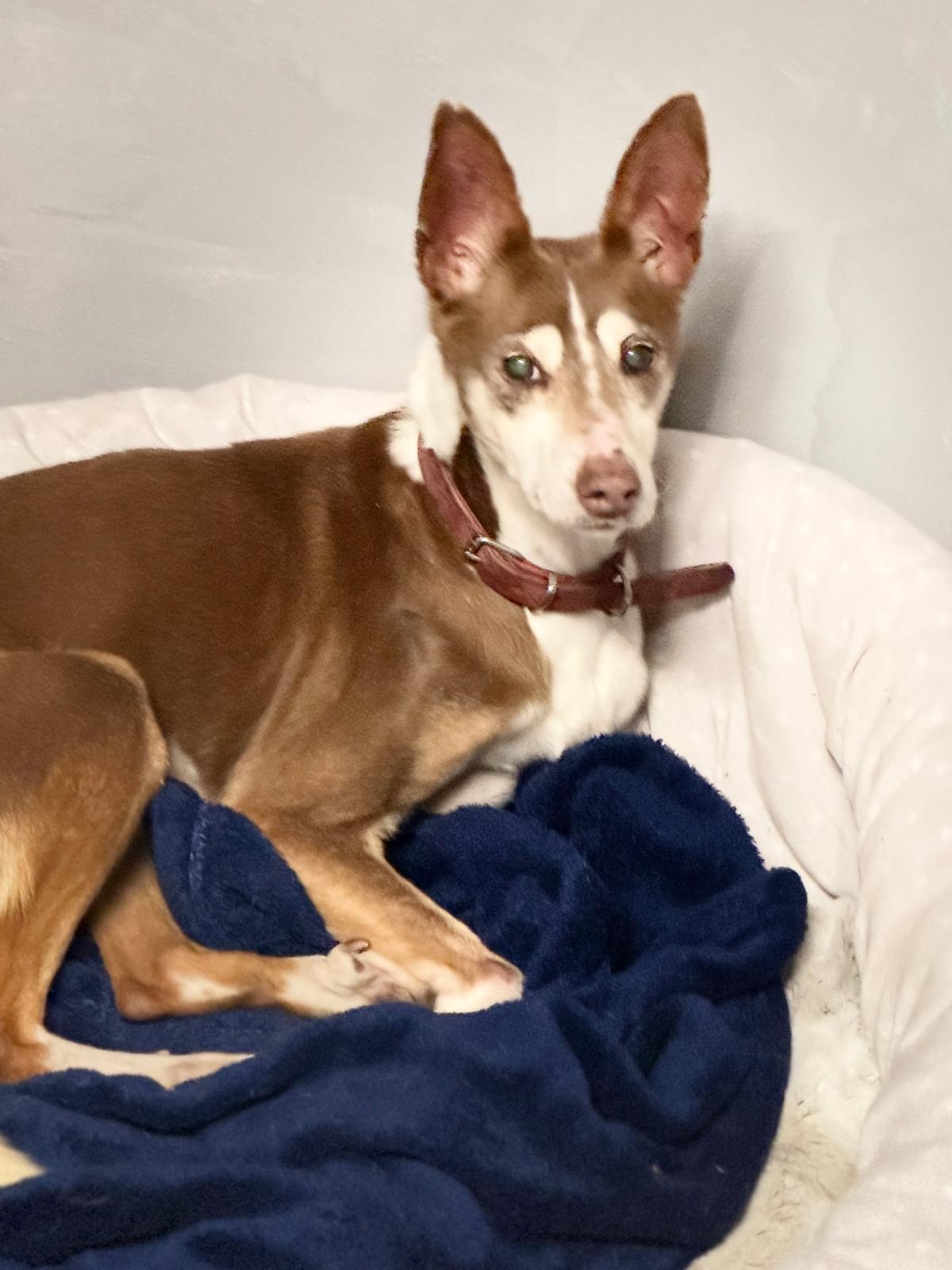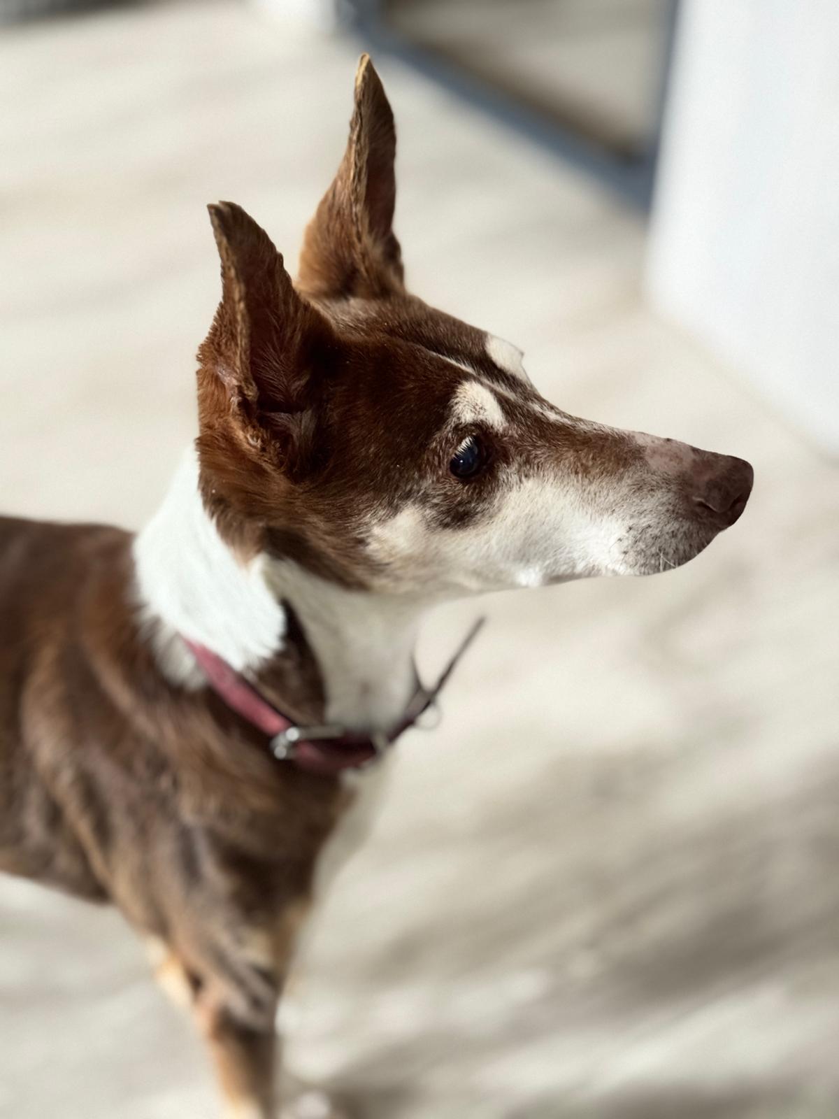 Die 13-jährige Podenca Coqui hat bereits einen langen Weg hinter sich: Ursprünglich aus Spanien stammend, durfte sie nun endlich auf eine Pflegestelle in Deutschland ziehen – und genießt ihr neues Leben in vollen Zügen. Coqui ist für ihr Alter erstaunlich fit und läuft bereits sehr schön und flott an der Leine. Man merkt ihr deutlich an, wie sehr sie ihr neu gewonnenes Glück schätzt. Dieses möchte sie verständlicherweise nicht mehr hergeben – daher kann es vorkommen, dass sie ihr Körbchen gegenüber anderen Hunden auch mal verteidigt.