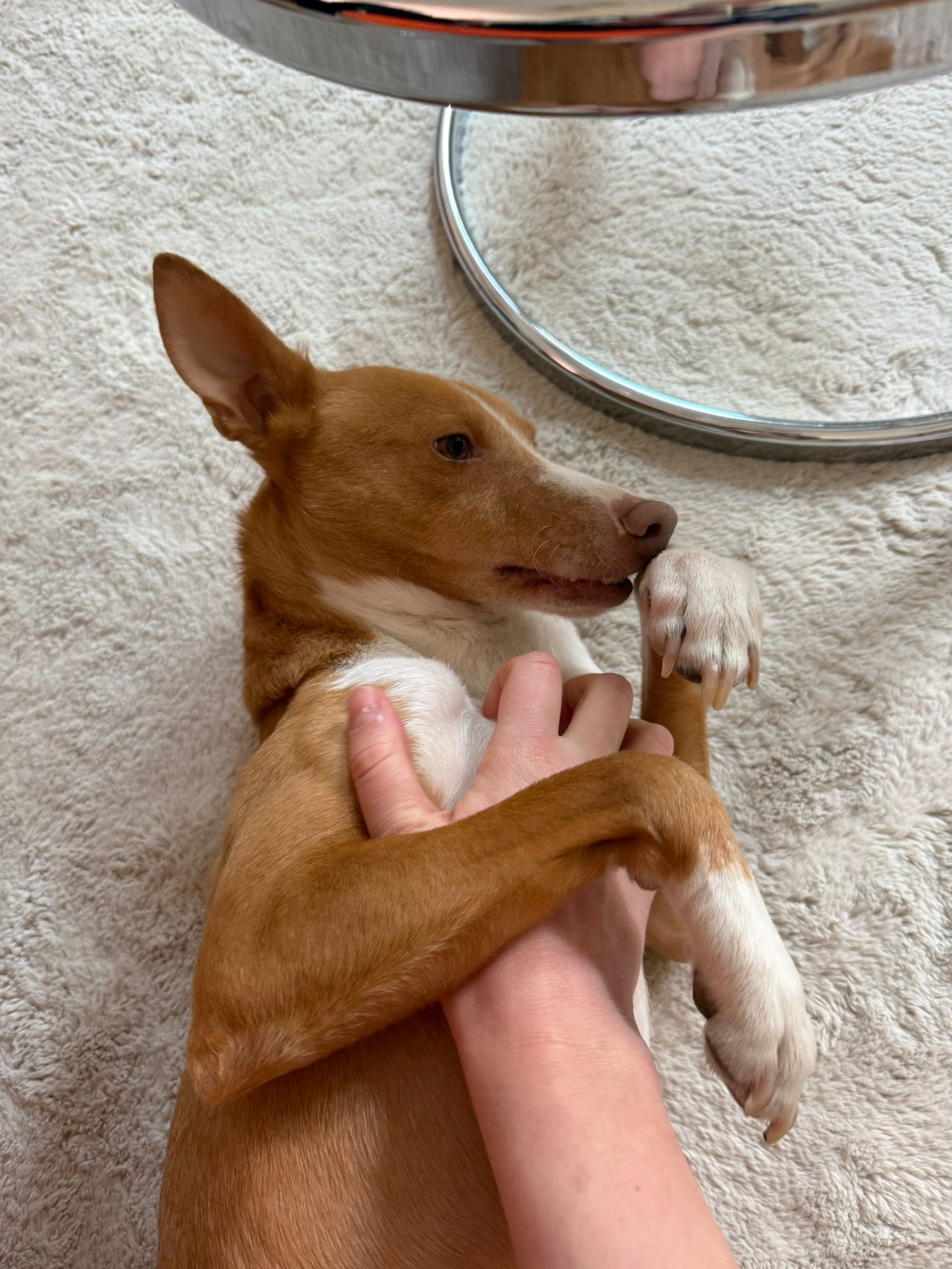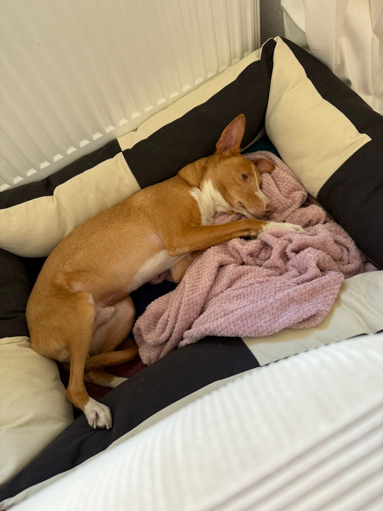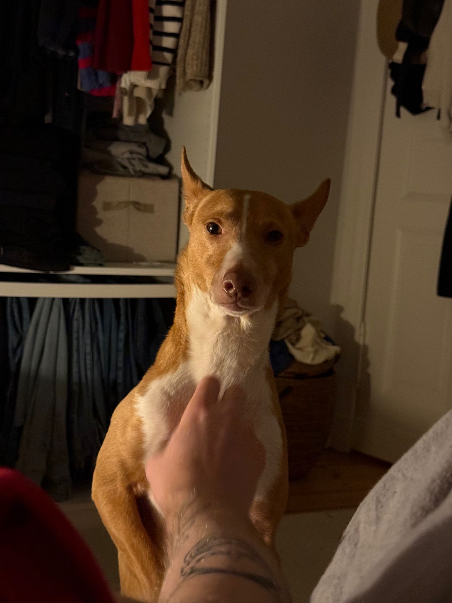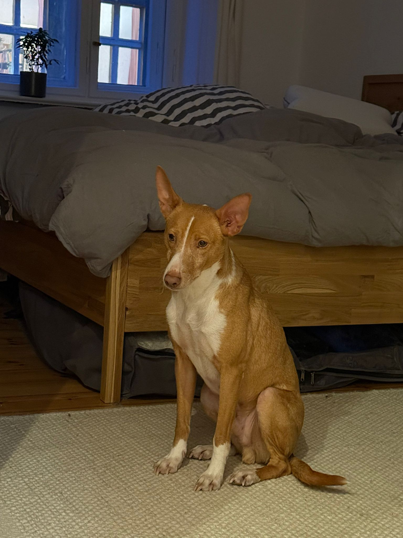 „Kiwi ist das liebste Wesen. Er liebt Kinder über alles. Er ist neugierig und genießt seine Kuschel- und Krauleinheiten. Für Spaziergänge ist er immer zu haben und läuft super an der Leine, wenn man es möchte. An der Schleppleine rennt er über Felder und macht seiner sportlichen Figur alle Ehre. Er spielt gerne mit anderen Hunden. Zu Hause ist er sehr ruhig und pflegeleicht. Mit kleinen Snackspielen beschäftigt er sich sehr lange. Kiwi ist ein absoluter Langschläfer. Wenn man ihn morgens nicht dazu bewegt eine Runde zu laufen, bleibt er bis 11 Uhr in seiner Box und schläft. Wenn man die Zeit für einen gemütlichen Morgen hat und das nicht nur am Wochenende, ist er der perfekte Begleiter. Er strahlt so viel Dankbarkeit und Liebe aus. Die Trennung von ihm ist eine Entscheidung aus Vernunft. Er hat noch Angst für längere Zeit alleine zu sein. Er ist dann unruhig und es fühlt sich für uns nicht fair an. Getrennte Räume sind für ihn gut machbar. Er kann auch mal 1-2 Stunden alleine bleiben. Er zerstört auch nichts außer das, was man ihm gibt, wie z.B. Kartons. Er kann sich dann gut selbst regulieren, ist nur dauerhaft aktiv und wachsam. Er ist wunderbar und das von Anfang an.“