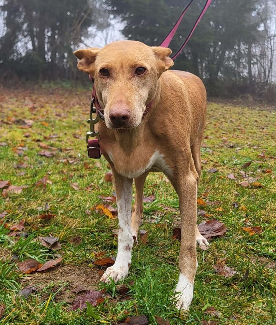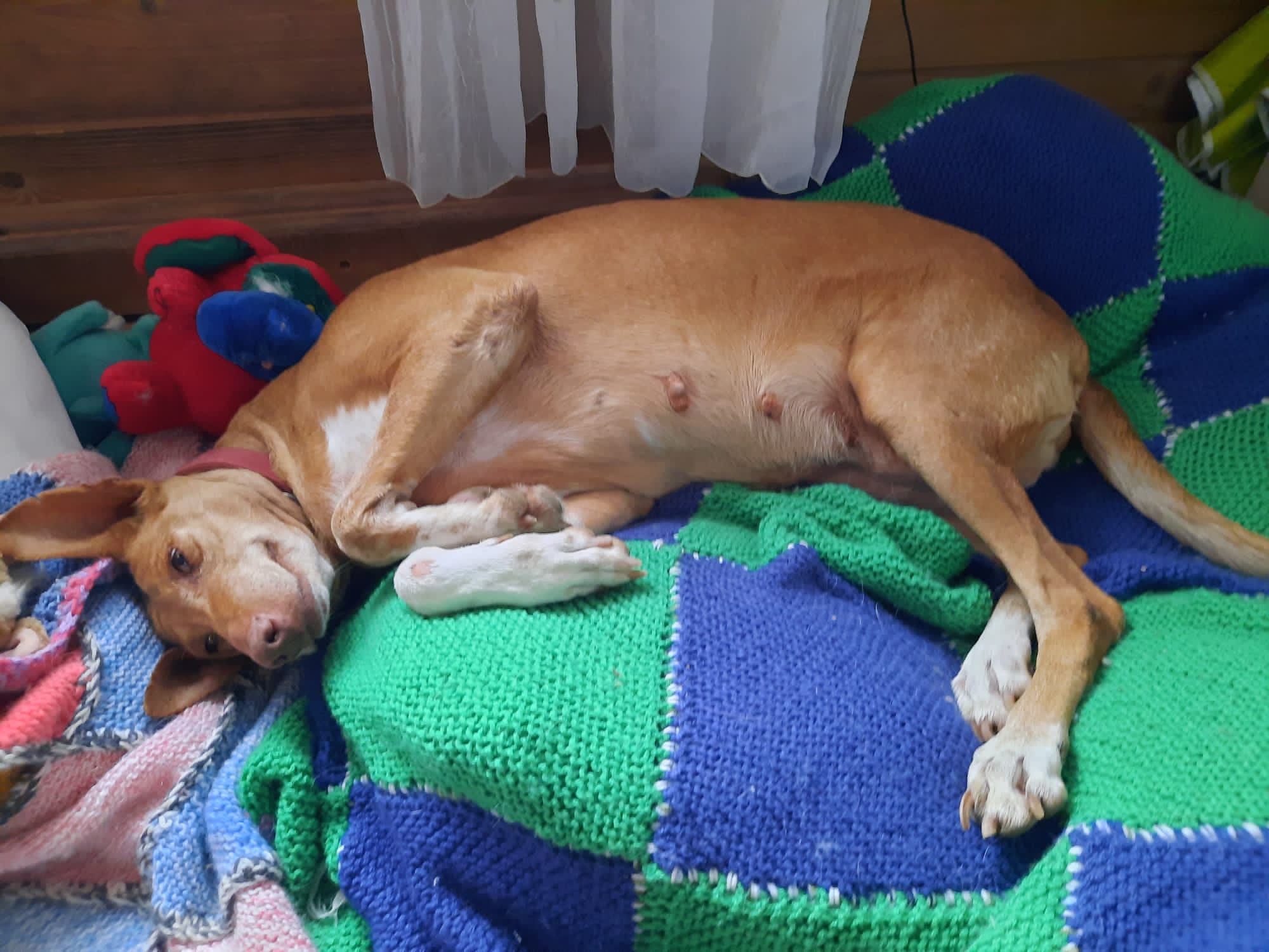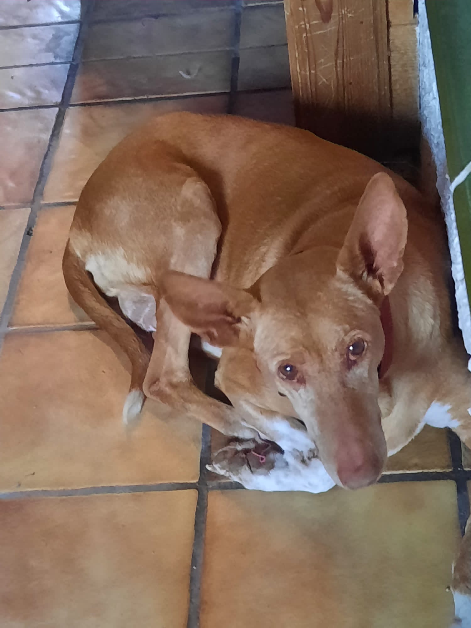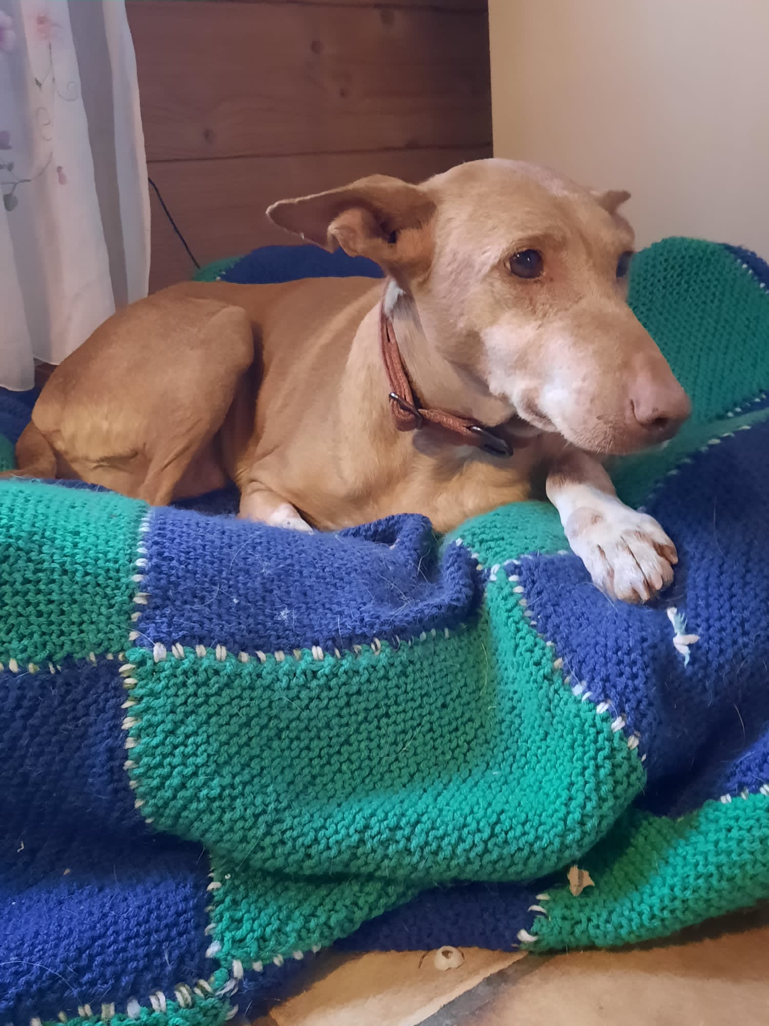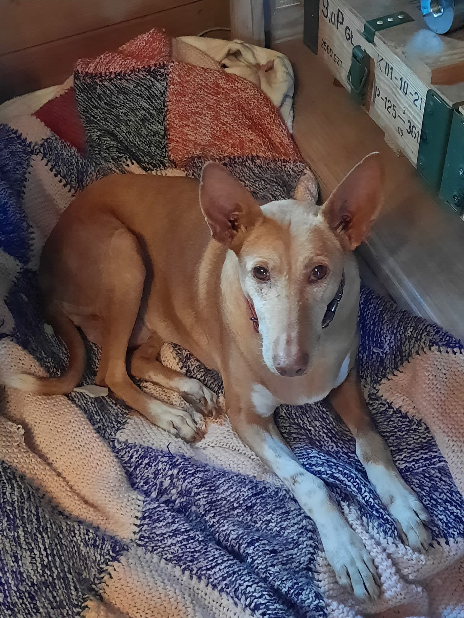 La Pintaita, zu Deutsch die Bemalte - diesen wenig schmeichelnden Namen hat man der älteren Podenca im Tierheim gegeben. Sie hatte nämlich keinen Namen. Der Jäger, dem sie gehörte, hatte eine große 17 auf ihr Fell gemalt. Noch nicht einmal einen Namen war sie ihm wert. Die Zahl ist inzwischen ausgewaschen und auch die Härten ihres alten Lebens vergisst La Pintaita auf ihrer Pflegestelle gerade ganz schnell. Im Tierheim hat sie wahrscheinlich zum ersten Mal im Leben genug Futter bekommen und dankbar hat sie sich ein ordentliches Bäuchlein angefuttert, was nun auf schönen Spaziergängen in der Natur wieder sportlich abtrainiert werden muss. Wobei – sehr sportlich ist La Pintaita nicht. Als ältere Podenca liebt sie es gemütlich, warm und kuschelig und zum Rausgehen in den deutschen Winter muss man sie überreden.