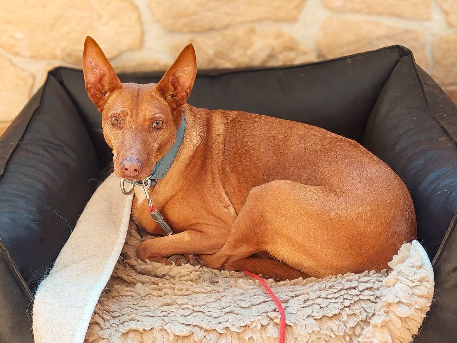 Podenca Lima ist eine völlig unkomplizierte Traumhündin. Jeder, der sie kennenlernt, ist sofort begeistert von ihrer ruhigen, aufgeschlossenen Art. In das Leben auf ihrer Pflegestelle hat sie sich rasch und reibungslos integriert. Sie kommt super mit der vorhandenen gemischten Hundegruppe klar und kuschelt vorurteilsfrei mit jeder Person, die zu Besuch kommt.