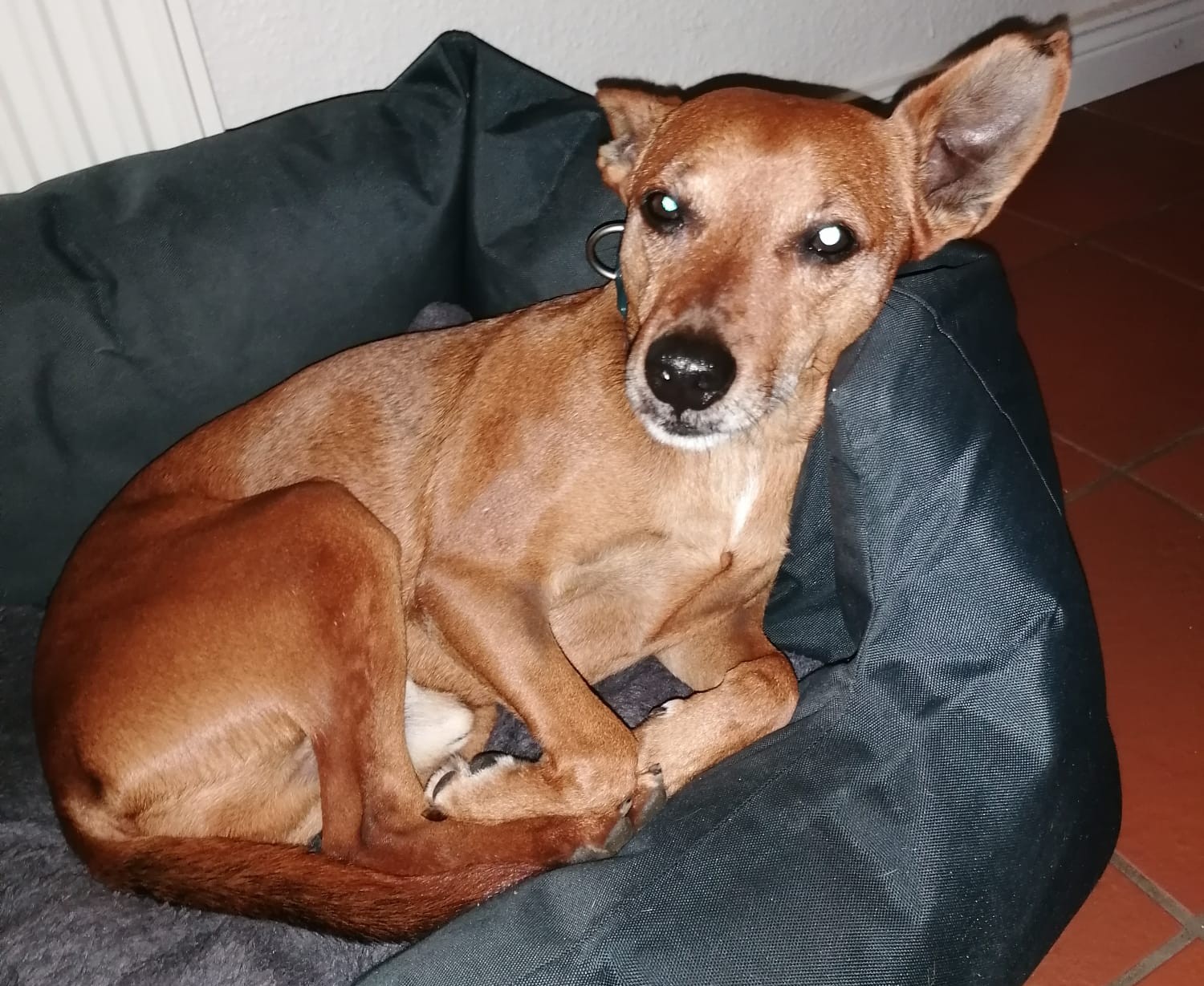 Mazacote oder kurz Maze, wie er auf seiner Pflegestelle genannt wird, ist einfach nur ein toller kleiner Hund. Er ist seit Anfang Dezember auf seiner Pflegestelle in Deutschland und lebt dort in einem etwas größeren Rudel. In dieses hat er sich ohne Probleme integrieren lassen. Maze ist ein sehr ruhiger und angenehmer Zeitgenosse, der es liebt mit der Pflegemama und den Hunden zu kuscheln. Er geht sehr gut an der Leine, auch bei einem Stadtspaziergang zeigte er keine Angst vor der fremden Umgebung und dem Verkehr, einzig Kinderwagen fand er noch gruselig. Beim Autofahren schaut er interessiert aus dem Fenster und wartet geduldig, wenn man eine kurze Zeit den PKW verlässt. Menschen werden alle freudig begrüßt, ohne dass er aufdringlich ist. Maze ist nicht sehr tobefreudig, schnüffelt aber gerne im Garten und erkundet die Umgebung. Typisch Spanier ist Regen nicht so sein Ding und nasser Rasen auch nicht. Maze bleibt im Rudel alleine, ist aber dabei aber noch sehr ideenreich, was das Umdekorieren der Wohnung angeht, er macht dabei aber nichts kaputt. Eigentlich sucht er dabei nur nach Leckereien, denn fressen tut er für sein Leben gerne. Wer will es ihm verübeln, denn ursprünglich stammt er aus Spanien und wurde sicher nicht immer bestens versorgt. Er nimmt außerhalb der Mahlzeiten gerne Obst und Gemüse als Leckerli.