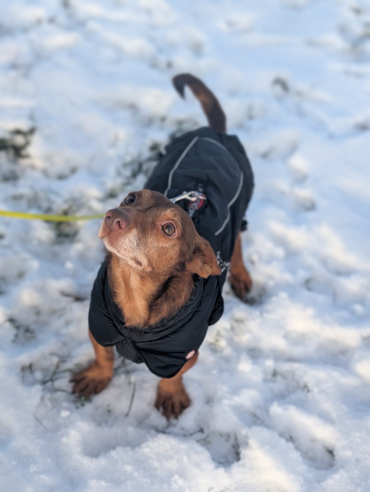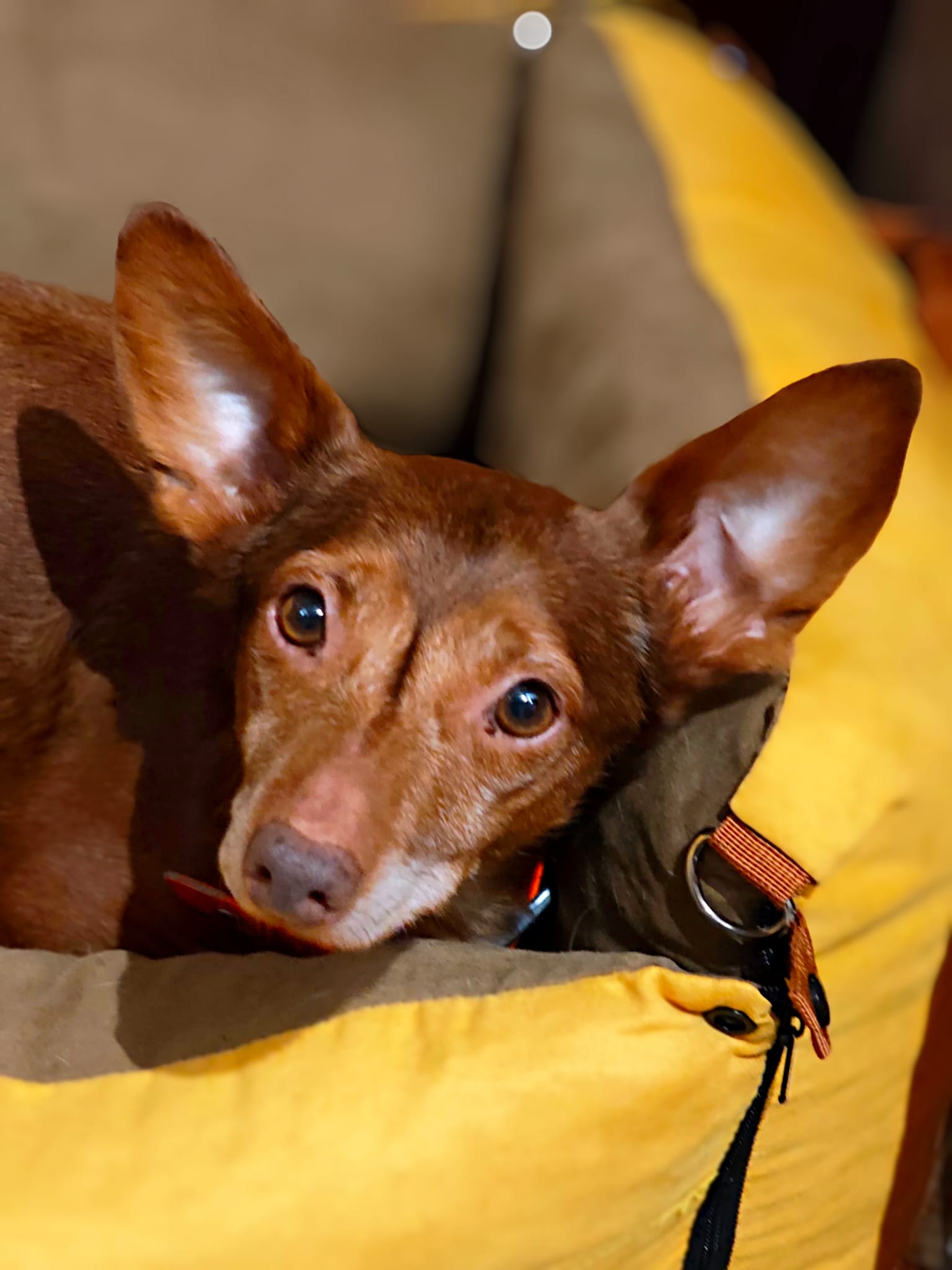 „Pulgarcito ist ein fröhlicher, aufgeschlossener und unaufgeregter Hund. Er freut sich über alle Menschen, egal ob groß oder klein. Er ist dabei nie aufdringlich, sondern immer nett. Im Alltag fällt der kleine Mann gar nicht auf. Er ist super pflegeleicht und macht alles super mit. Autofahren macht ihm keine Probleme und auch andere Hunde sind gar kein Problem. Pulgarcito sucht seinen Menschen – das meinen wir auch genauso, denn er bindet sich stark an eine Person im Haushalt. Das zeigt sich aber auch beim Alleinebleiben, denn er jault und bellt, sobald er mit den anderen Hunden alleine bleiben soll. Hier ist noch viel Training nötig oder aber, er muss selten oder nie alleine bleiben. Pulgarcito hat einen Herzfehler. Dies beeinträchtigt ihn gar nicht. Er bekommt Medikamente und damit kann er gut leben. Diese wird er immer brauchen. Er verträgt die Medikamente gut. Er muss alle sechs Monate zur Untersuchung und einmal im Jahr zum Herzultraschall, um die Krankheit immer im Blick zu haben. Gegebenenfalls muss die Medikation angepasst werden.“