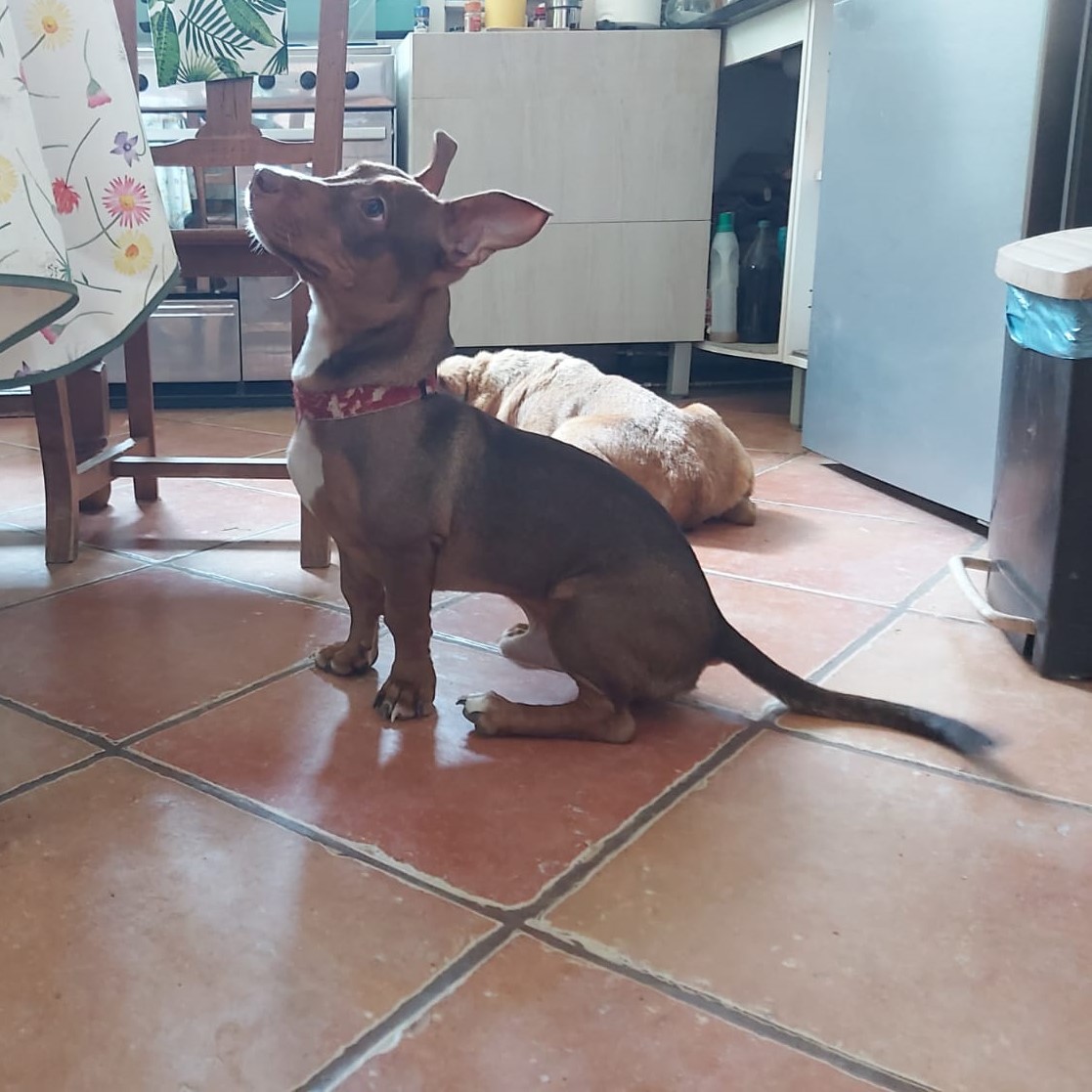 Über seine genaue Rasse können wir nur rätseln – vielleicht steckt etwas Podenco in ihm, vielleicht Pinscher, oder auch etwas ganz Anderes. Was wir aber sicher wissen: Bimbo ist einfach nur zauberhaft! Mit seiner neugierigen, verspielten Art bringt er jede Menge Freude ins Haus – und manchmal natürlich auch den typischen Welpen-Unsinn. Wir gehen davon aus, dass Bimbo einmal mittelgroß werden wird. Wer sich für ihn entscheidet, bekommt einen treuen Begleiter, der mit Liebe, Geduld und Erziehung zu einem wunderbaren Familienhund heranwachsen wird. Wenn Sie Bimbo ein Zuhause schenken möchten, melden Sie sich – er wartet schon sehnsüchtig auf „seine“ Menschen! Für den Start wäre ihm auch mit einer Pflegestelle geholfen