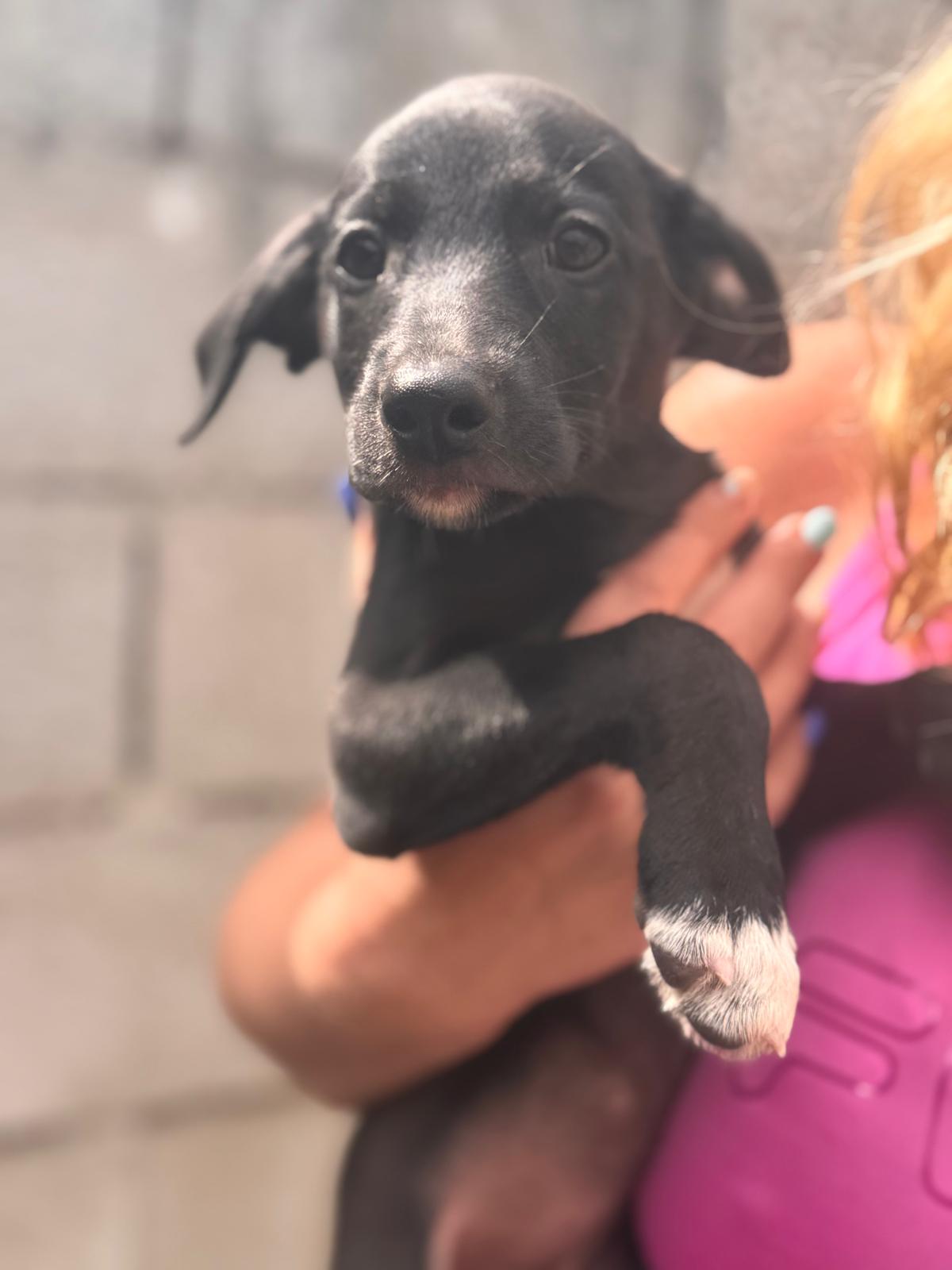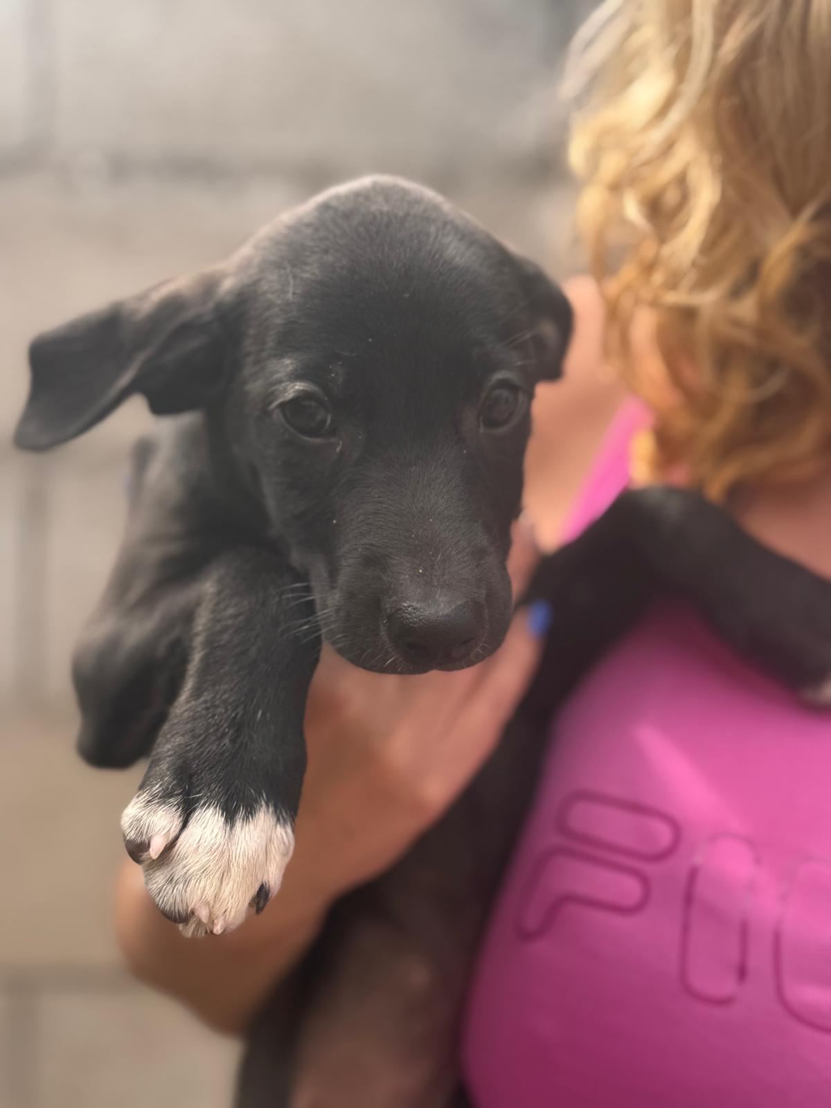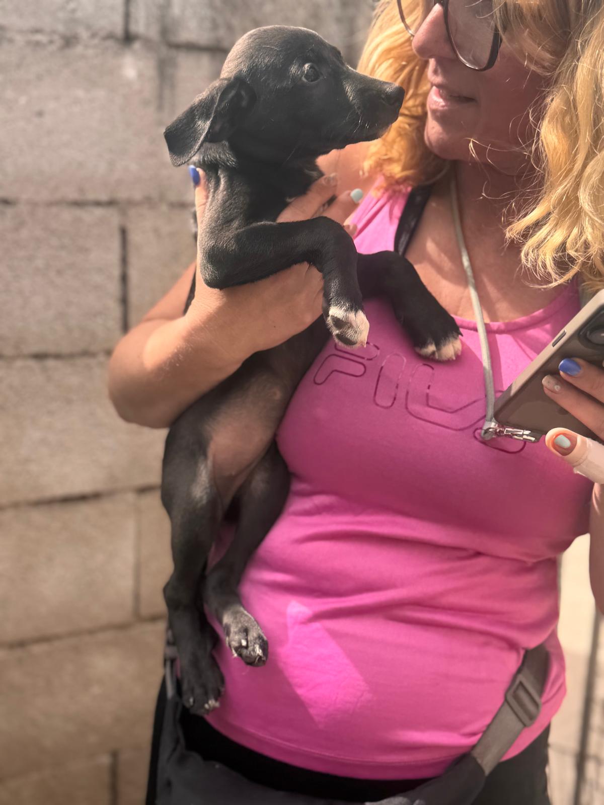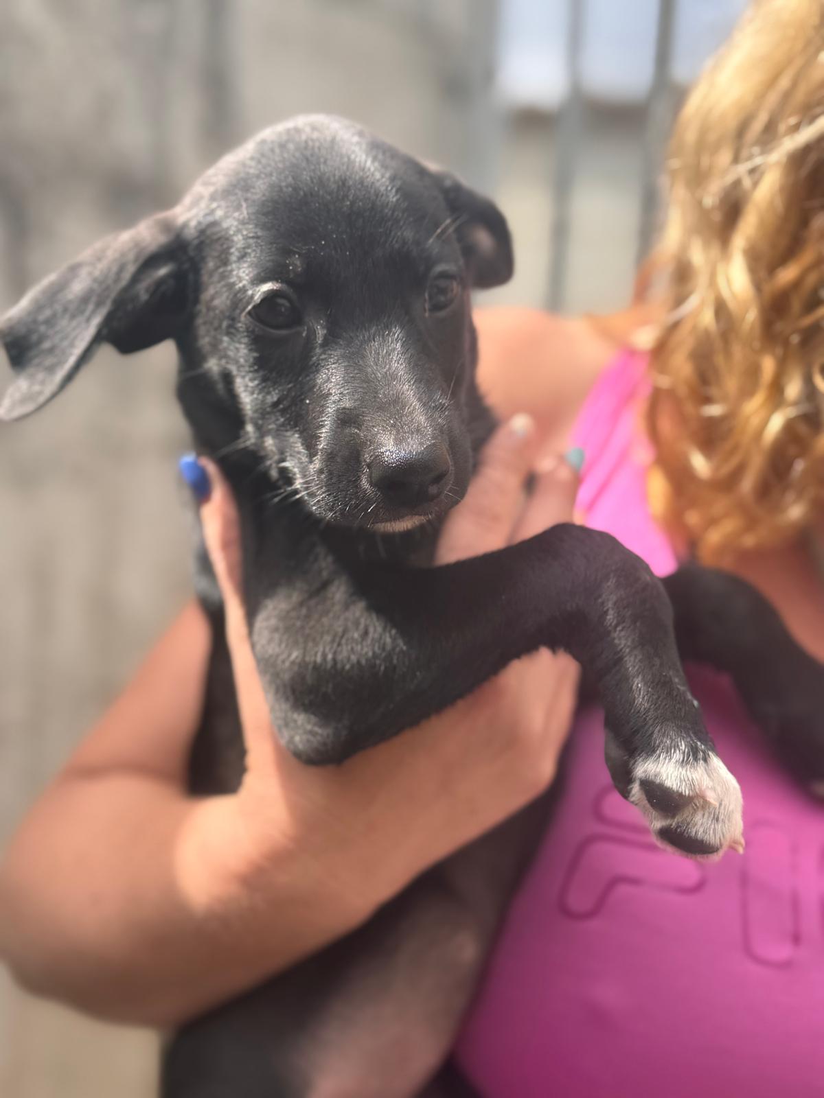 Unsere Indigo gehört zu den Regenbogenwelpen. Gemeinsam mit ihren Geschwistern Rojo, Violet , Verde, Amarillo, Azul und Naranja wächst sie im spanischen Tierheim auf. Ihre Mama ist eine schwarze Podencomischlingshündin, beim Papa vermuten wir einen Pointer – genau weiß man es nicht.