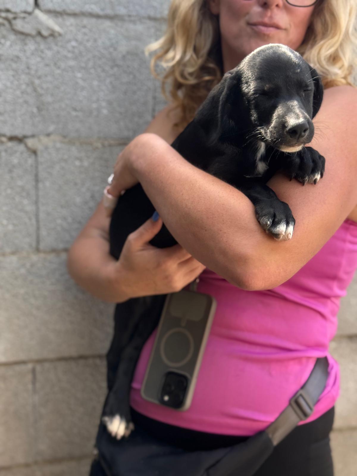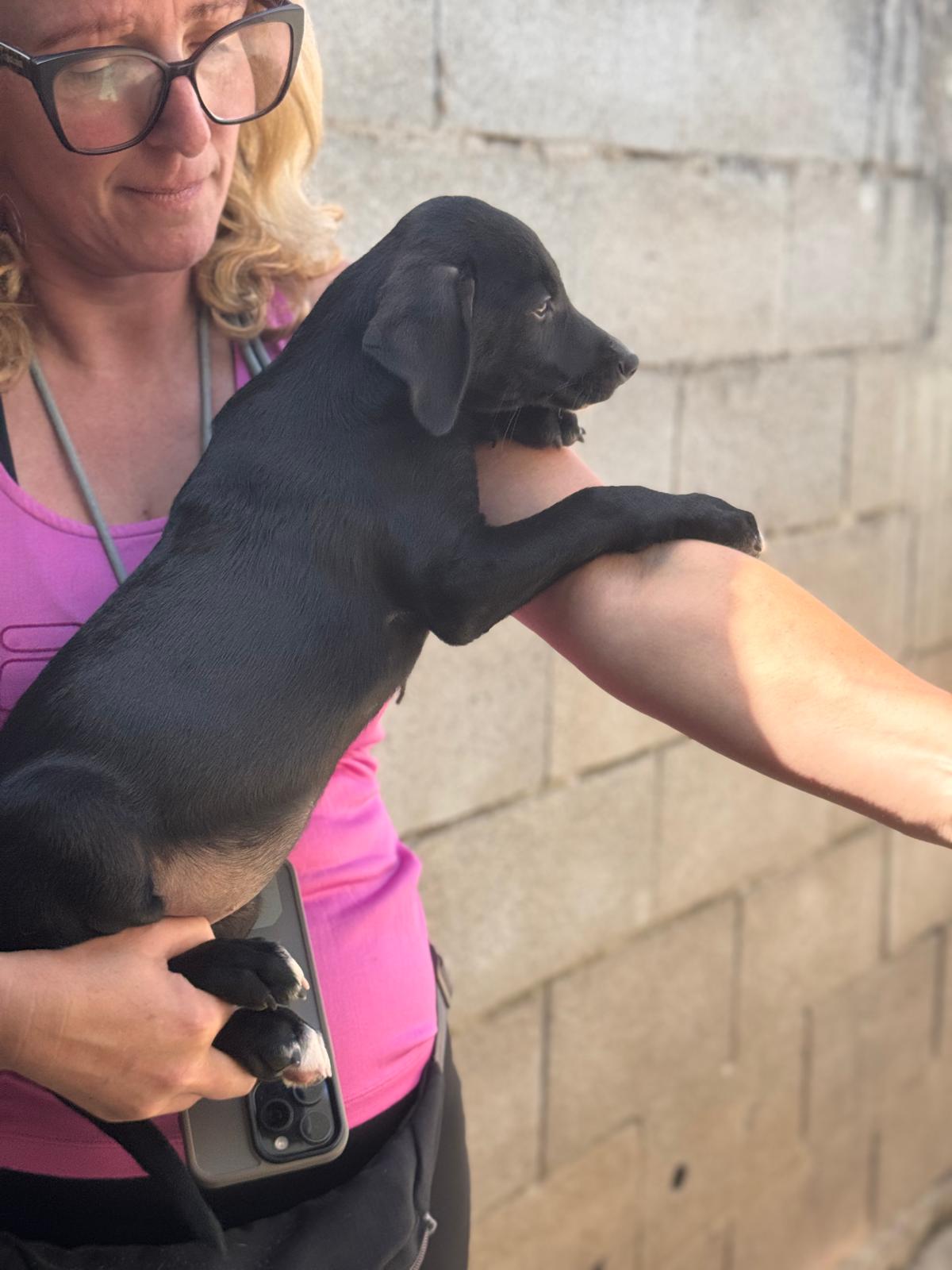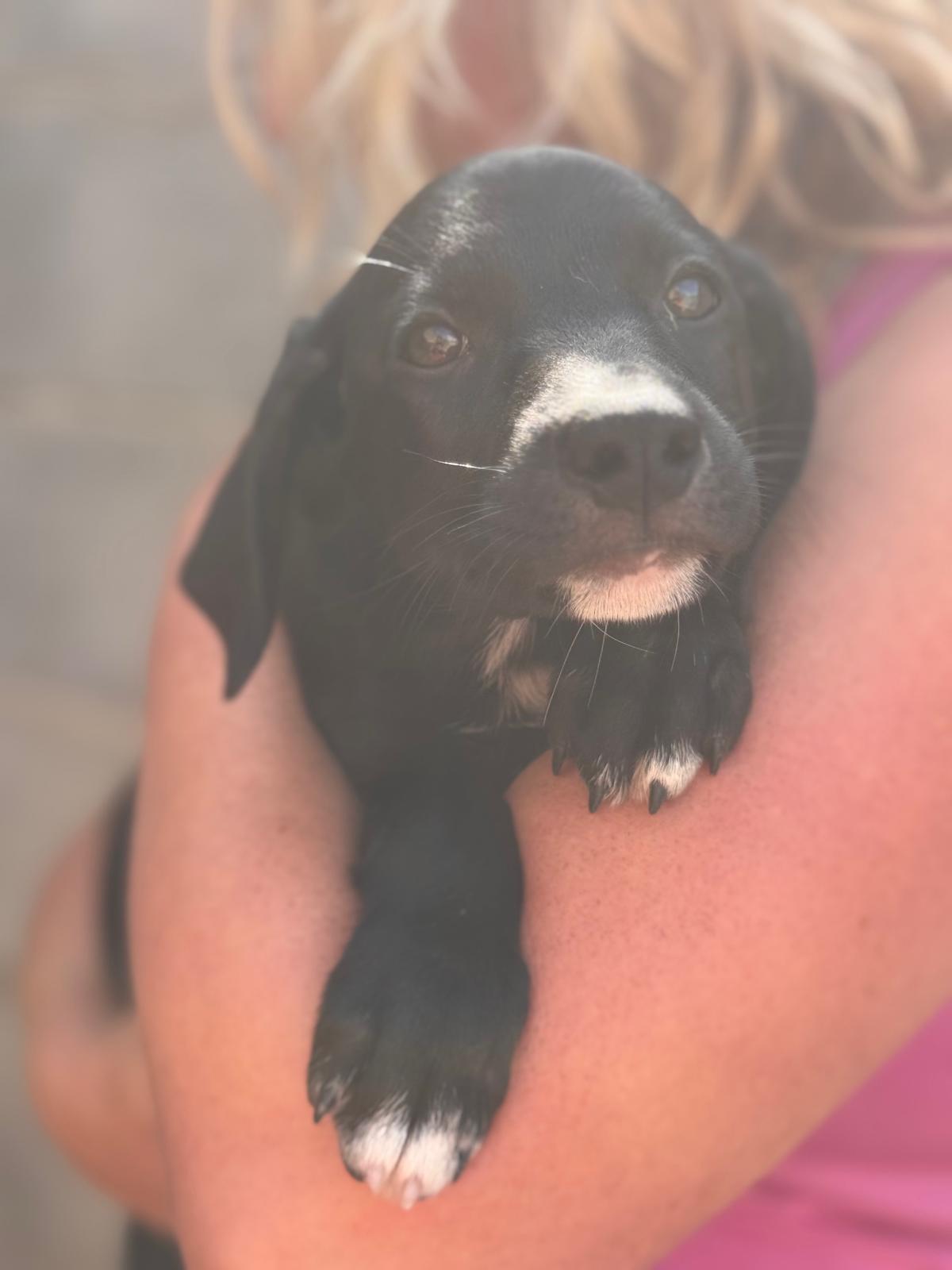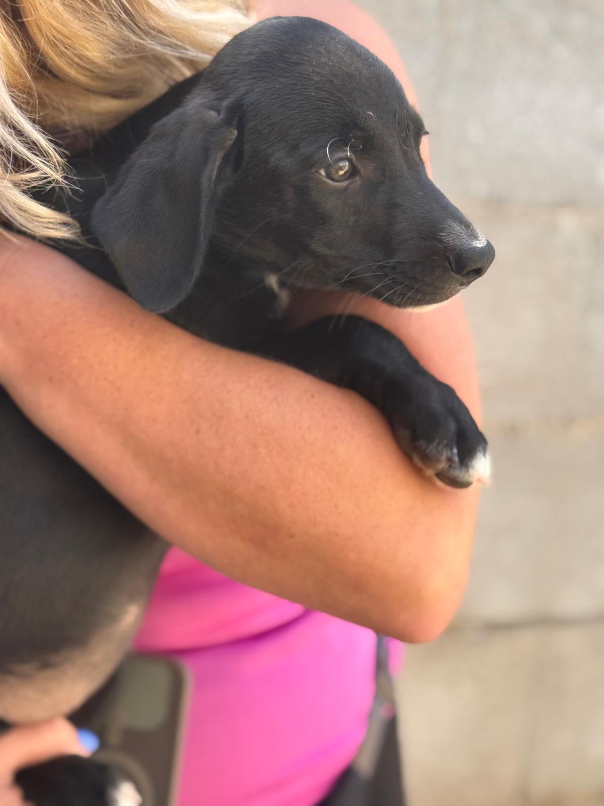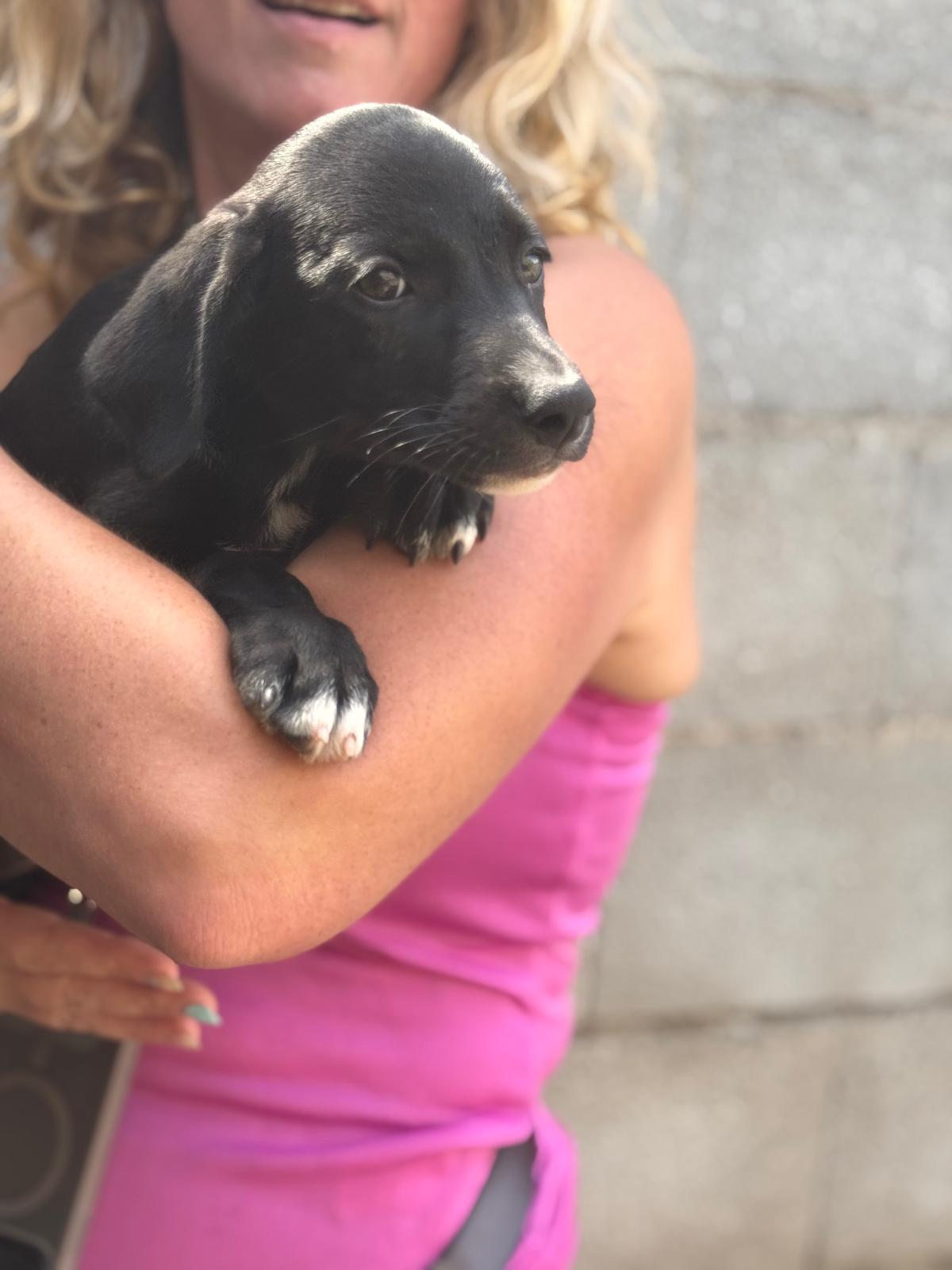 Unsere Violet gehört zu den Regenbogenwelpen. Gemeinsam mit ihren Geschwistern Rojo, Indigo, Azul, Amarillo, Verde und Naranja wächst sie im spanischen Tierheim auf. Ihre Mama ist eine schwarze Podencomischlingshündin, beim Papa vermuten wir einen Pointer – genau weiß man es nicht. Violet ist welpentypisch verspielt, neugierig und voller Lebensfreude. Sie möchte die Welt entdecken, spielen, toben und dabei alles lernen, was ein Familienhund können muss. Mit der richtigen Mischung aus Geduld, Liebe und Auslastung wird sie sich zu einer wunderbaren Begleiterin entwickeln.