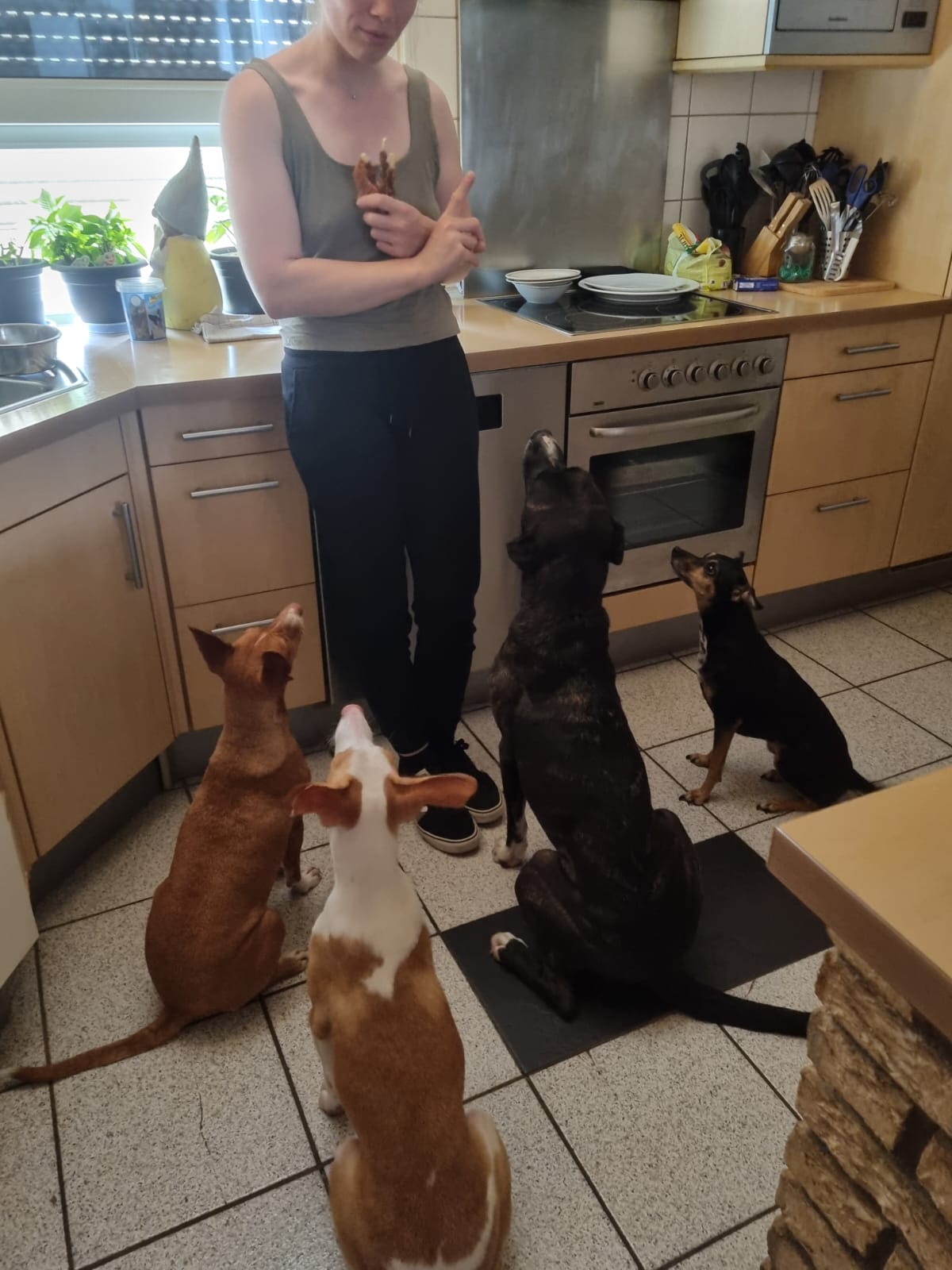 Schuhe, Dekoration und zerkaubare Kleinteile sollte man vor Nely erst noch in Sicherheit bringen, denn sie beschäftigt sich gern selbst mit allem, was sie finden kann. Auch Kindersicherungen an Schränken sind empfehlenswert, denn die kann sie selbstständig öffnen. Zwingertraining und Aufmerksamkeitstraining wurden bereits begonnen, alleinbleiben kann sie aber noch nicht.