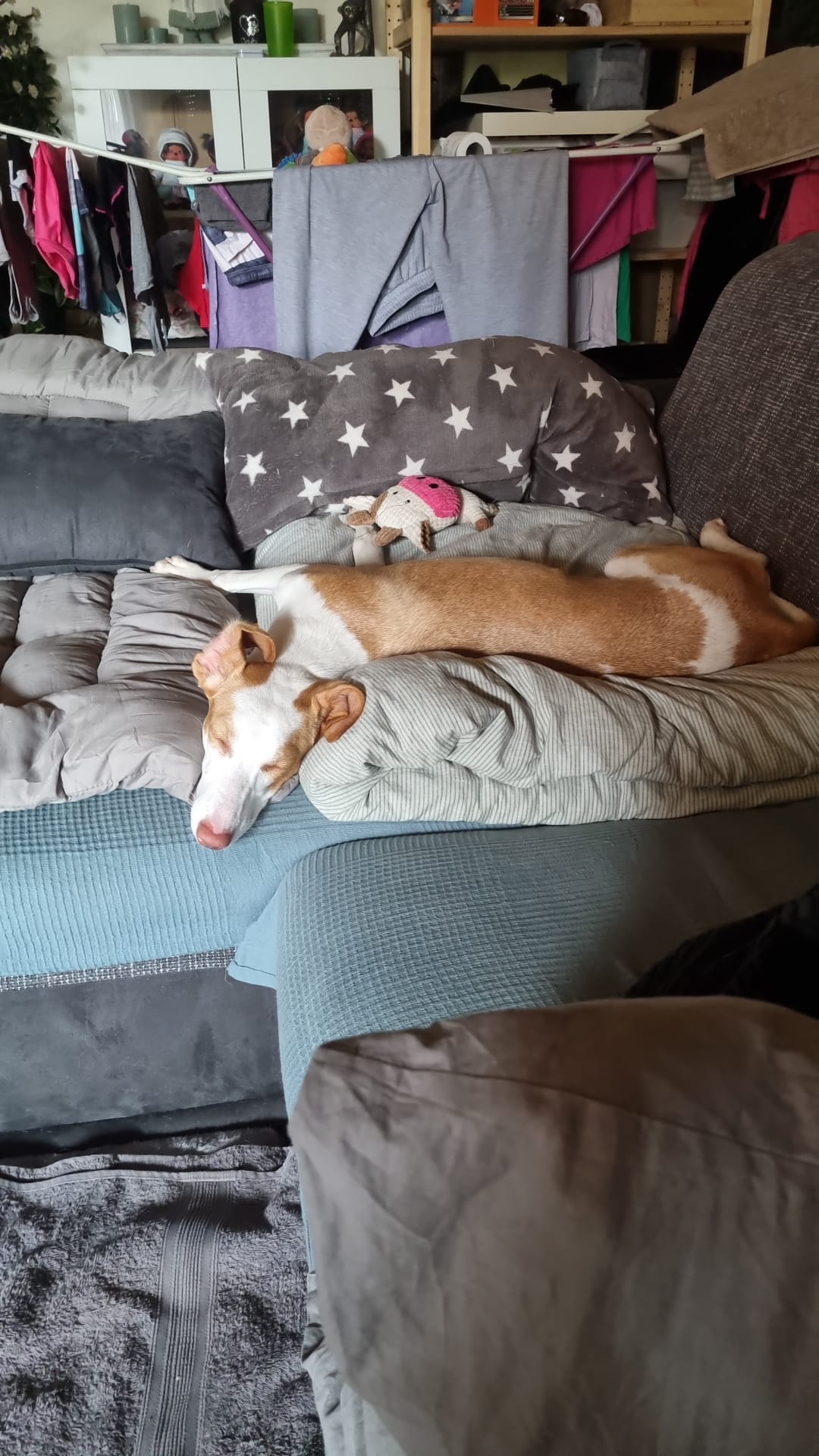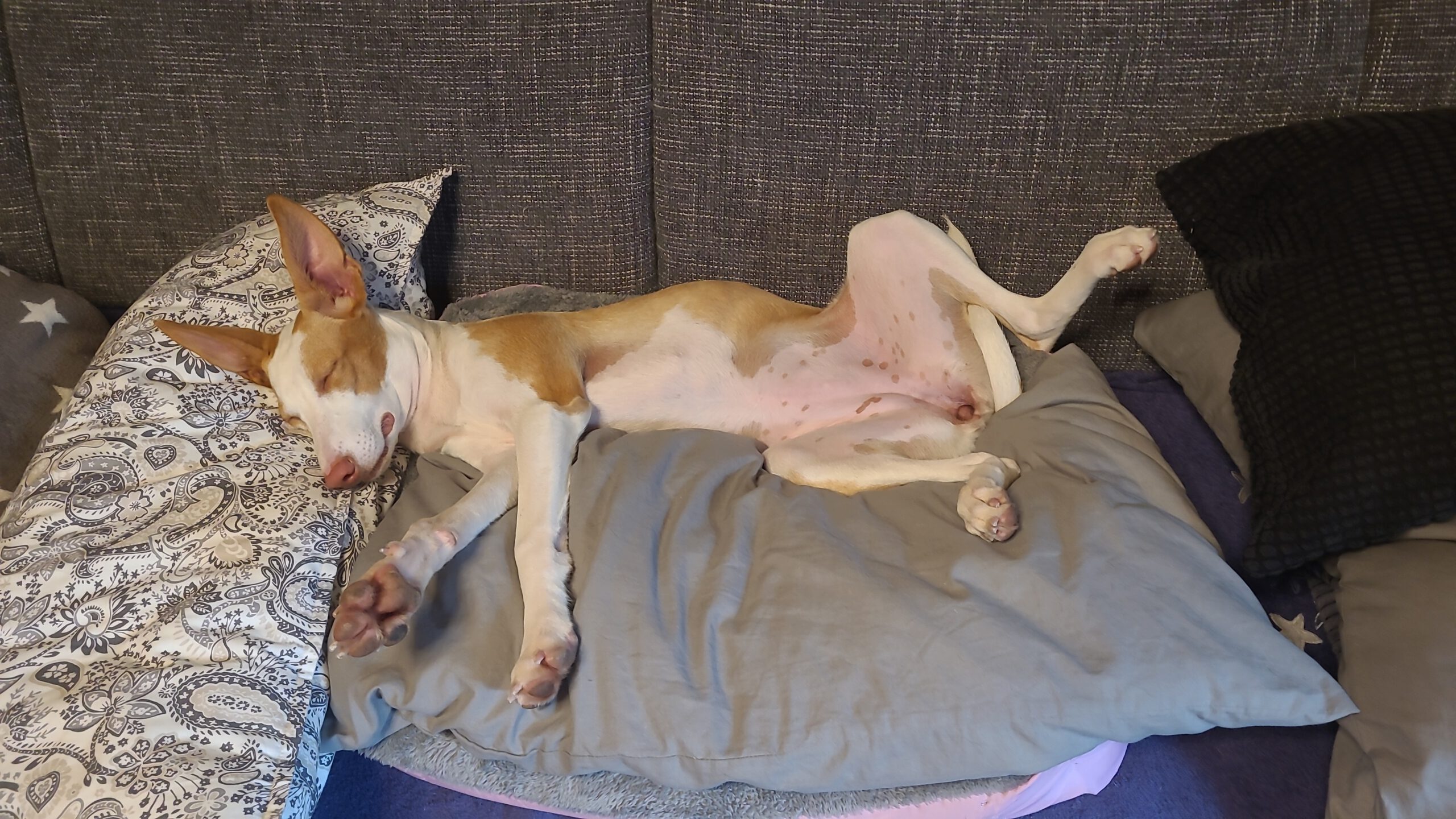 Podenco Nely ist ein aufgewecktes, schlaues Hundemädchen, die sehr neugierig auf die Welt ist. Sie läuft gut an der Leine und kann schon einige Grundkommandos. Ihre Energie ist nie aufgebraucht, sie lernt sehr schnell und guckt sich von anderen Haushaltsmitgliedern einiges ab, egal ob Mensch oder Hund. Weitere Hunde im Haushalt sollten begeisterte und robuste Spielpartner sein und ihre Grenzen klar kommunizieren, denn Nely fordert Artgenossen gern heraus und findet beim Spielen kein Ende.