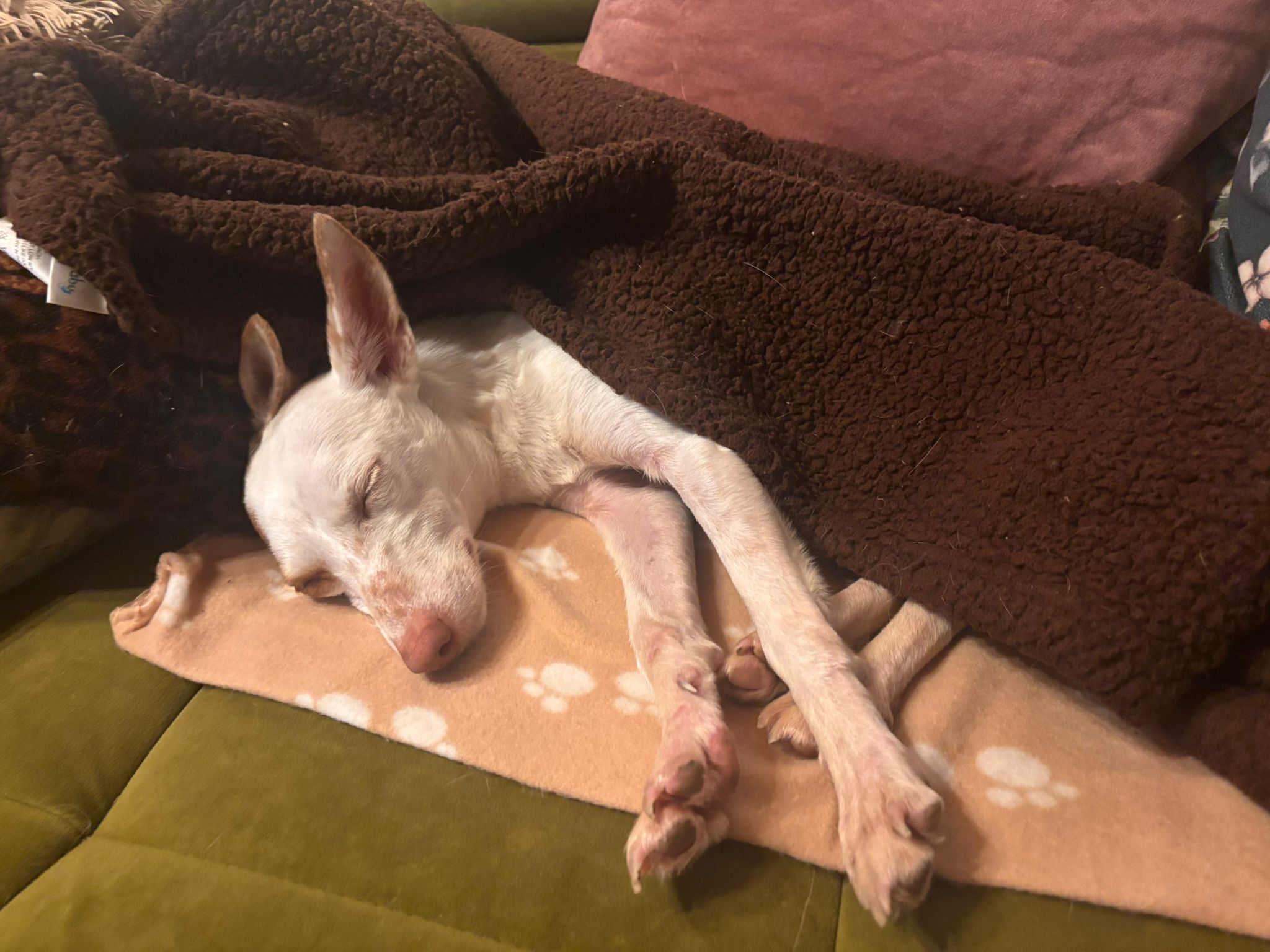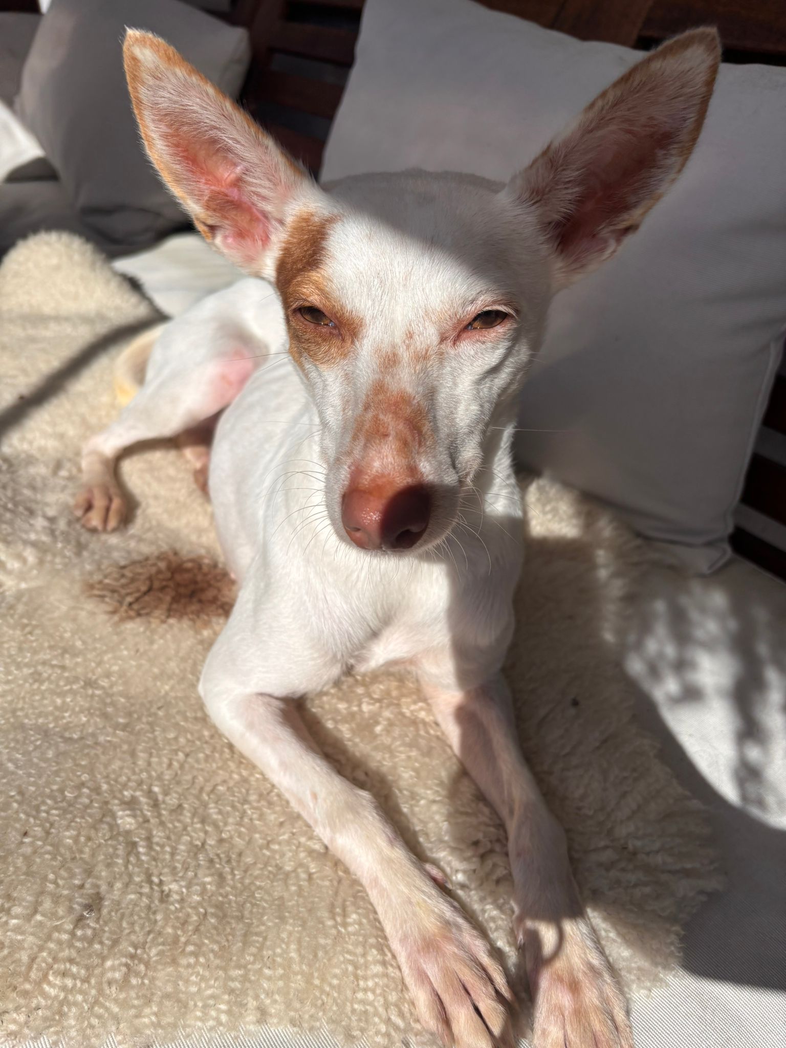 Paloma ist eine wunderschöne Podenca aus Spanien, die derzeit auf einer liebevollen Pflegestelle in Deutschland lebt und von dort aus ihr endgültiges Zuhause sucht. Die sensible Hündin braucht im Moment noch etwas Zeit, um sich vollständig sicher zu fühlen – im Haus ist das Sofa aktuell ihr liebster Rückzugsort und sicherer Hafen. Von dort aus beobachtet sie aufmerksam ihre Umgebung und taut jeden Tag ein bisschen mehr auf.