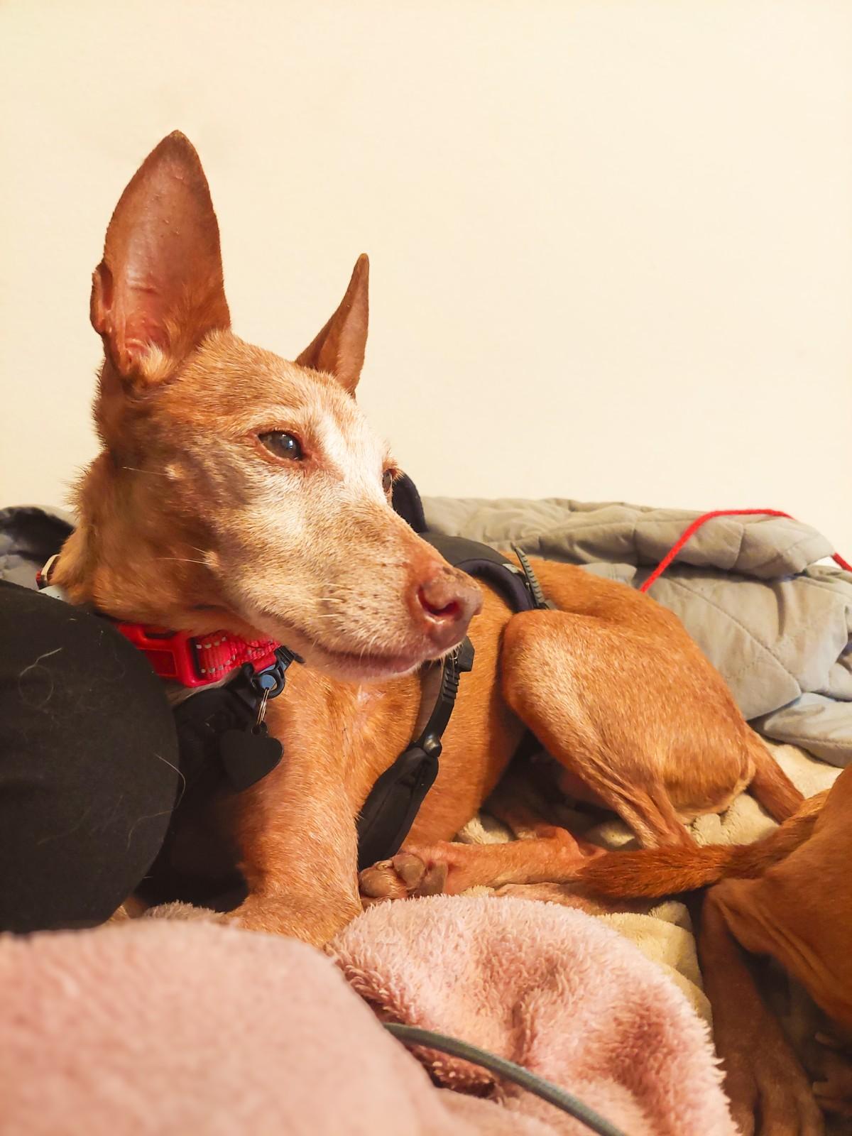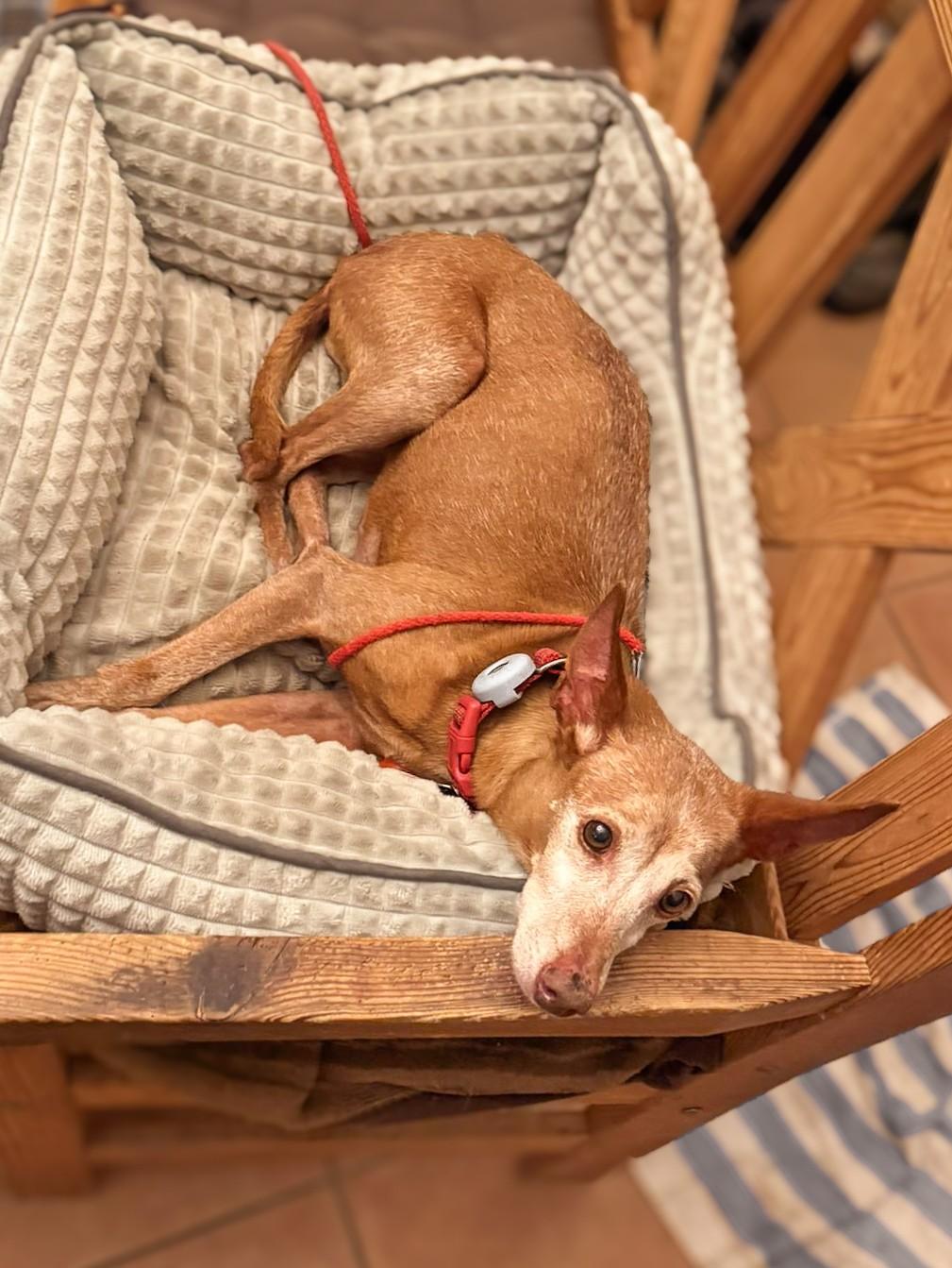 Die kleine Titi steckt voller Lebensfreude. Müsste sie nicht schlafen, würde sie vermutlich 24 Stunden am Tag fröhlich mit der Rute wedeln. Im Herzen ist Titi vermutlich ein kleines Mäuschen. Trotz etwas anfänglicher Unsicherheit im Umgang mit Menschen ist Titi sehr anhänglich, kann aber auch problemlos allein bleiben. Sie verhält sich in der Wohnung ruhig und unauffällig und würde sich daher bestimmt auch als Bürohund gut eignen. Mit anderen Hunden beiderlei Geschlechts kommt Titi podencotypisch bestens klar, sie zeigt sich nie eifersüchtig über Aufmerksamkeit und geht Konflikten ganz klar aus dem Weg. Titi ist stubenrein und läuft beim Spaziergang vorbildlich an der lockeren Leine. Auch Geschirr und Mäntelchen anziehen stellt absolut kein Problem dar. Da Titi selbst schon zu den rüstigen Senioren zählt, wäre sie natürlich gut bei älteren Personen aufgehoben, aber auch ein Zusammenleben mit ruhigen, verständnisvollen Kindern ist durchaus vorstellbar. Titi ist schließlich für jedermann ein Traumhund! Wenn Sie das Gefühl haben, dass genau Titi in Ihrer Mitte fehlt, freut sich die zarte Podenco-Lady über Ihren Besuch.