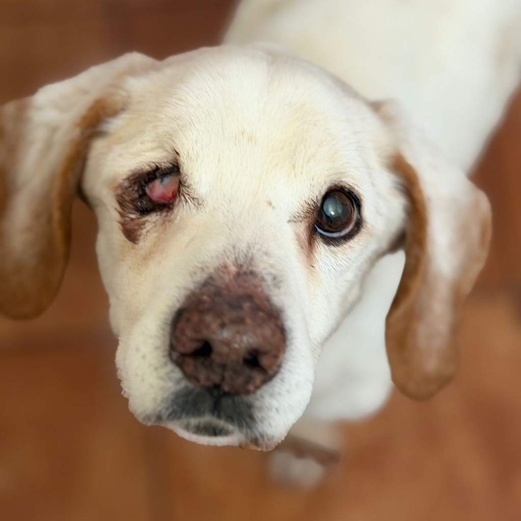 Churro kam mit einer tiefen Augenverletzung und bis auf die Knochen abgemagert in unserem Partnertierheim an. Wie lange mag er wohl entweder alleine draußen herumgelaufen sein, ohne sich selbst noch richtig versorgen zu können? Oder wie lange hat man ihn beim Vorbesitzer so vernachlässigt, dass er in diesen traurigen Zustand kam? Das wissen wir nicht und das zählt jetzt auch nicht.