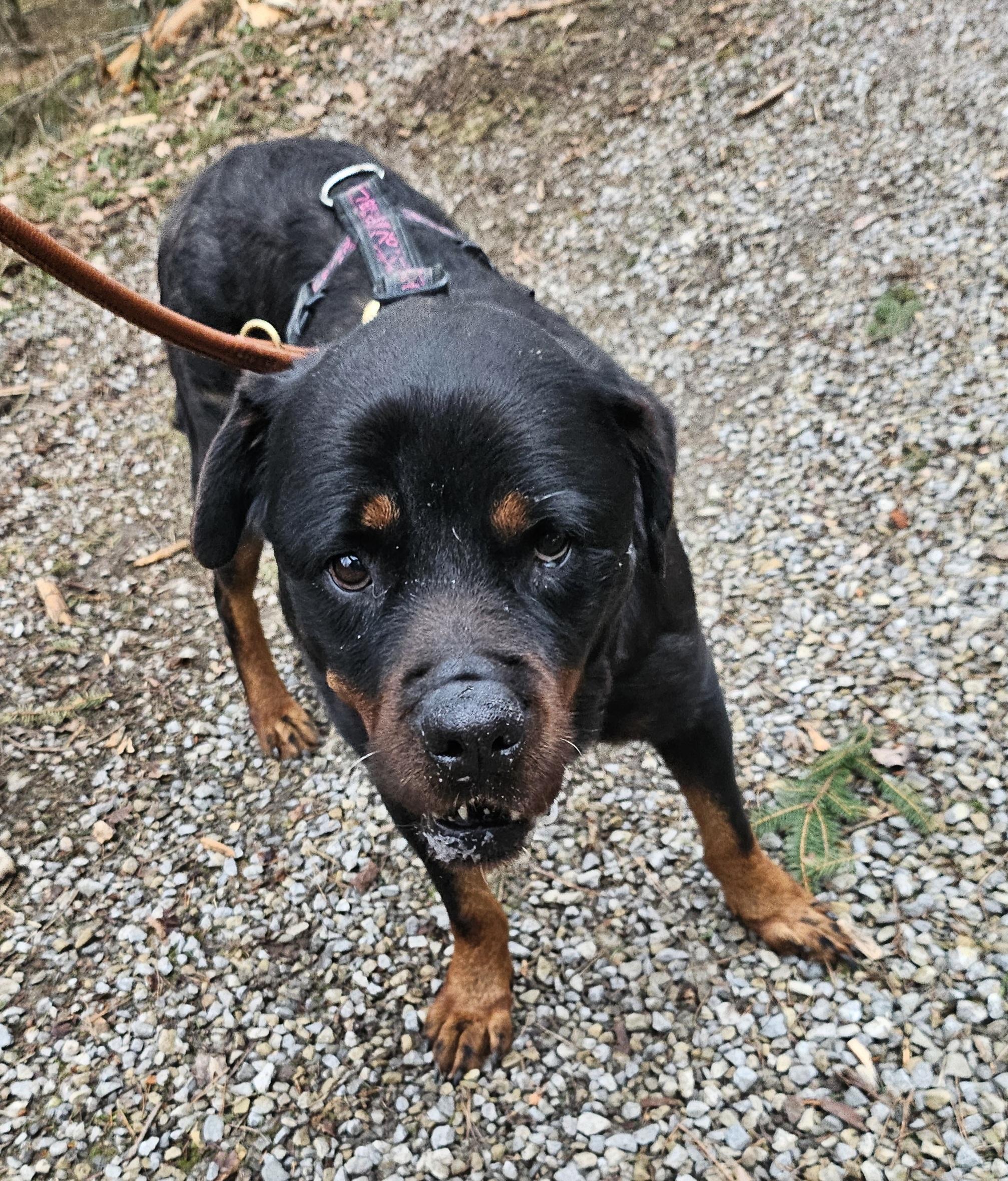 Iris ist eine 12 Jahre alte Rottweilerhündin, ursprünglich aus Spanien, und lebt aktuell auf einer liebevollen Pflegestelle in Deutschland. Sie ist ein echtes Goldstück – so eine Hündin, die man einfach nur liebhaben kann. Iris ist sehr freundlich, offen und menschenbezogen. Sie genießt Streicheleinheiten in vollen Zügen und zeigt dabei, wie sehr sie Nähe und Zuwendung schätzt. Trotz ihres Alters ist sie noch gut unterwegs und für viele schöne Dinge zu begeistern: Spazierengehen steht ganz oben auf ihrer Hitliste, genauso wie Autofahren – da ist sie gerne mit dabei.