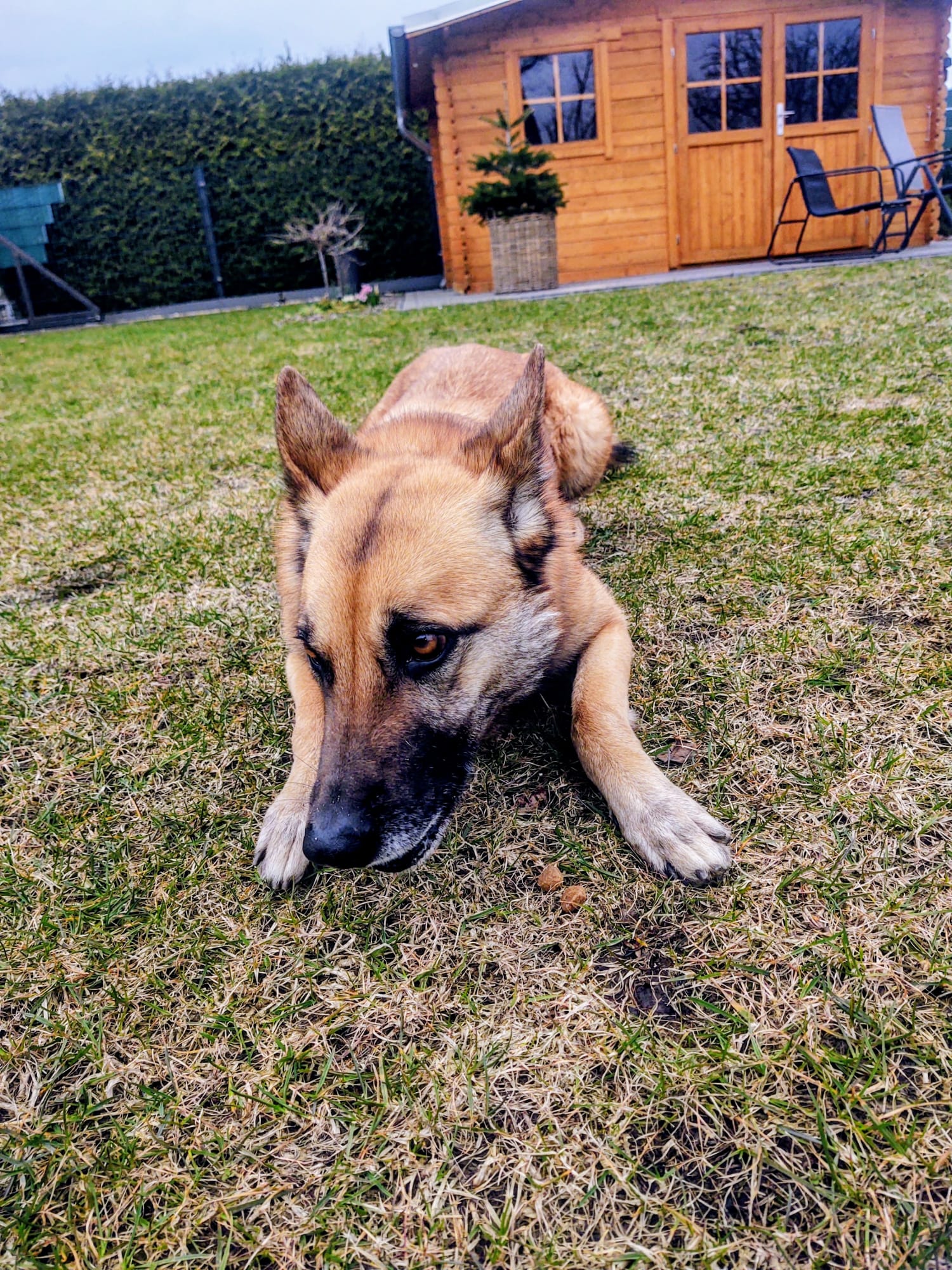 Sie ist eine wunderschöne Schäferhund-Mischlingshündin mit einem klugen, wachen Blick und einer sensiblen Ausstrahlung. Draußen zeigt sie viele Eigenschaften, die typisch für intelligente und arbeitsfreudige Hunde sind: Sie läuft sehr gut an der Leine, kennt bereits Signale wie „Sitz“, „Platz“ und „Bleib“ und arbeitet gerne mit ihren Menschen zusammen.